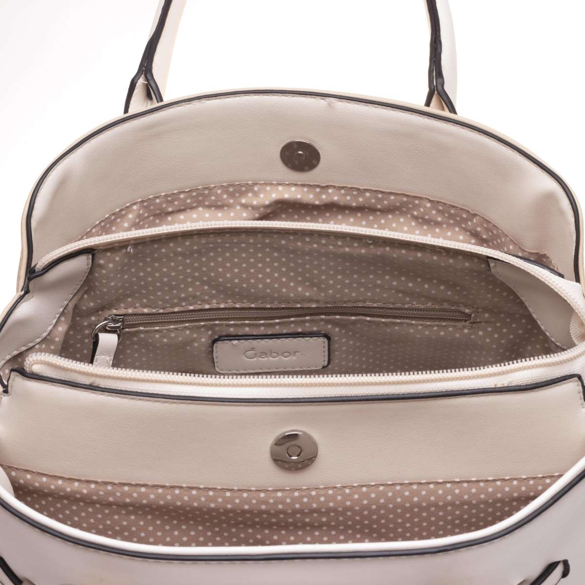 Nápaditá elegantní kabelka Gabor se zdobnou aplikací propletených pásků v horní části vyrobena ve více barevných variantách. Taška se uzavírá magnetickým uzávěrem, kdy po jeho odepnutí uvnitř najdeme malé kapsičky na drobnosti. Lze nosit jak v ruce, tak i přes rameno, díky odepínatelnému a délkově nastavitelnému popruhu. Vhodný model na pracovní schůzky či na kávu s přáteli.