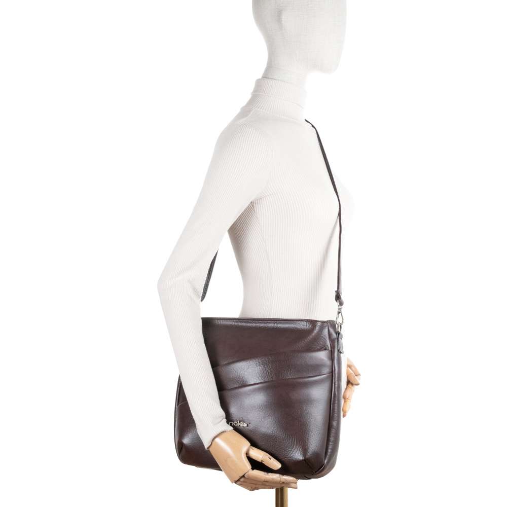 Objevte kabelku RIEKER v hnědé barvě, která spojuje moderní design a promyšlenou funkčnost do jedinečného kousku, který podtrhne váš styl a osobnost. Minimalistický vzhled doplňuje stříbrné logo značky, které jemně zvýrazňuje exkluzivní charakter kabelky. Kabelka je navržena s důrazem na komfort a praktičnost – přední část obsahuje dvě menší kapsy, jednu se zipem a druhou s magnetickým drukem, které umožňují rychlý přístup k nezbytným drobnostem. Hlavní prostor uzavíraný zipem je dostatečně prostorný pro všechny vaše denní potřeby a obsahuje dvě vnitřní kapsičky, které udrží vaše věci přehledně uložené. Zadní kapsa se zipem poskytuje diskrétní prostor na cennosti nebo věci, které chcete mít stále po ruce. Odepínatelný a nastavitelný popruh umožňuje flexibilní nošení – můžete kabelku nosit elegantně přes rameno nebo pohodlně crossbody stylem, podle toho, co zrovna potřebujete. Kombinace nadčasového designu, kvality a praktičnosti vytváří kabelku, která se rychle stane nepostradatelnou součástí vašeho šatníku a dokonalým společníkem pro každodenní život. Rozměry: cca V 29 cm x Š 32 cm x H 5,5 cm Vnitřní uspořádání: kabelka není dělená Kabelka má délkově nastavitelný popruh, který lze odepnout. Maximální délka nastavitelného popruhu je cca 125 cm.