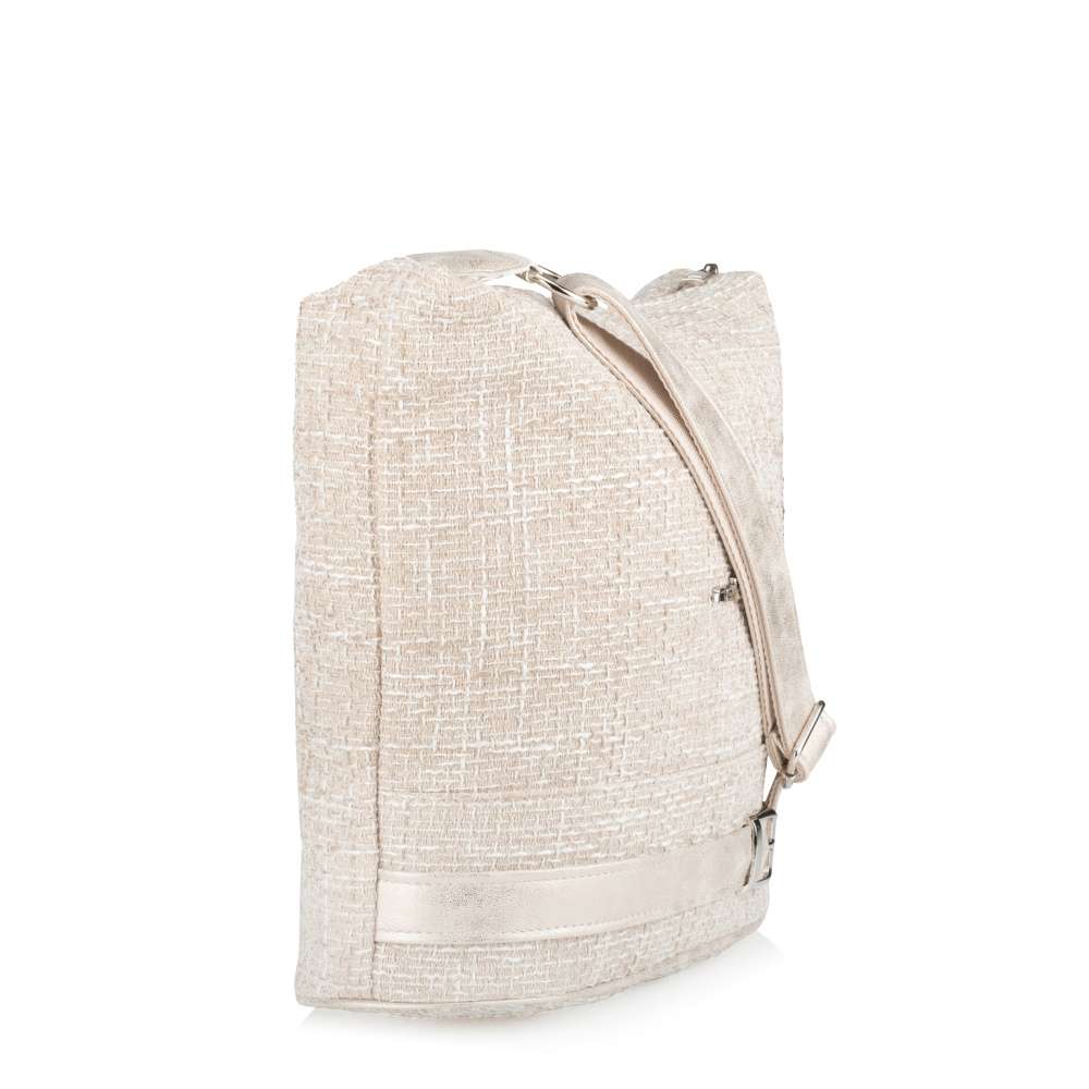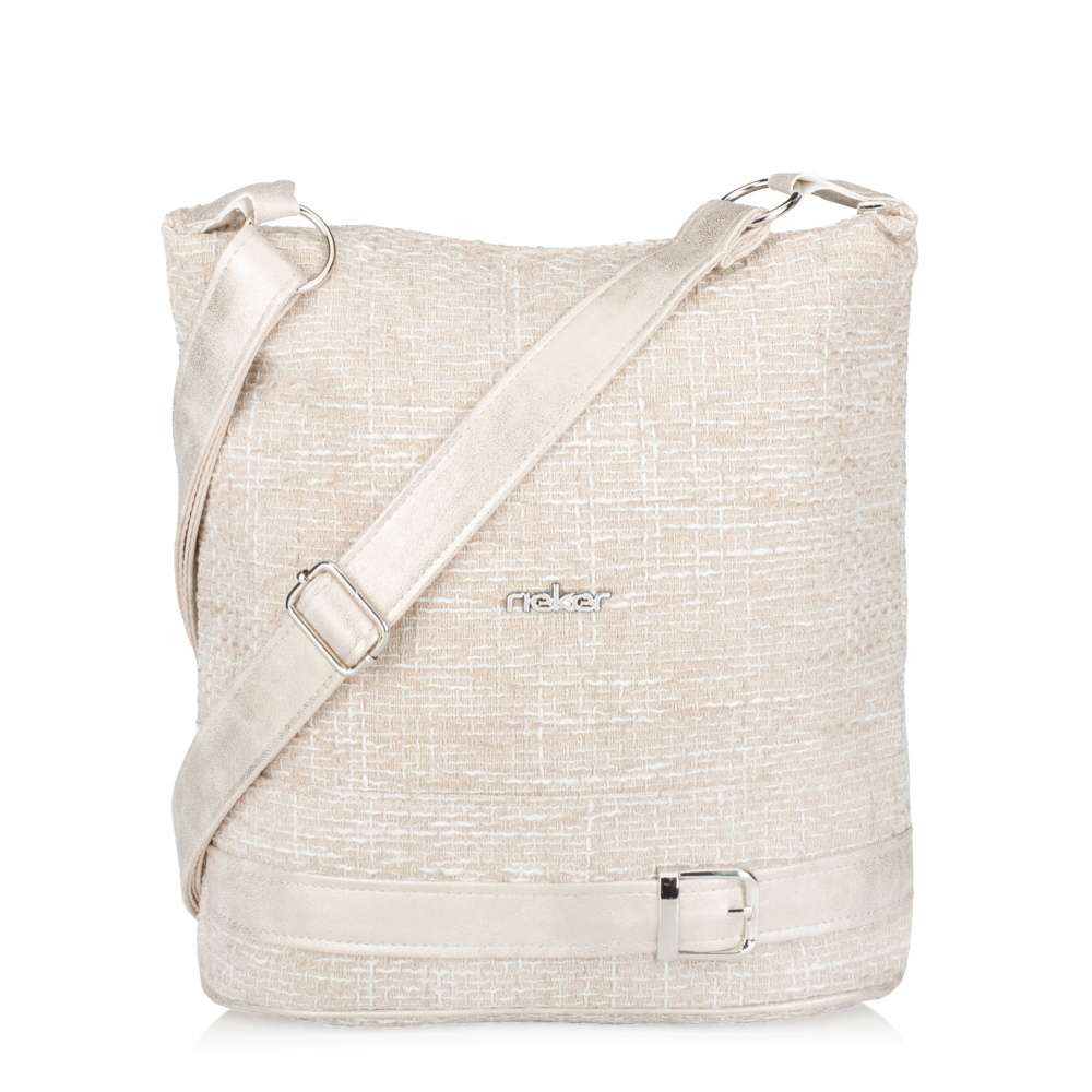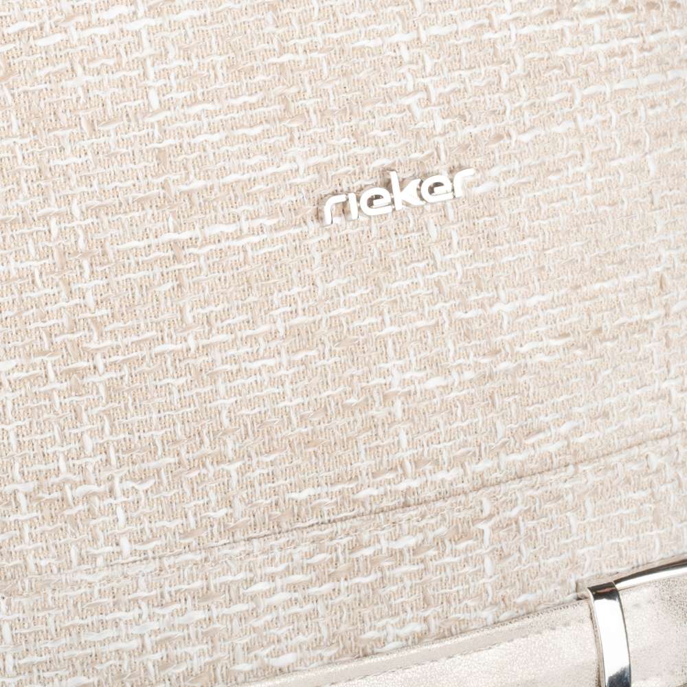 Kabelka značky RIEKER upoutá již na první pohled harmonickou kombinací textilního materiálu s jemnou strukturou a elegantních doplňků z hladkého materiálu s efektními zlatými odlesky. Stříbrné logo značky na přední straně působí vkusně a podtrhuje jedinečný charakter modelu, zatímco designová spona na pásku ve spodní části dodává kabelce originální akcent. Promyšlené úložné prostory nabízí praktické využití pro každý den. Hlavní úložný prostor uzavíraný zipem poskytuje dostatek místa pro všechny potřebné věci a je doplněn o dvě menší vnitřní kapsičky pro lepší organizaci. Na zadní straně se nachází praktická kapsa na zip, ideální na drobnosti, které chcete mít vždy rychle po ruce. O pohodlné nošení se postará délkově nastavitelný popruh, díky kterému si můžete kabelku přizpůsobit přesně podle svých potřeb a stylu nošení. Tato kabelka RIEKER je stylovým a zároveň praktickým doplňkem, který skvěle doplní městský outfit, pracovní look i volnočasové kombinace.