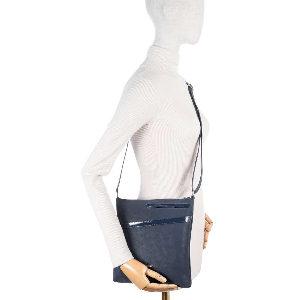 Tato kabelka RIEKER v tmavě modrém odstínu je stvořená pro ženy, které chtějí vyniknout a zároveň si užívat praktičnosti na každém kroku. Lesklé prvky elegantně zvýrazňují ženský půvab a stříbrné logo značky umístěné na přední straně přidává kabelce punc originality a prémiového vzhledu. Funkčnost je stejně přepracovaná jako design. Hlavní prostor kabelky, uzavíratelný zipem, poskytuje dostatek místa pro všechny každodenní nezbytnosti. Vnitřní menší přihrádky umožňují přehledné uspořádání drobností, zatímco zadní kapsa na zip a malá přední kapsička poskytuje diskrétní místo pro uložení drobností, které chcete mít vždy po ruce. Kabelka je navržena s důrazem na pohodlí a variabilitu nošení. Délkově nastavitelný popruh umožňuje nošení přes rameno nebo křížem přes tělo, takže si ji můžete přizpůsobit přesně podle aktuálního outfitu a situace. Rieker přináší doplněk, který vás nezklame – praktický, moderní a připravený držet krok s vaším tempem každý den. Objevte spojení funkčnosti a stylu, které budete milovat! Rozměry: cca V 25 cm x Š 23 cm x H 3 cm Vnitřní uspořádání: kabelka není dělená. Kabelka má délkově nastavitelný popruh, který nelze odepnout. Maximální délka nastavitelného popruhu je cca 135 cm.
