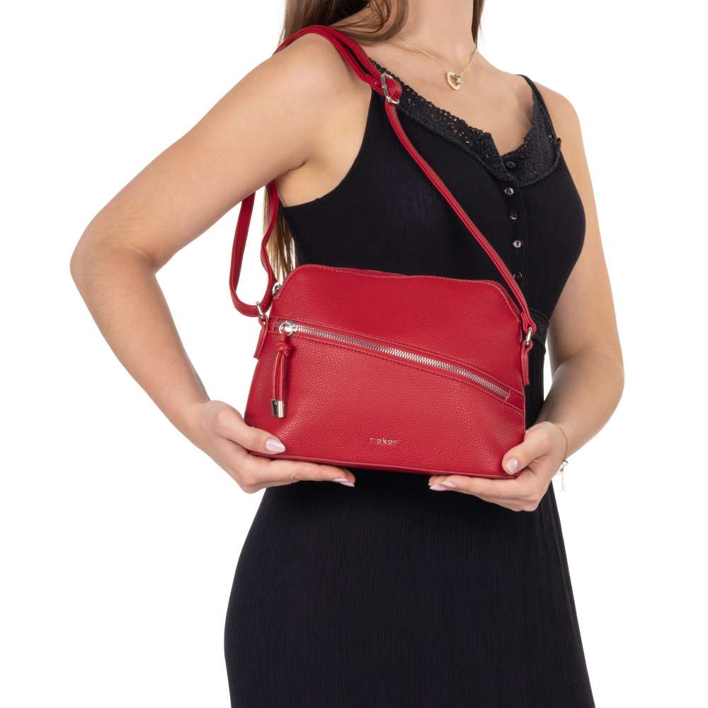 Objevte kabelku RIEKER, která dokonale vystihuje ženský půvab, eleganci a styl v jednom. Výrazná červená barva v kombinaci s decentním logem značky okamžitě upoutá pozornost a dodá vašemu outfitu osobitost. Přední část kabelky je ozdobena výrazným zipem po celé šířce s nápaditou aplikací, který ukrývá praktickou kapsičku, zatímco zadní část obsahuje menší kapsu pro rychlý přístup k drobnostem. Vrchní zip odhaluje hlavní prostor, promyšleně členěný kapsičkou na zip a dvěma otevřenými přihrádkami - vše tak budete mít dokonale uspořádané. Délkově nastavitelný popruh umožňuje variabilní nošení dle vaší nálady a stylu. Kabelka RIEKER není jen praktická – je to módní kousek, který si zamilujete a který vám přinese pocit sebevědomí při každém kroku. Rozměry: cca V 19 cm x Š 25 cm x H 8 cm Vnitřní uspořádání: kabelka není dělená Kabelka má délkově nastavitelný popruh, který nelze odepnout. Maximální délka nastavitelného popruhu je cca 135 cm.