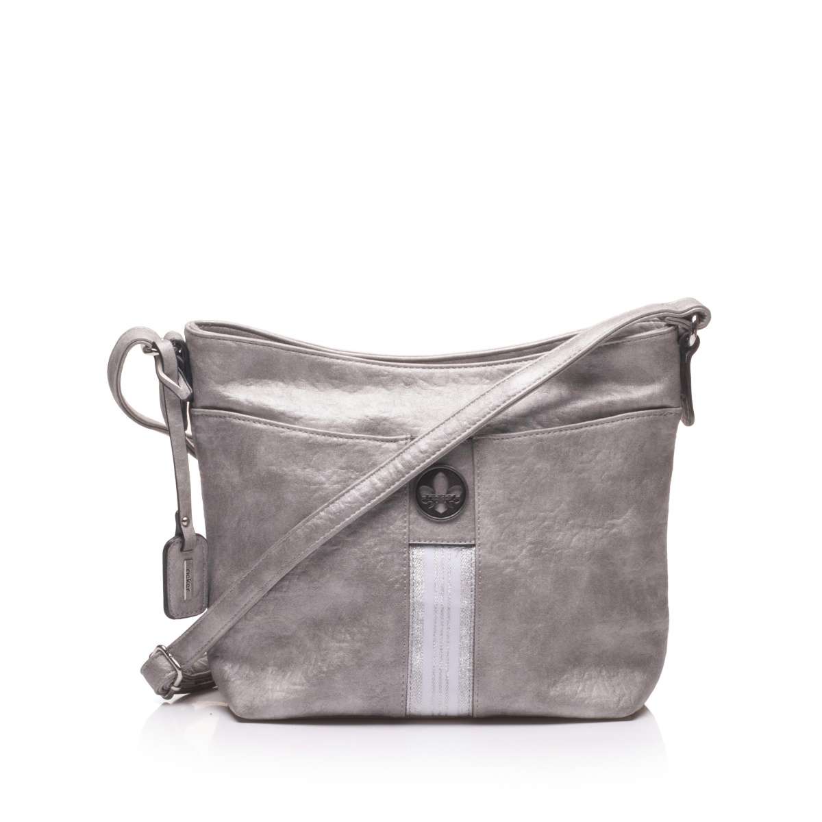 Tato dámská kabelka od značky Rieker v šedé barvě má zdobný barevný pruh, přívěsek a kovové logo. Na přední straně se nachází kapsa s magnetickým klipem, která slouží k uložení různých drobností. Vnitřní obsah je rozdělen na dvě části, které se uzavírají praktickým zipem a obsahují několik dalších menších kapes. Má dlouhý ramenní popruh, který si můžete jednoduše poupravit dle svých představ. Tento model se určitě stane Vašim ideálním společníkem po celý den.