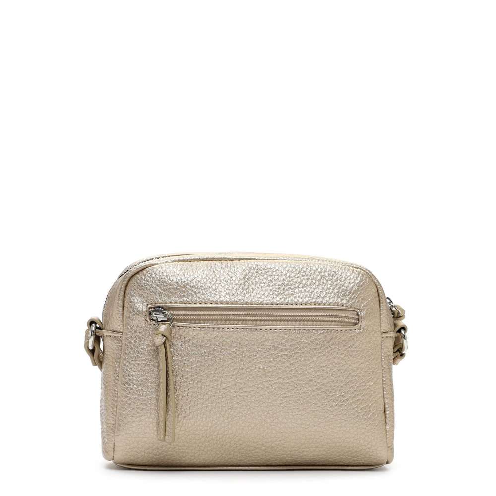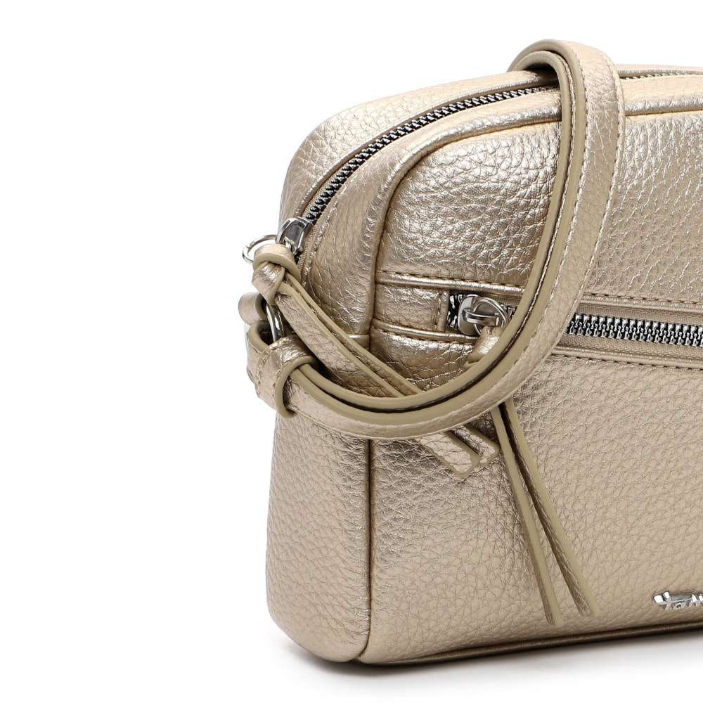 Kabelka značky Tamaris je stvořená pro ženy, které chtějí v každém okamžiku zářit. Její zlaté odlesky dodávají modelu luxusní vzhled, zatímco přední výrazný zip nejen uzavírá praktickou kapsičku, ale zároveň působí jako výrazný módní prvek. Logo značky na přední straně vystihuje originalitu. Zadní kapsa na zip poskytuje rychlý přístup k drobnostem, které chcete mít vždy po ruce, zatímco hlavní úložný prostor se zapínáním na zip a dvěma vnitřními kapsičkami zajistí bezpečné a přehledné uspořádání vašich osobních věcí. Nastavitelný popruh umožňuje nosit kabelku přes rameno nebo přes tělo, takže se dokonale přizpůsobí vašemu stylu a tempu dne. Ať už jdete do práce, na kavárnu s přáteli nebo na večerní akci, tato kabelka dodá vašemu outfitu sofistikovaný lesk a pocit sebevědomí.