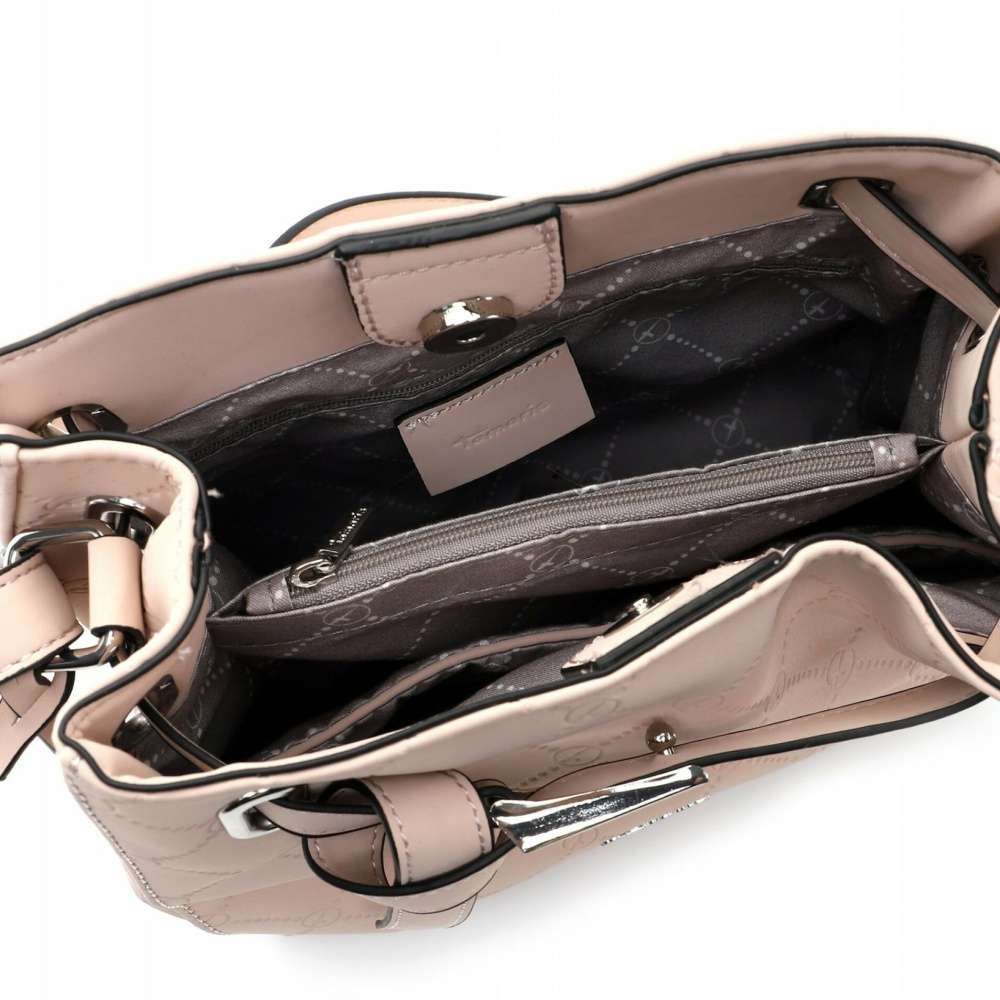 Dámská elegantní kabelka značky TAMARIS je skvělým doplňkem Vašeho šatníku. Svršek je zdoben decentním vzorováním a přívěskem s logem značky TAMARIS. Hlavní kapsa je uzavíratelná magnetickým klipem, po jehož rozepnutí se otevře dělený prostor na všechny Vaše cennosti. Pro pohodlné nošení tašky přes rameno poslouží dlouhý délkově nastavitelný popruh, který však nelze odepnout. S tímto kouskem doladíte každý outfit do práce i do města.