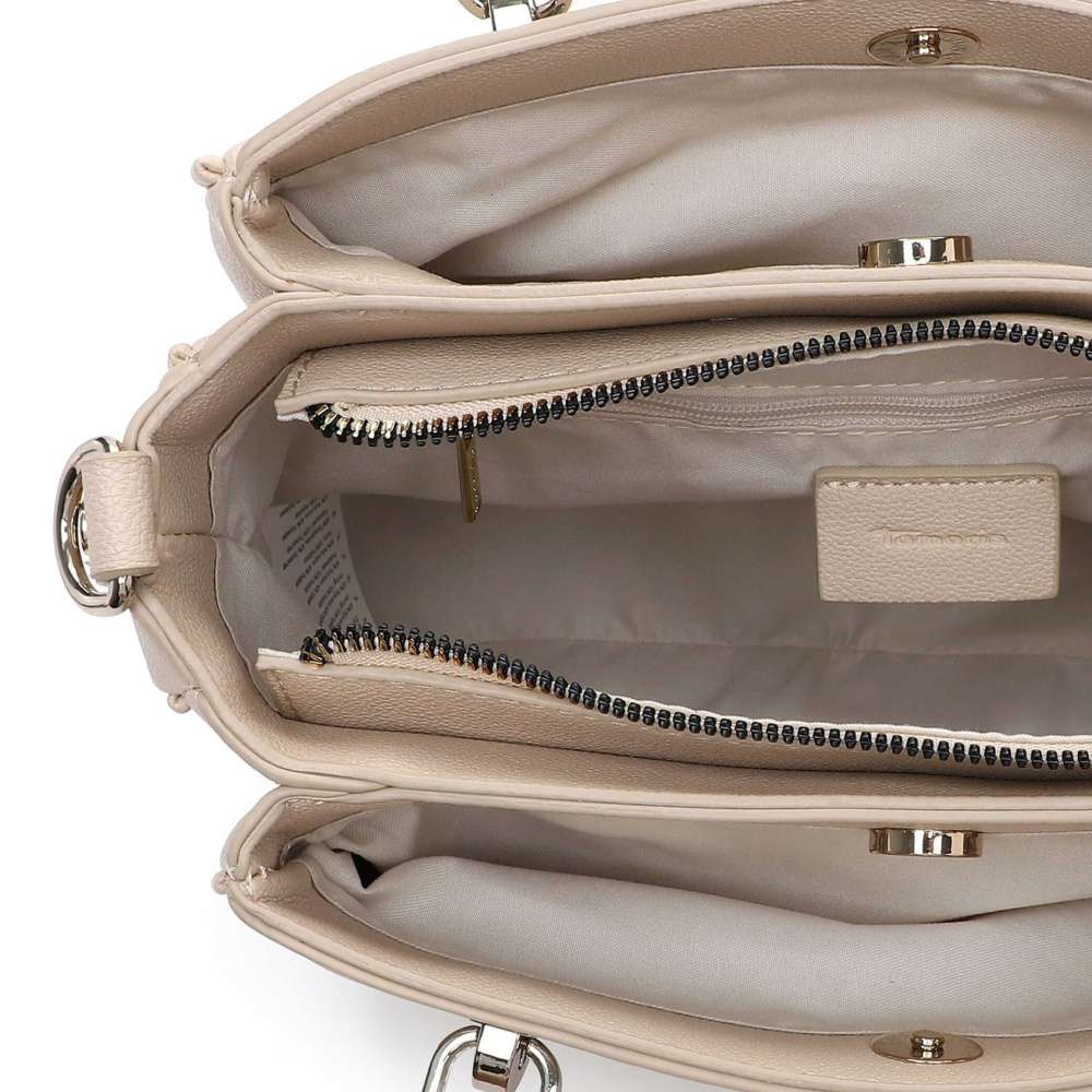 Kabelka značky Tamaris je stvořená pro ženy, které ocení kombinaci nadčasového designu, elegance a promyšlené praktičnosti. Její čisté linie v nadčasovém barevném provedení zdobí logo značky, které podtrhuje její prestiž a odnímatelná visačka působí jako jemný estetický akcent. Zadní malá kapsička poskytuje diskrétní a rychlý přístup k drobnostem, které chcete mít stále po ruce. Interiér kabelky je promyšleně rozdělen do tří samostatných částí – boční části se uzavírají magnetickým klipem a středová část zipem, kde najdete také dvě menší kapsičky pro přehledné uložení vašich drobností. Variabilní design umožňuje zvolit si styl nošení podle potřeby – kabelku můžete držet za pevné krátké úchyty v ruce, nebo připnout nastavitelný popruh a nosit ji pohodlně přes rameno. Praktická, elegantní a flexibilní – tato kabelka se přizpůsobí vašemu stylu i tempu dne.