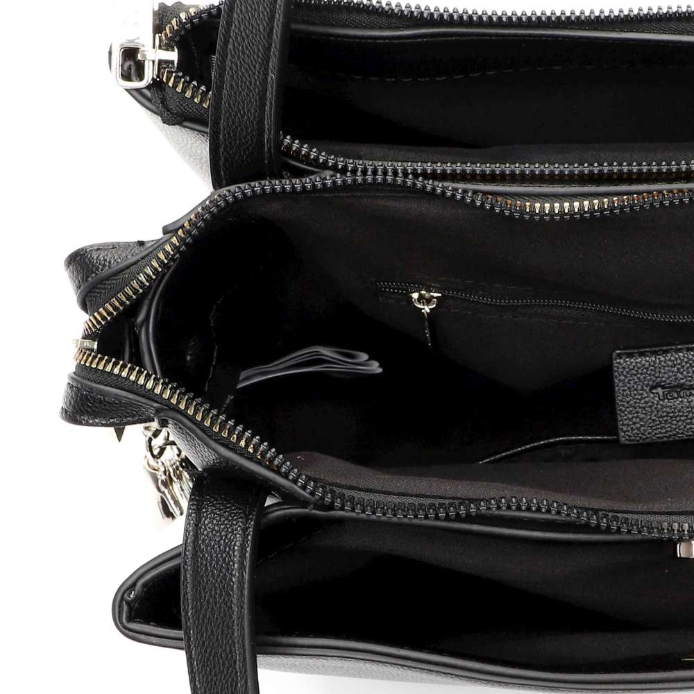 Kabelka značky Tamaris je stvořená pro ženy, které ocení kombinaci nadčasového designu, elegance a promyšlené praktičnosti. Její čisté linie v nadčasovém barevném provedení zdobí logo značky, které podtrhuje její prestiž a odnímatelná visačka působí jako jemný estetický akcent. Interiér kabelky je promyšleně rozdělen do tří samostatných částí – boční části se uzavírají magnetickým klipem a středová část zipem, kde najdete také dvě menší kapsičky pro přehledné uložení vašich drobností. Variabilní design umožňuje zvolit si styl nošení podle potřeby – kabelku můžete nosit za pevné úchyty nebo připnout nastavitelný popruh a přizpůsobit si ji svým potřebám. Praktická, elegantní a flexibilní – tato kabelka se přizpůsobí vašemu stylu i tempu dne.