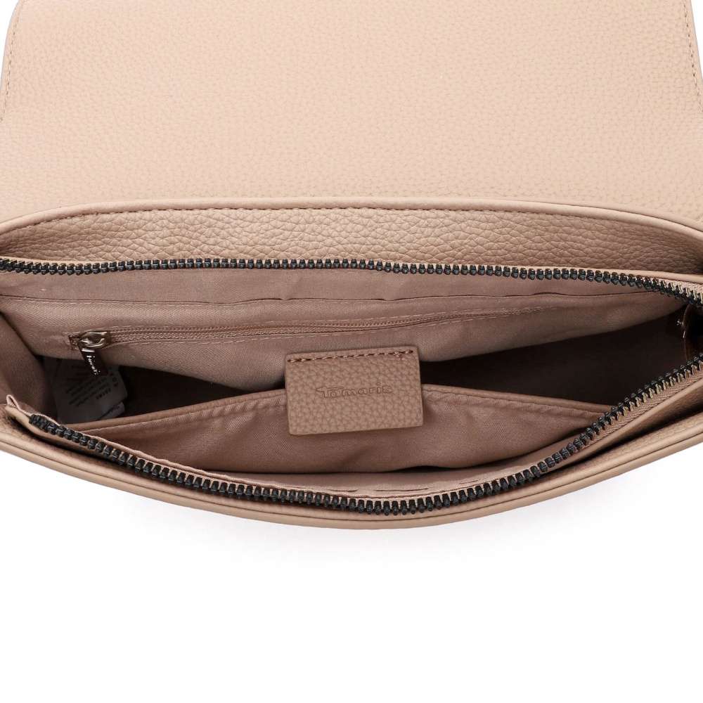 Půvabná kabelka značky Tamaris je symbolem nadčasové elegance. Její čisté linie a jemný odstín svršku, doplněný decentním zlatým logem značky, vytvářejí harmonický vzhled, který s noblesou zapadne do vašeho šatníku. Otevřením odklápěcí části a odjištěním magnetického klipu se odhalí prostorný interiér, uzavíraný zipem, vybavený dvěma menšími kapsičkami, které umožňují bezpečné a přehledné uložení vašich osobních věcí. Další praktická kapsička na zadní straně poskytuje diskrétní a rychlý přístup k drobnostem, které chcete mít stále po ruce. Stylový popruh s raženým nápisem Tamaris je pevný a elegantní, a pokud si přejete variabilitu, můžete využít odnímatelný a délkově nastavitelný popruh pro pohodlné nošení dle individuálních potřeb. Kabelka Tamaris je dokonalou kombinací nadčasového designu, elegance a funkčnosti, která s vámi prožije každý den s noblesou a stylem.