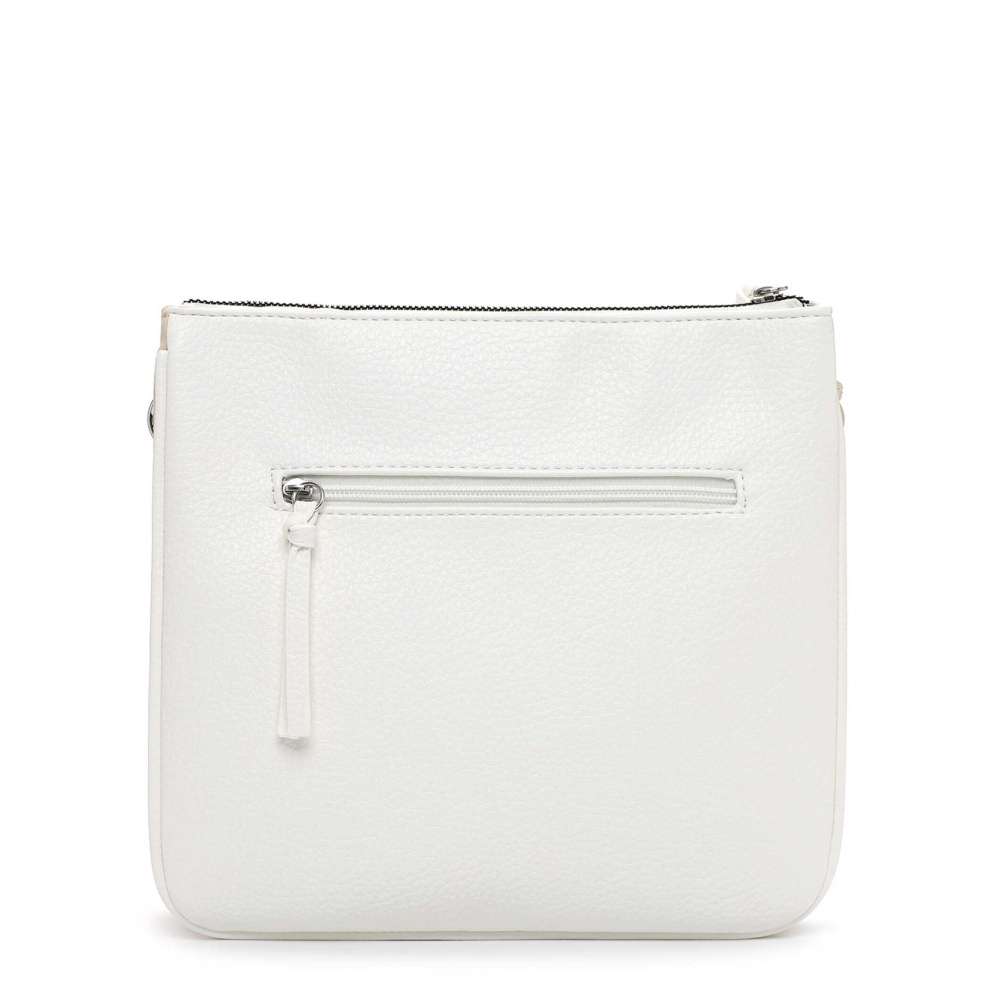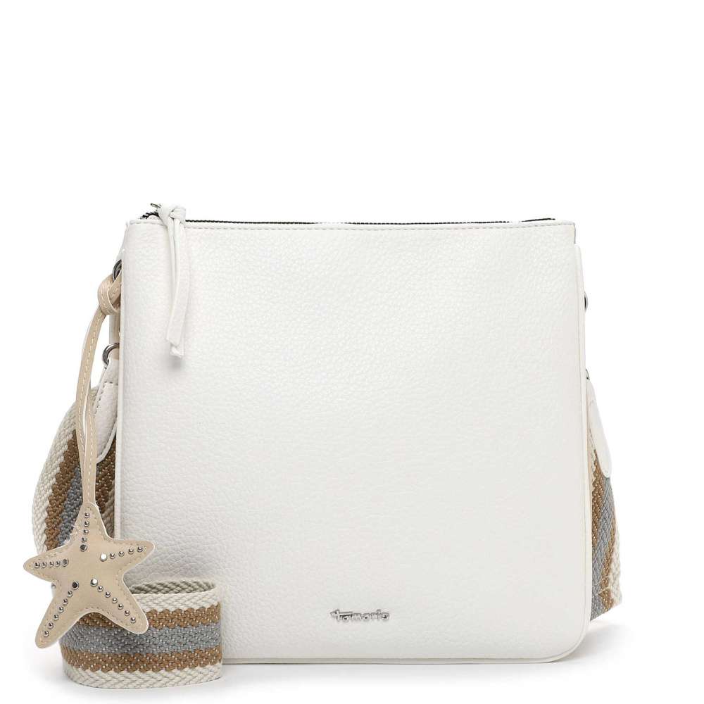 Kabelka značky Tamaris představuje nadčasový styl v moderním provedení, který s lehkostí zapadne do vašeho šatníku. Bílý svršek je doplněn stříbrným logem značky a výraznou hvězdicovou aplikací, která dodává kabelce osobitý charakter. Hlavní prostor uzavíraný zipem je rozdělen do dvou samostatných částí, z nichž každá obsahuje menší kapsičku pro bezpečné a přehledné uspořádání vašich osobních věcí. Zadní část kabelky je doplněna další menší kapsičkou, která poskytuje rychlý a diskrétní přístup k drobnostem. Odepínatelný a délkově nastavitelný popruh umožňuje variabilní nošení přes rameno nebo přes tělo, takže kabelku snadno přizpůsobíte aktuálním potřebám. Popruh navíc svým propracovaným vzhledem a barevným kontrastem vytváří působivý vizuální dojem. Tato kabelka je víc než doplněk – je to stylový společník, který spojuje praktičnost a módní výraz v jednom nadčasovém kousku.