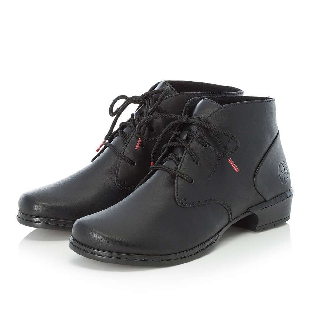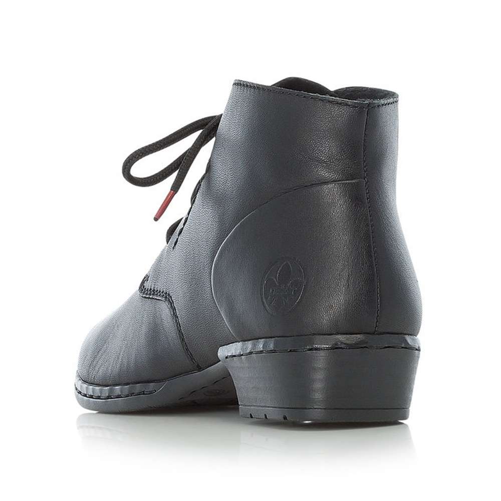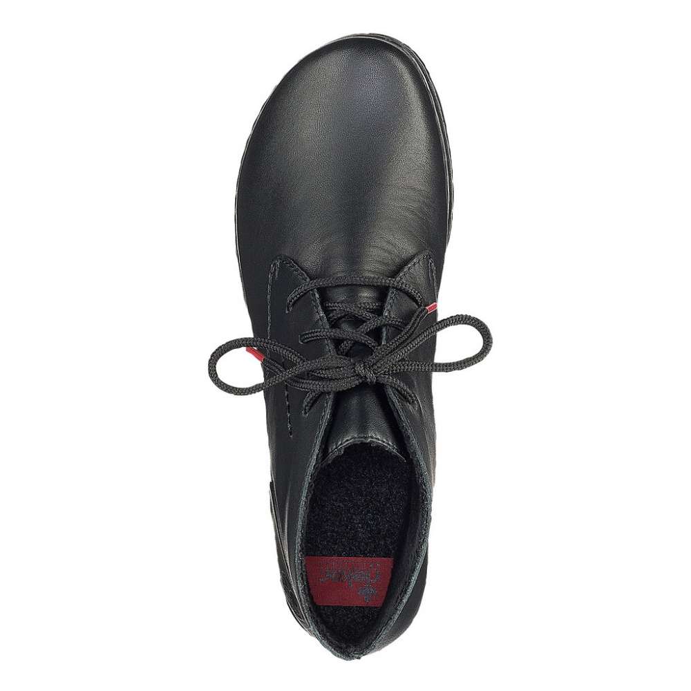 Kožená nadčasová obuv RIEKER s matným povrchem a decentním prošitím je ozdobena jemným logem v části paty. Tkaničky na šněrování slouží pro lepší přizpůsobení přímo na Vaši nohu. Podšívka je vyrobena z hřejivého, sametového materiálu Velur a paměťová stélka se postará o pohodlí během celého dne. Podešev má nízký, široký podpatek s výškou cca 3 cm a je vyrobena technologií Antistress, díky níž je lehká, flexibilní, absorbuje nárazy při došlapu a snadno se přizpůsobí každé noze. Tento model vynosíte například na posezení s přáteli, či do práce.