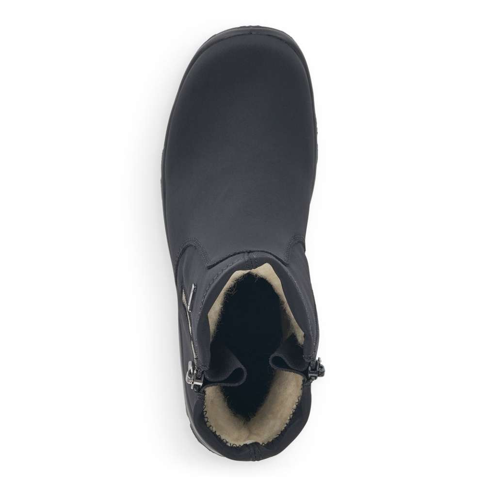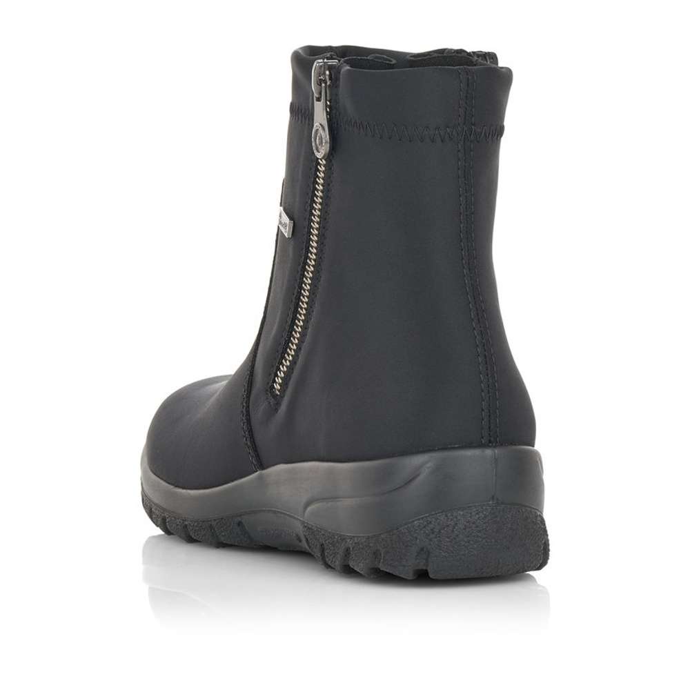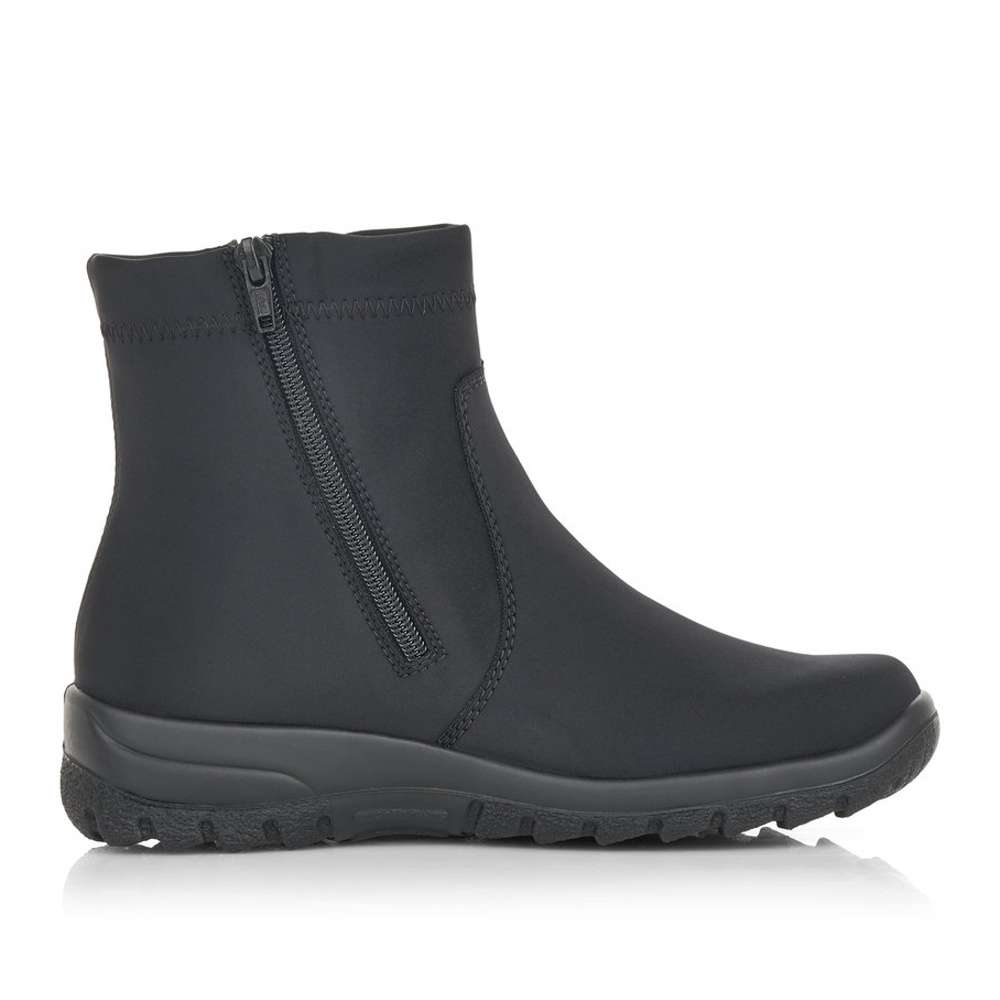 Tato dámská obuv značky RIEKER bude pro Vás ideální volbou. Černý svršek je zdobný jemným prošíváním a zipem na vnější straně. Díky funkční vrstvě je obuv nepromokavá a zajistí Vám potřebný komfort i v deštivých dnech. Dva funkční zipy, podšívka z pravé ovčí vlny a stélka z hřejivého textilního materiálu Vám dodají potřebný pocit pohodlí při každodenním nošení. Tento úžasný model užijete celou zimu k běžným, ale i pracovním outfitům.