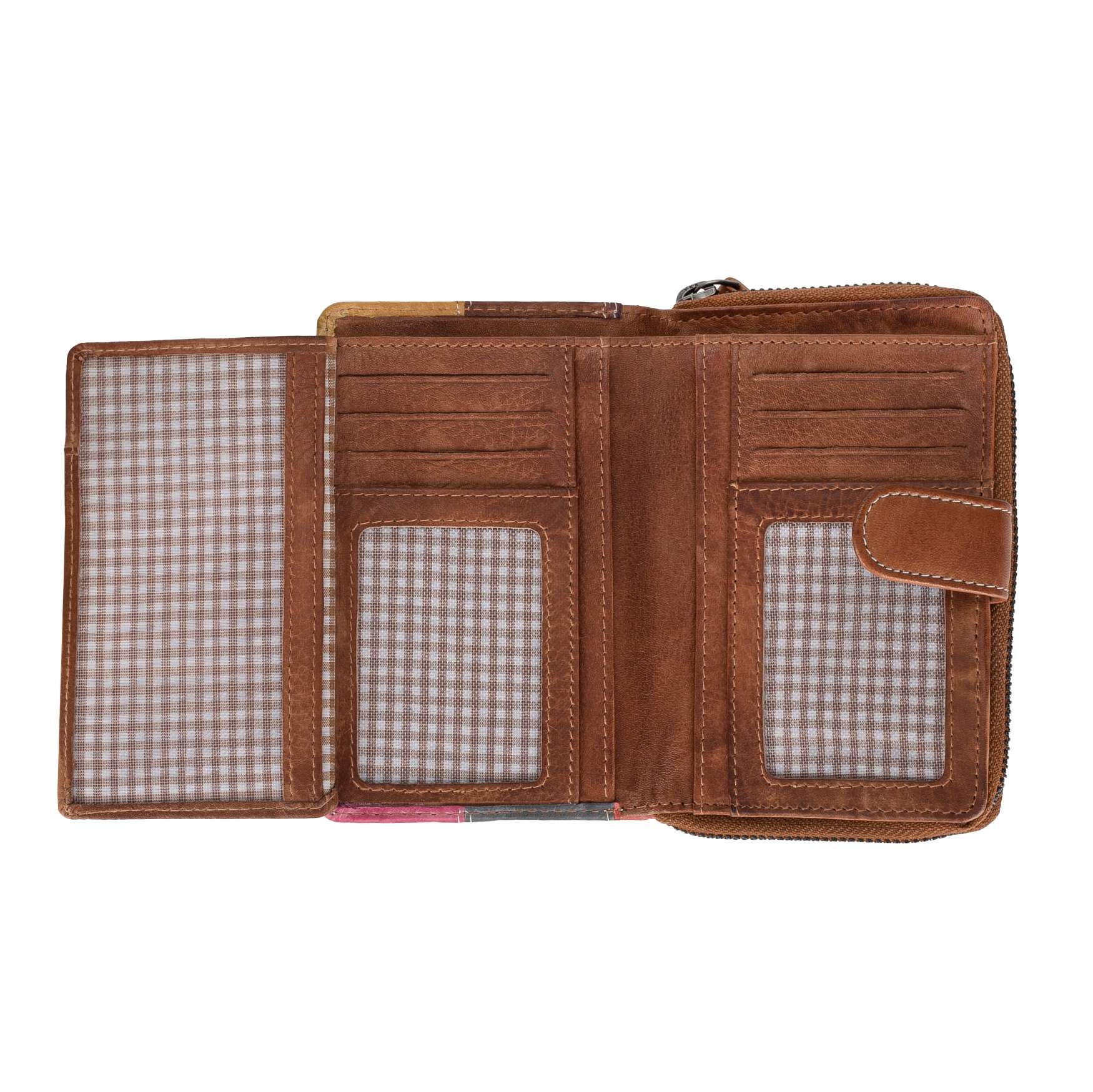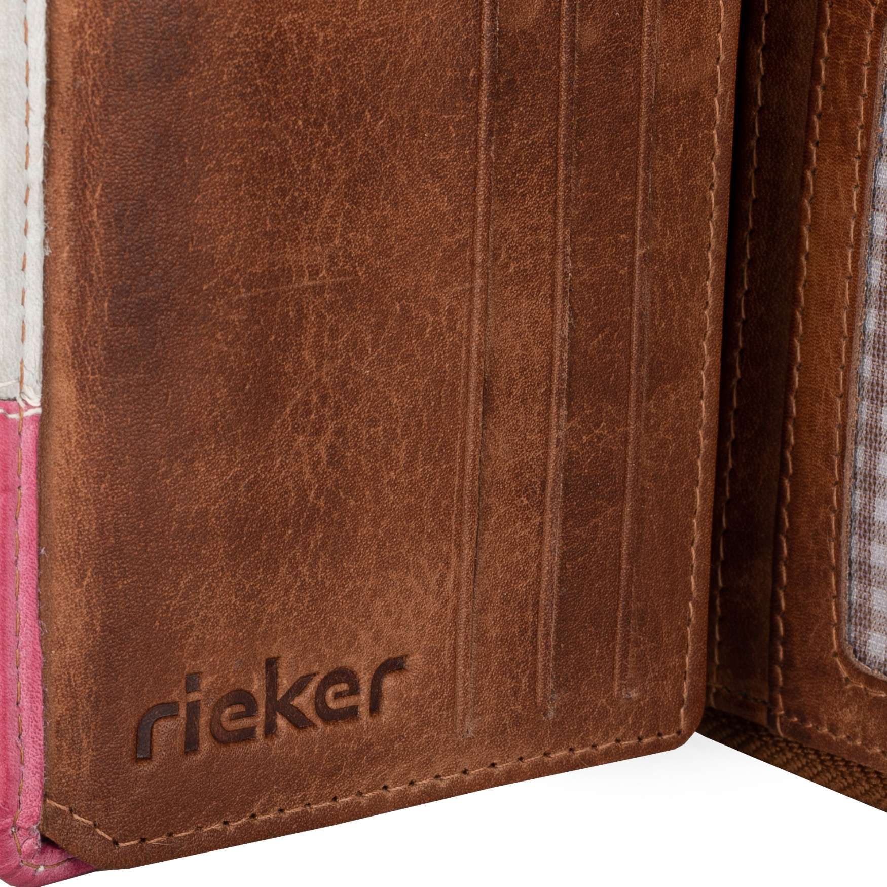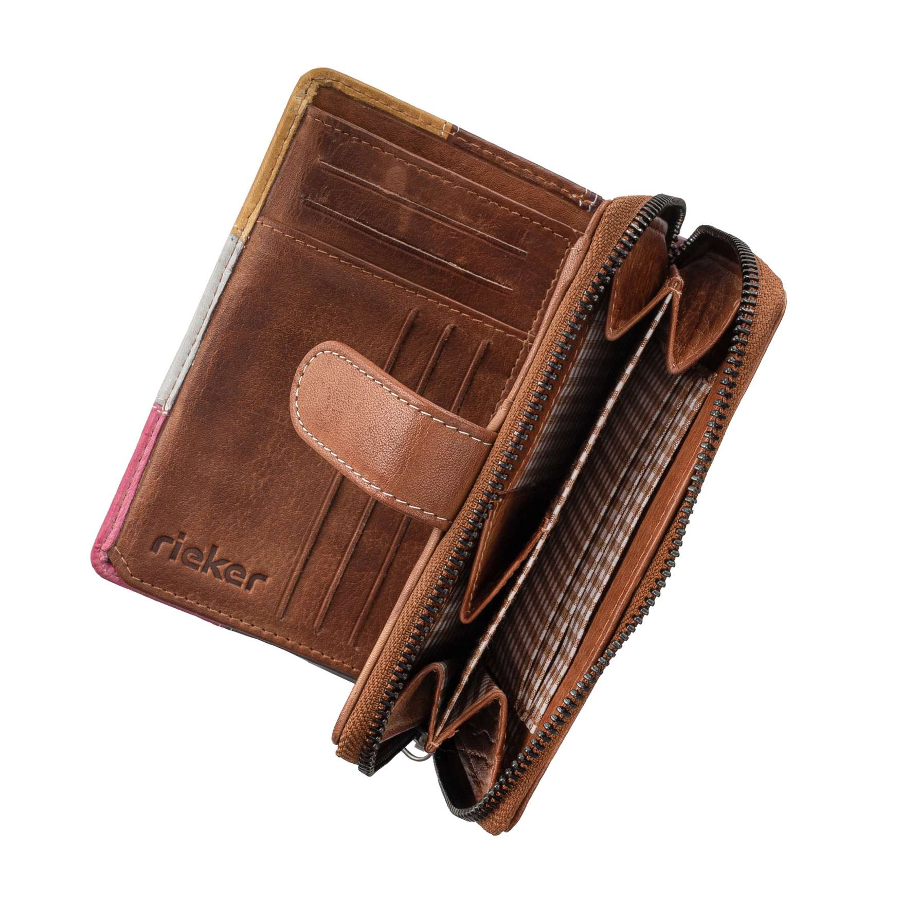 Dámská peněženka značky RIEKER, svým dokonale propracovaným a sladěným svrškem vícebarevné skládačky, bude originálním doplňkem každé z vás. Vrchní materiál je vyroben z pravé přírodní usně a dozdoben kontrastním prošitím. Peněženka je rozdělena na dvě části. Hlavní část uzavíratelná cvočkem má spoustu kapsiček na karty, čtyři postranní skryté kapsičky, jednu průhlednou a dvě podlouhlé na papírové peníze. Prostor uzavíratelný zipem umístěný v zadní části peněženky je vhodný jak pro uložení mincí, tak je zde i část na karty. S tímto luxusním doplňkem můžete udělat radost nejen sobě, ale také svým blízkým.