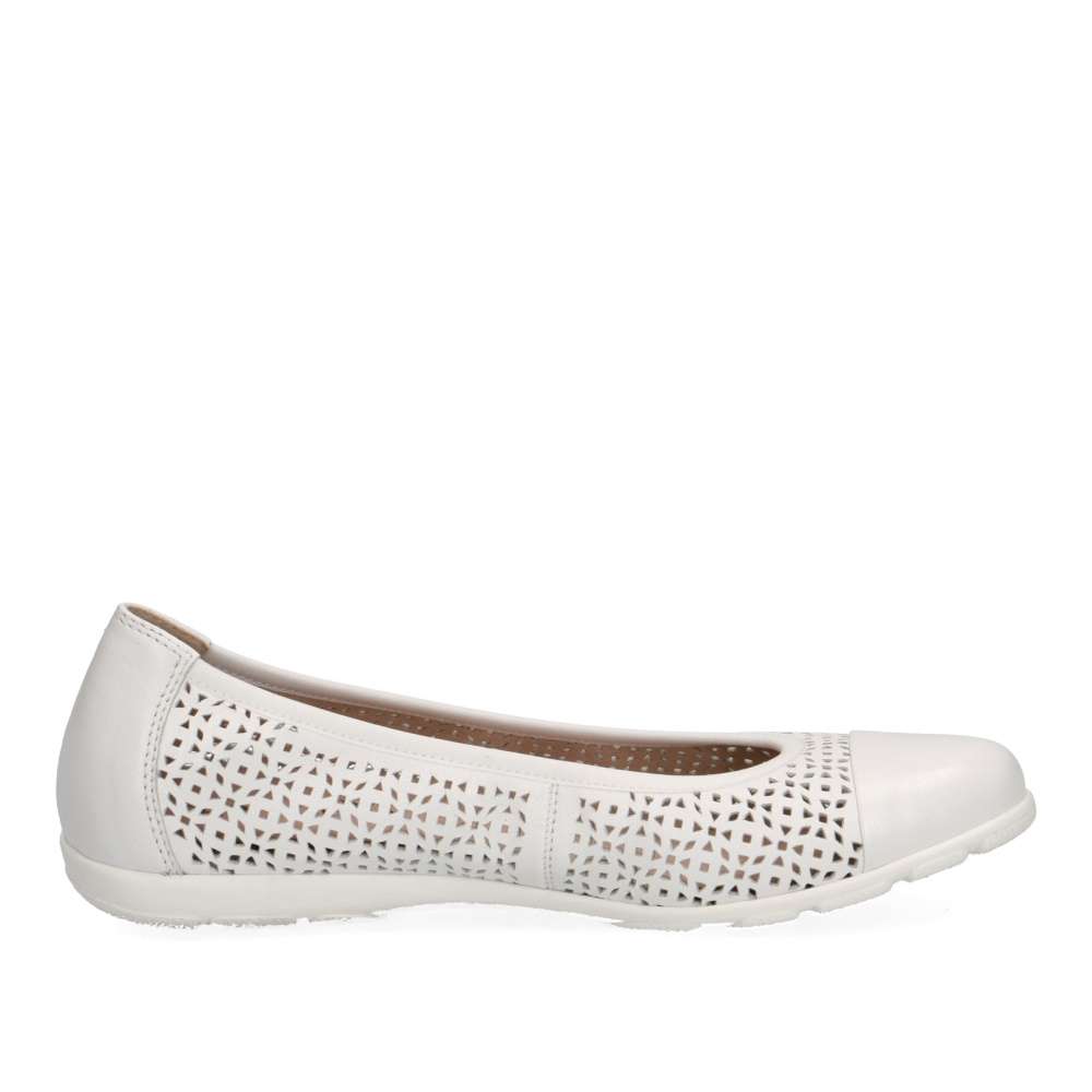 Krásné a stylové baleríny CAPRICE budou tím pravým do teplých letních dnů. Svršek vyrobený z pravé kůže je ve střední části designově perforován. Pohodlí na každém kroku Vám zajistí měkká kožená stélka a nízká podešev. Obuv se skvěle hodí jak do kanceláře, tak i na procházky po městě.