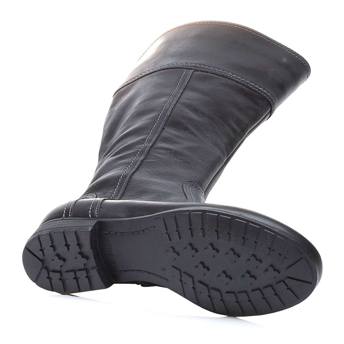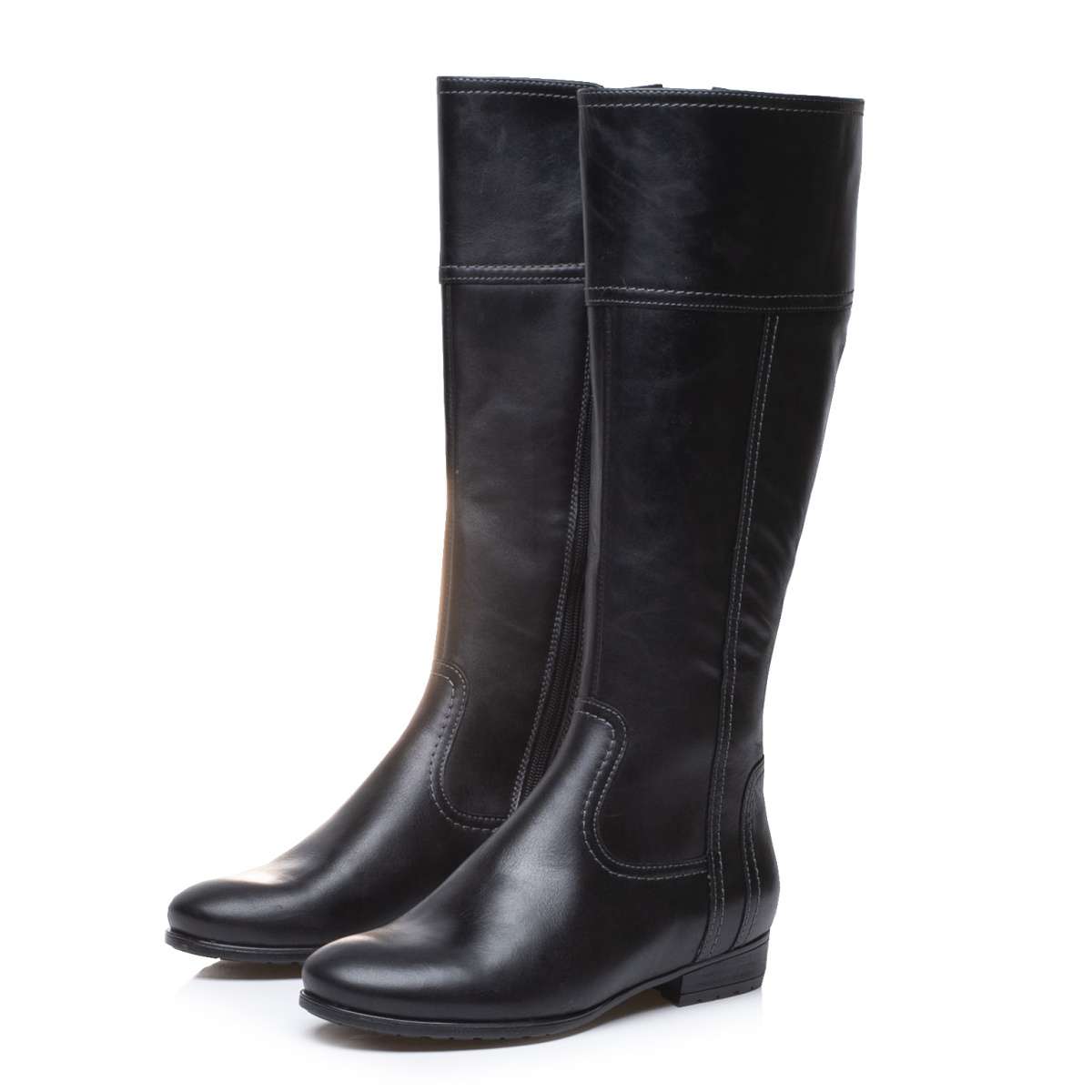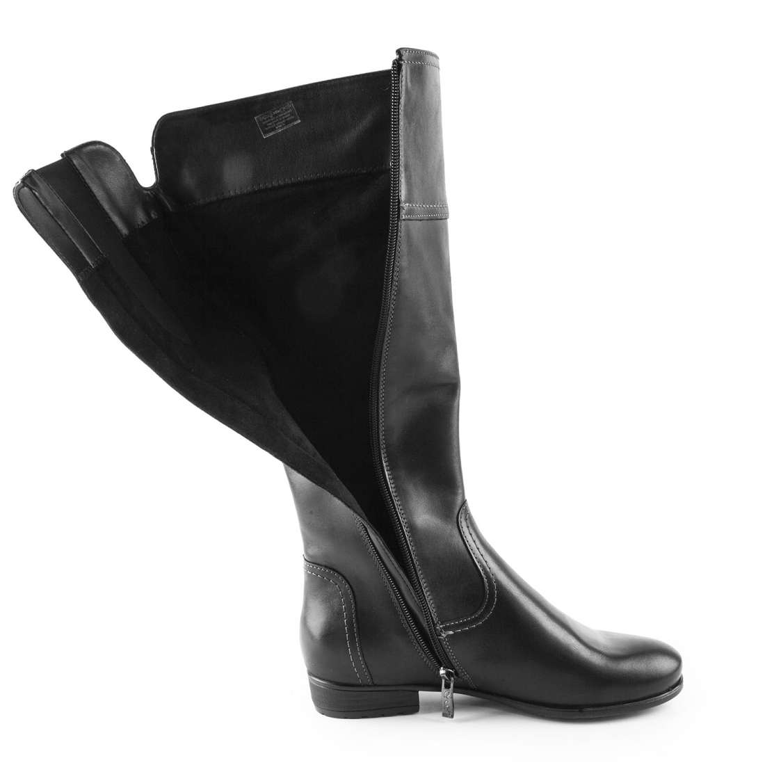 Dámské kožené kozačky s vyjímatelnou stélkou. Svršek je tvořen hladkou kůží v černé barvě. U horního okraje na vnitřní straně je rozparek, do kterého je vsazená gumička. Na vnitřní straně je po celé délce funkční zip pro pohodlné a rychlé nazouvání a zouvání. Podšívka je potažena zateplenou textilií bez chlupu. Podešev je s hrubším vzorkem pro jistý krok i během námrazy.