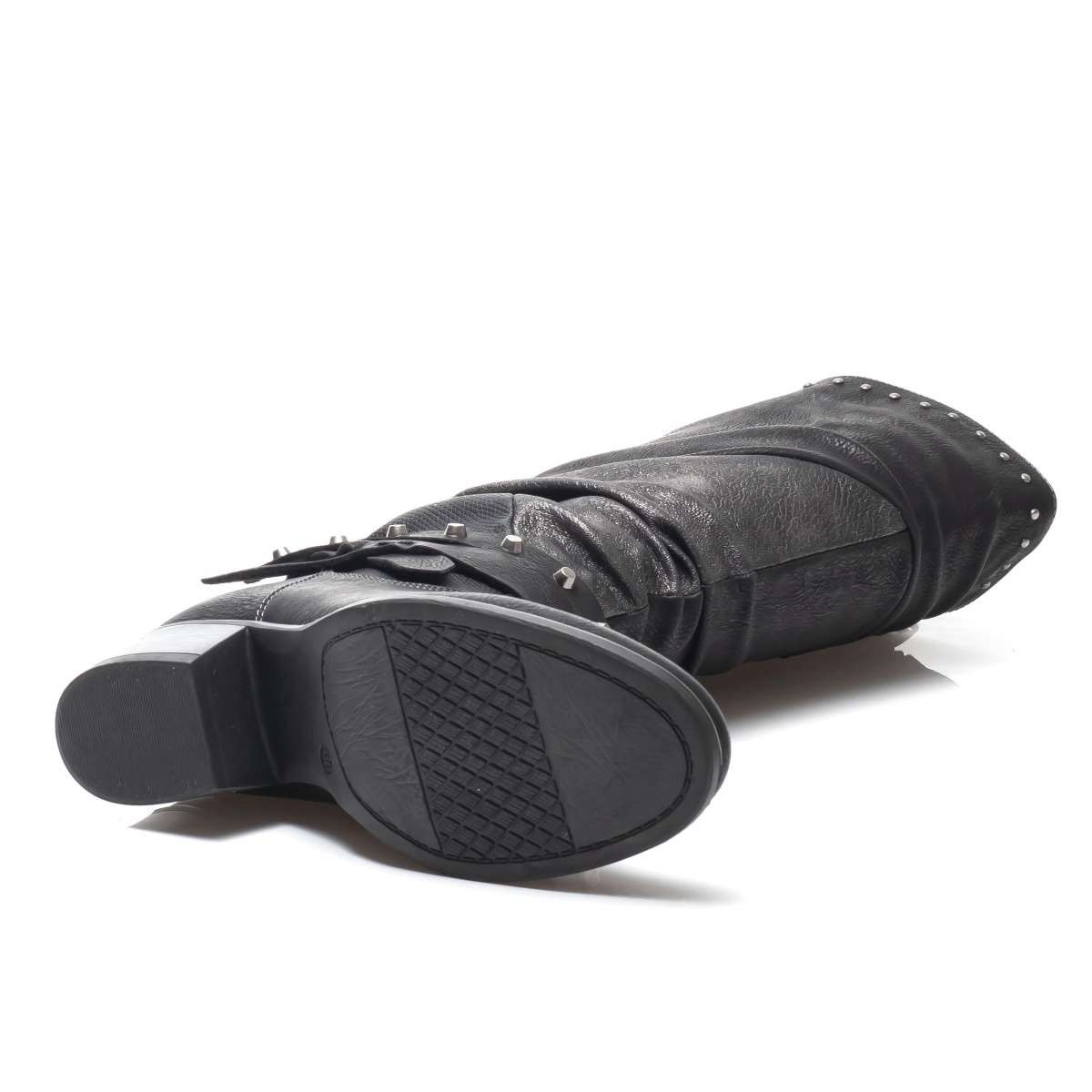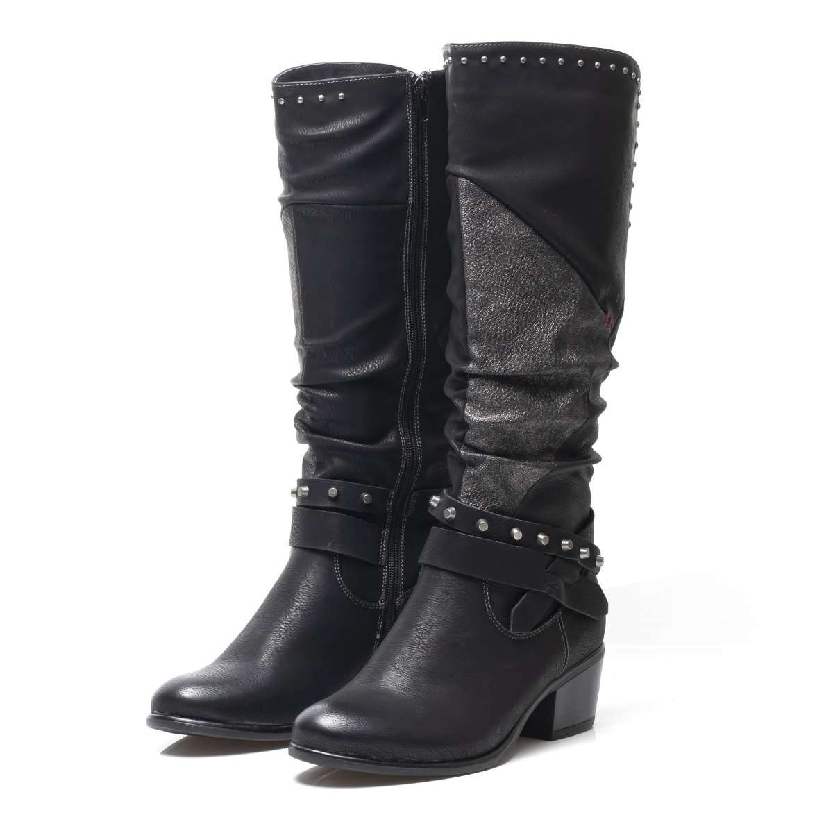 Obuv REMONTE je vyšší řadou značky RIEKER, obuv se vyznačuje kvalitou použitých materiálů, komfortnější šířkou a nadměrnými velikostmi. Tyto dámské kozačky Vás na první pohled zaujmou svým spojením svrškových částí na vnější straně, kovovou aplikací kolem horního okraje a pásky kolem kotníku s kovovými druky. Kulatá špička, jemné prošívání či nízký stabilní podpatek jsou znaky této krásné obuvi. V zadní části je pružná gumička pro lepší přizpůsobení přímo k Vaší noze. Tyto kozačky budou dobře vypadat jak se sukní, tak s kalhotami. Boty z řady Remonte Vám zajistí maximální komfort a pohodlí při celodenním nošení.