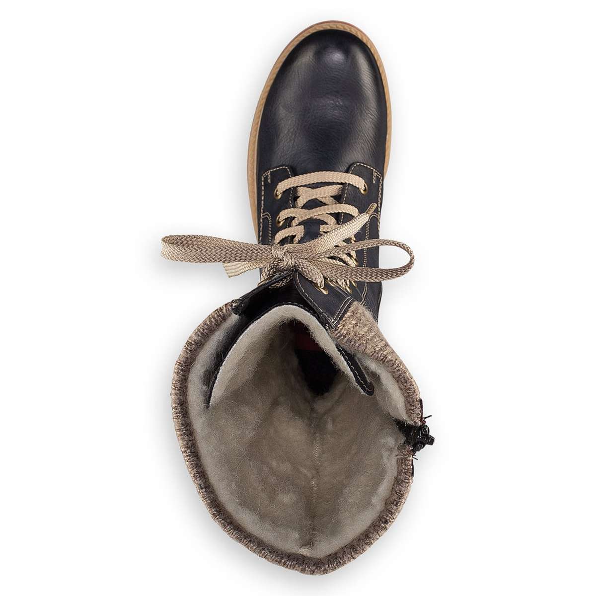 Nadčasový a hřejivý model od značky Rieker s pleteným lemem ve dvou barevných variantách, ze kterých si jistě vybere každá z Vás. Tkaničkami na šněrování si obuv upravíte přímo na Vaši nohu a funkčním zipem na vnitřní straně si skvěle usnadníte obutí. Pohodlná stélka je vyrobena z měkkého materiálu, který zajistí celodenní komfort a podešev s traktorovým vzorkem Vám zajistí bezpečnou chůzi. Tato obuv krásně doplní Váš zimní outfit jak při cestě do práce, tak i na procházkách městem.
