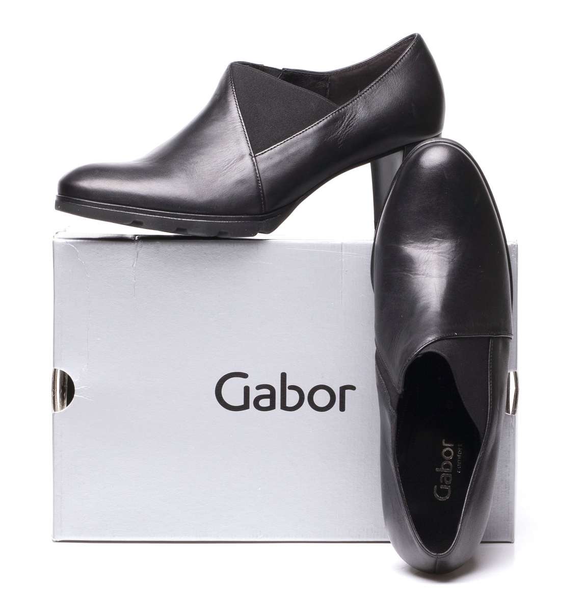 Tato dámská polobotka na podpatku je vyrobena z pravé hladké černé kůže. Zdobným prvkem, který zároveň slouží pro snadné nazouvání je všitá pružná gumička do trojúhelníku. Díky technologiím Comfort G a Air Cube je obuv pohodlná i při celodenním nošení.