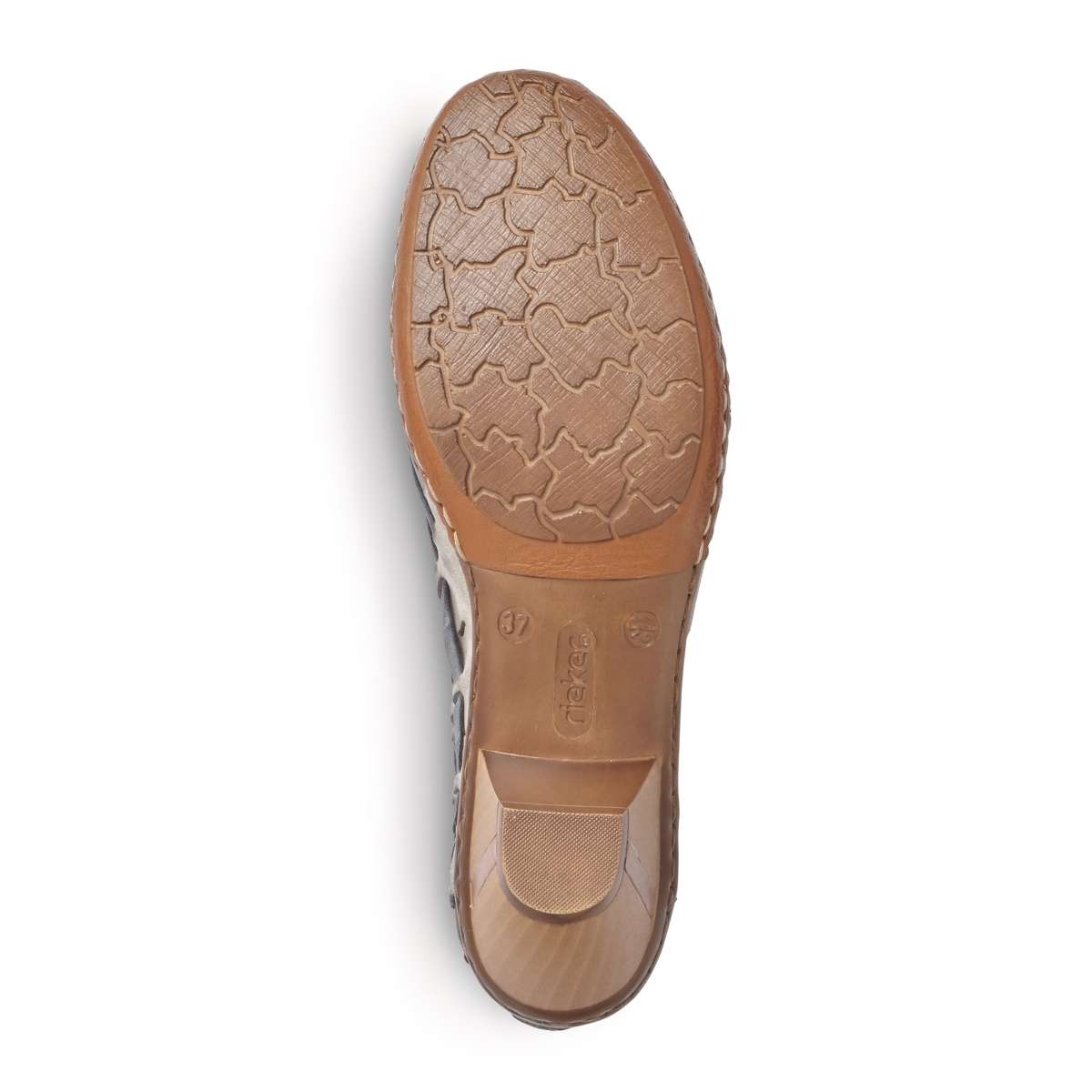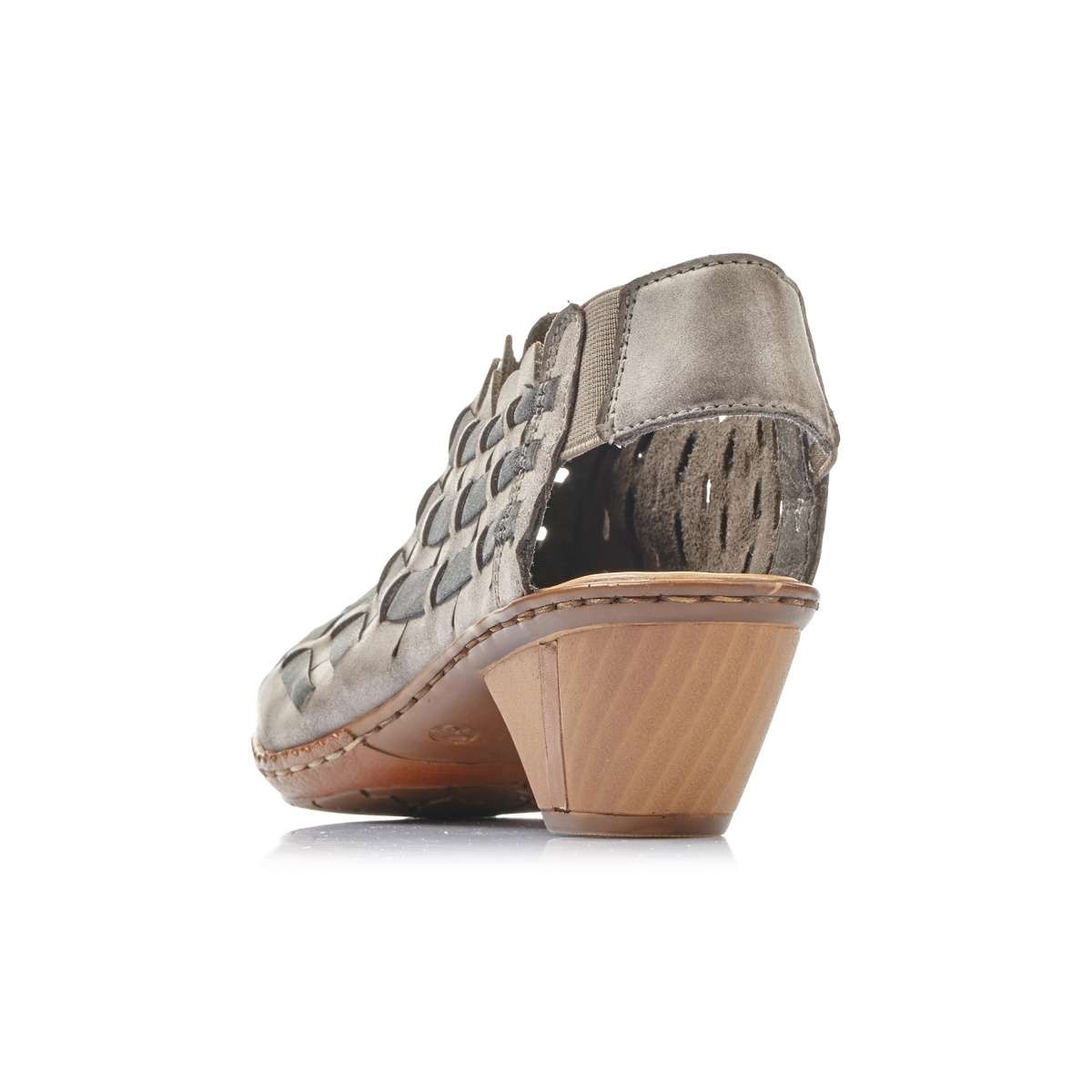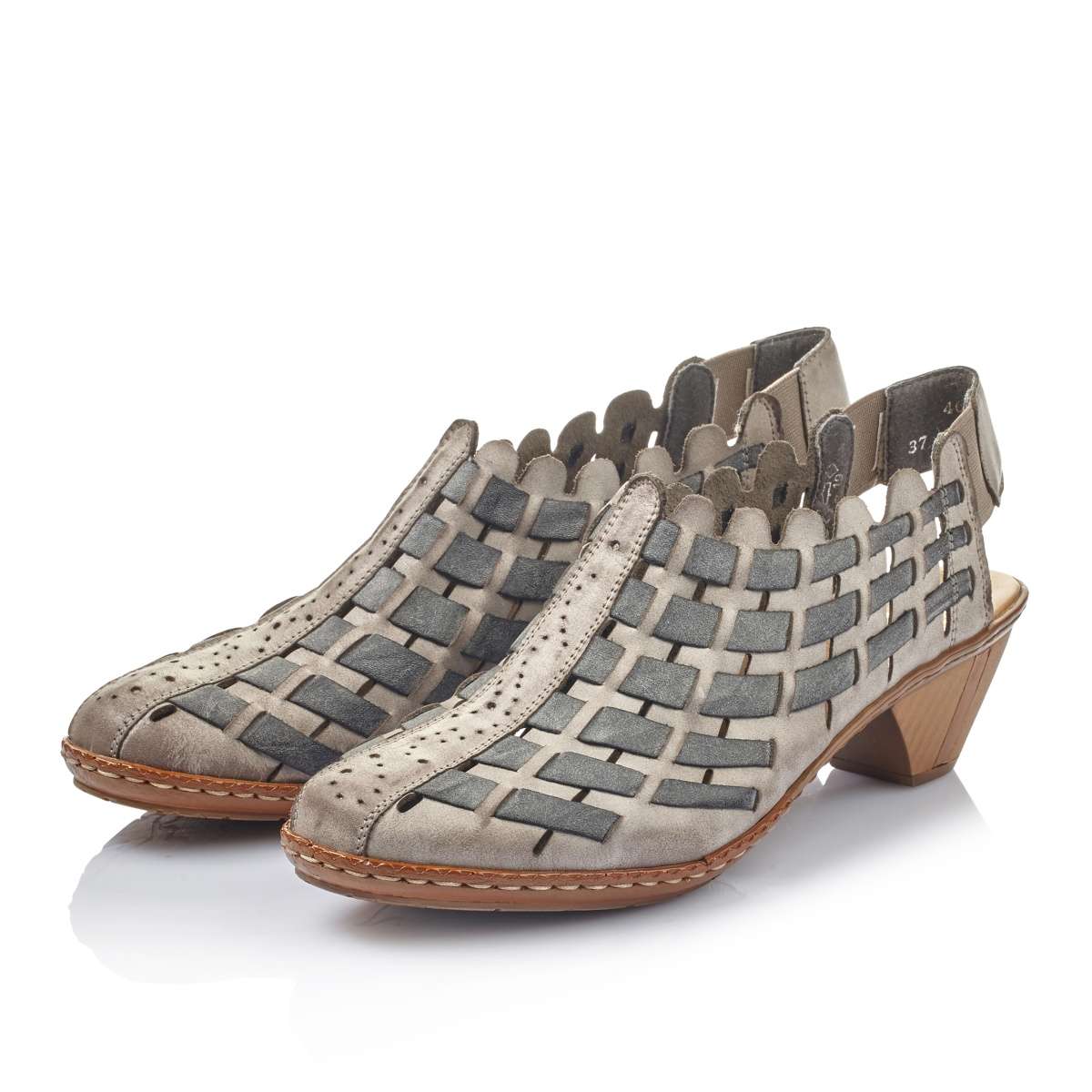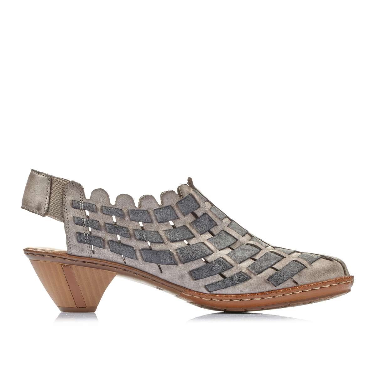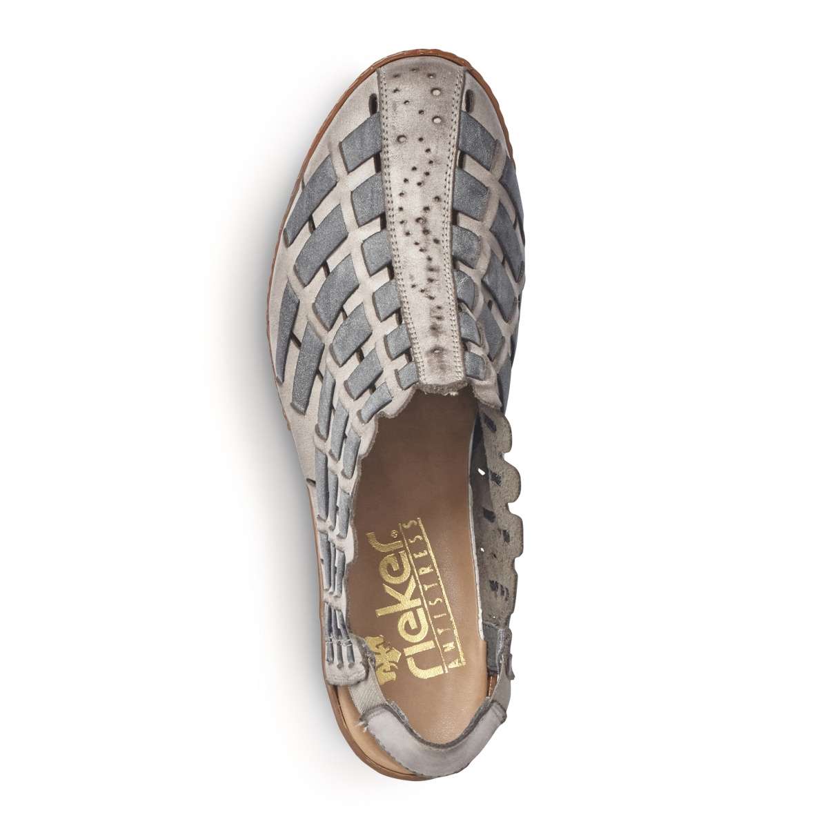 Vzdušné lodičky pro úzkou nohu, s volnou patou v šedé barvě s proplétanými pásky na svršku a s páskem kolem paty, který skvěle drží nohu díky pružným gumičkám. Boty jsou vyrobeny technologií Antistress díky níž jsou lehké, ohebné a pohlcují nárazy na páteř. Obuv je jednoduchá, elegantní a tím pádem vhodná na každou příležitost.