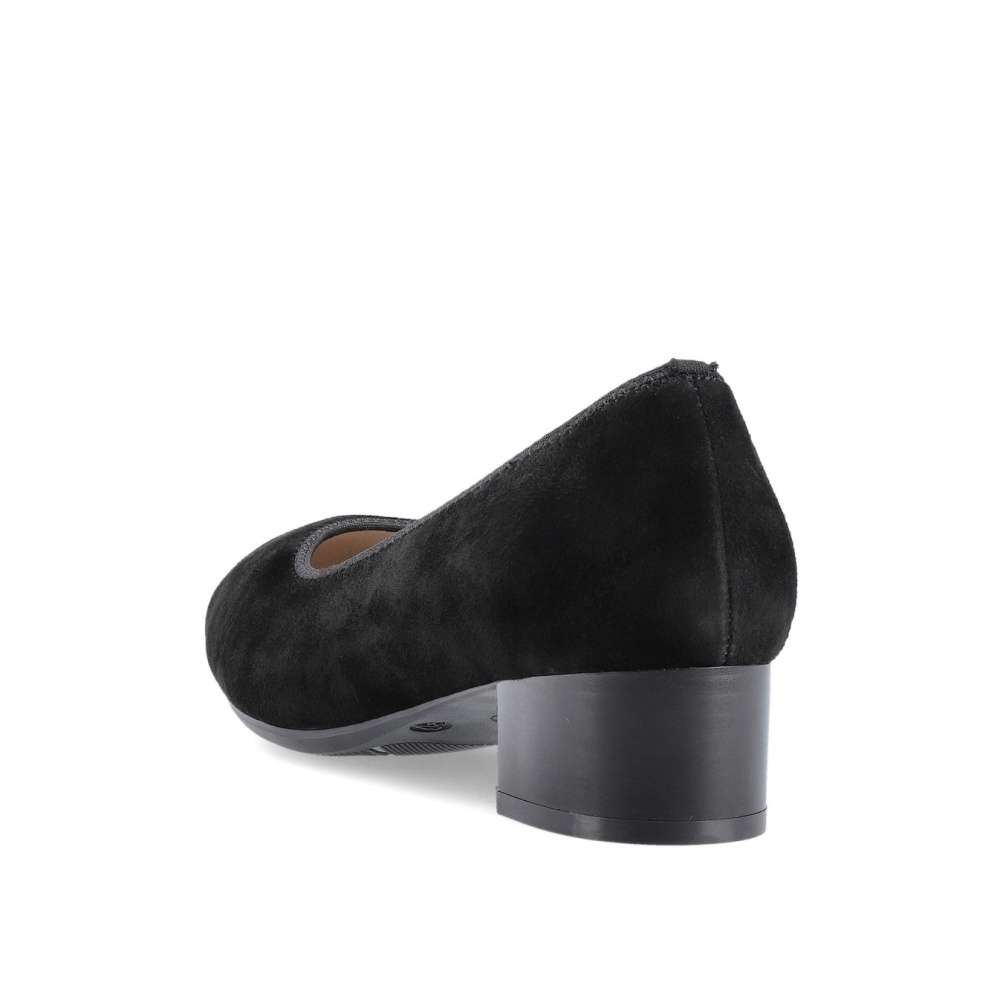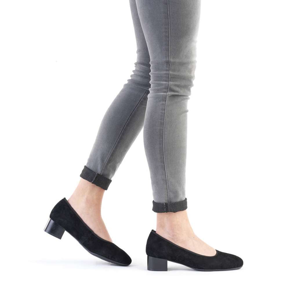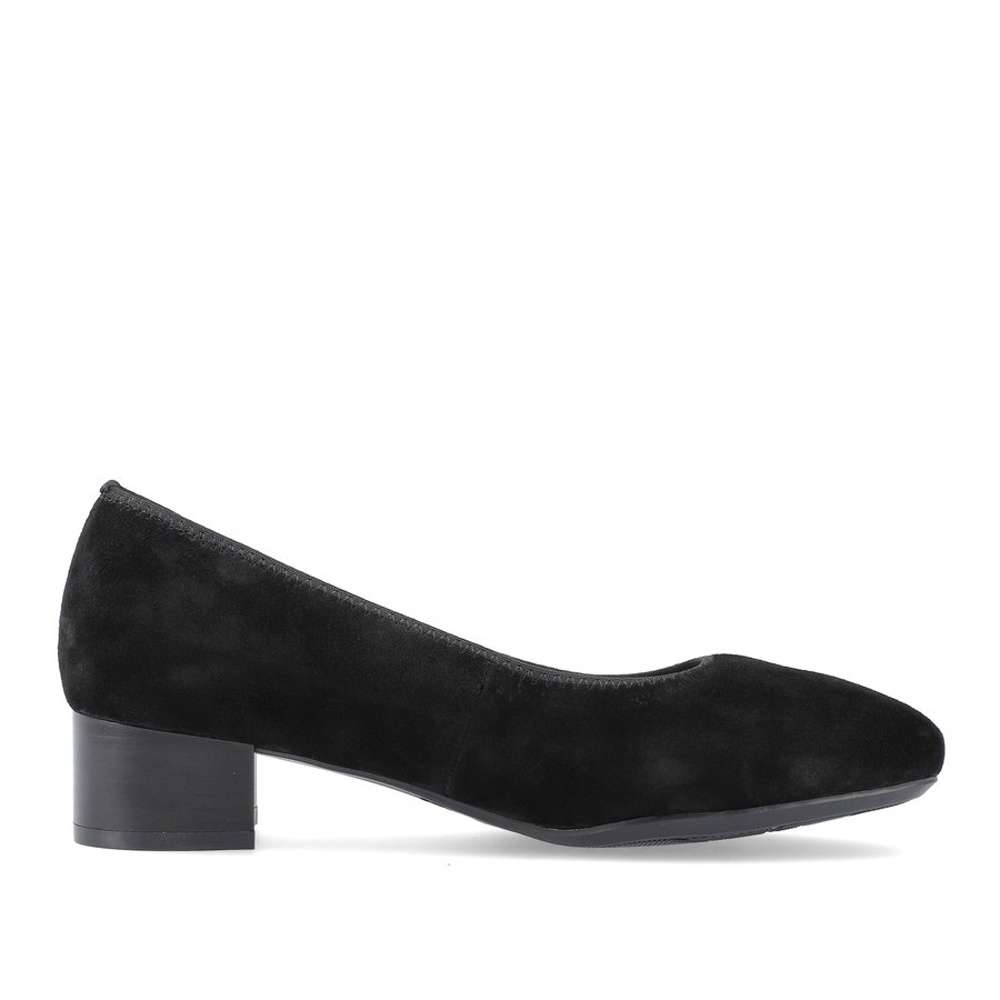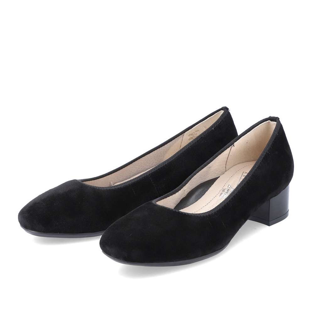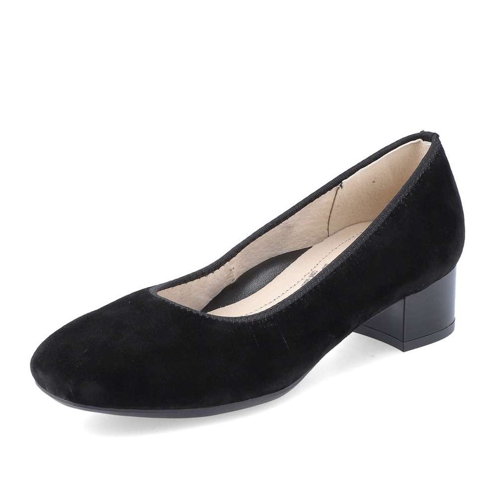 Klasické dámské lodičky jsou šité z pravé kůže černé barvy. Mají semišový povrch, kulatou špici, pružnou gumičku po obvodu pro přilehnutí k Vaší noze a logo firmy Rieker na straně paty. Měkká stélka a bokový podpatek se postarají o pohodlí na každém kroku. Užijete je k pracovním i volnočasovým aktivitám se všemi outfity.