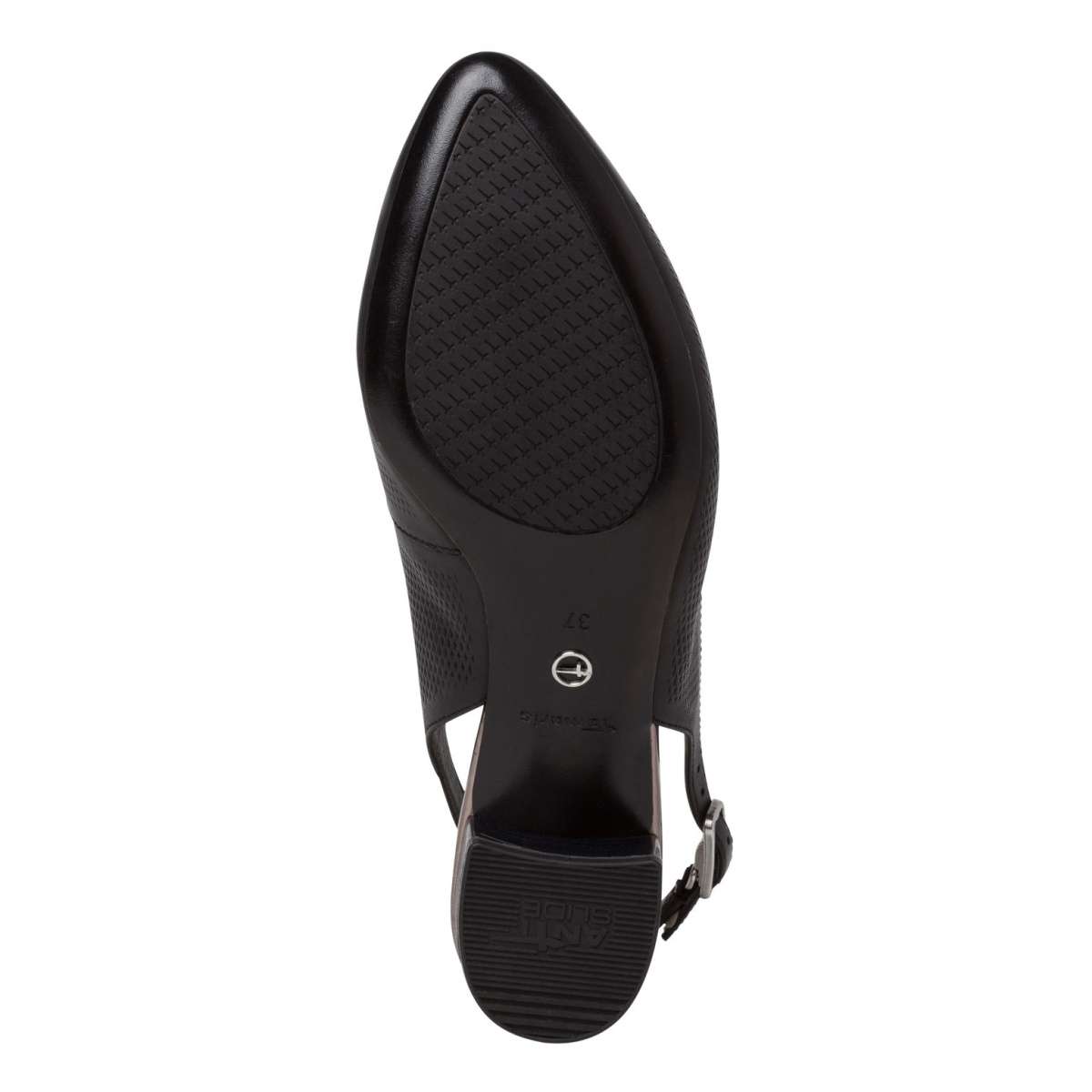 Technologie ANTISLIDE – obuv s patentovaným protiskluzovým prvkem v podpatku, který výrazným způsobem snižuje riziko uklouznutí na kluzkém povrchu.