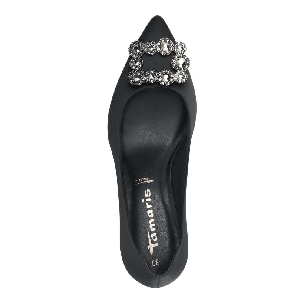 Tyto dámské lodičky od značky TAMARIS mají svrchní materiál z příjemného a hladkého materiálu. Jsou ozvláštněny třpytivým komponentem na úzké špičce, což dotváří velice elegantní a stylový vzhled. Měkká stélka Vám dodá pocit pohodlí při každém kroku. Tento model krásně doplní Vaše outfity.
