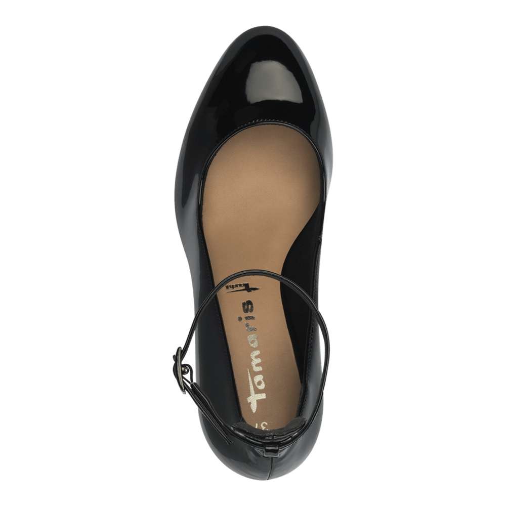 Nadčasová dámská lodička na podpatku od značky TAMARIS s lakovaným svrchním materiálem. Vyšší podpatek s podešví vytváří dokonalý módní vzhled. Díky pásku s kovovou přezkou kolem kotníku si obuv upravíte přesně podle svého chodidla. Měkká stélka Vám zajistí pocit pohodlí při každém kroku. Potěšte sebe nebo své blízko tímto neodolatelným kouskem.