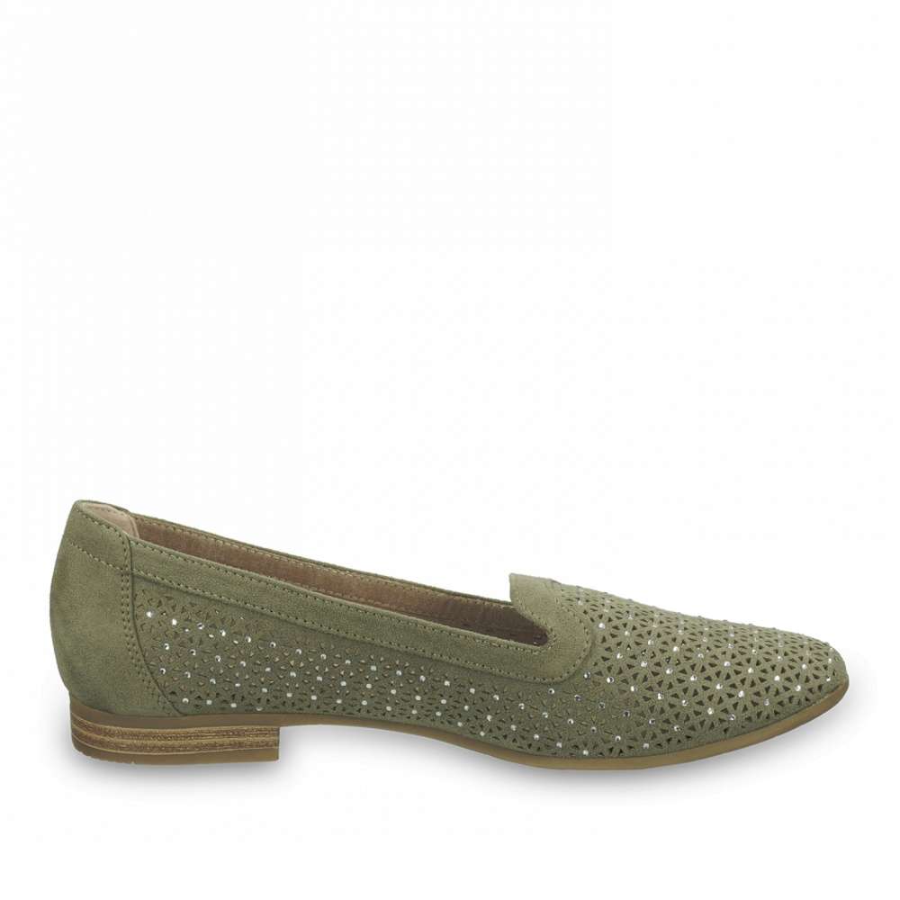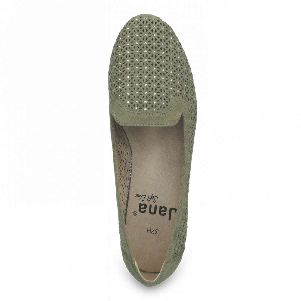 Dámské mokasíny značky JANA budou tou správnou volbou pro teplé letní dny. Kvalitní semišový svršek je pro lepší odvětrávání perforován a ozdoben malými kamínky. Boty se snadno nazouvají a díky jejich měkké stélce se budete cítit pohodlně po celý den. Podešev s nízkým podpatkem o výšce cca 1,5 cm je vyrobena z velmi kvalitního syntetického materiálu, který je lehký, měkký a současně mimořádně flexibilní. Pokud hledáte pohodlnou a zároveň stylovou obuv tento model je tím pravým právě pro Vás.