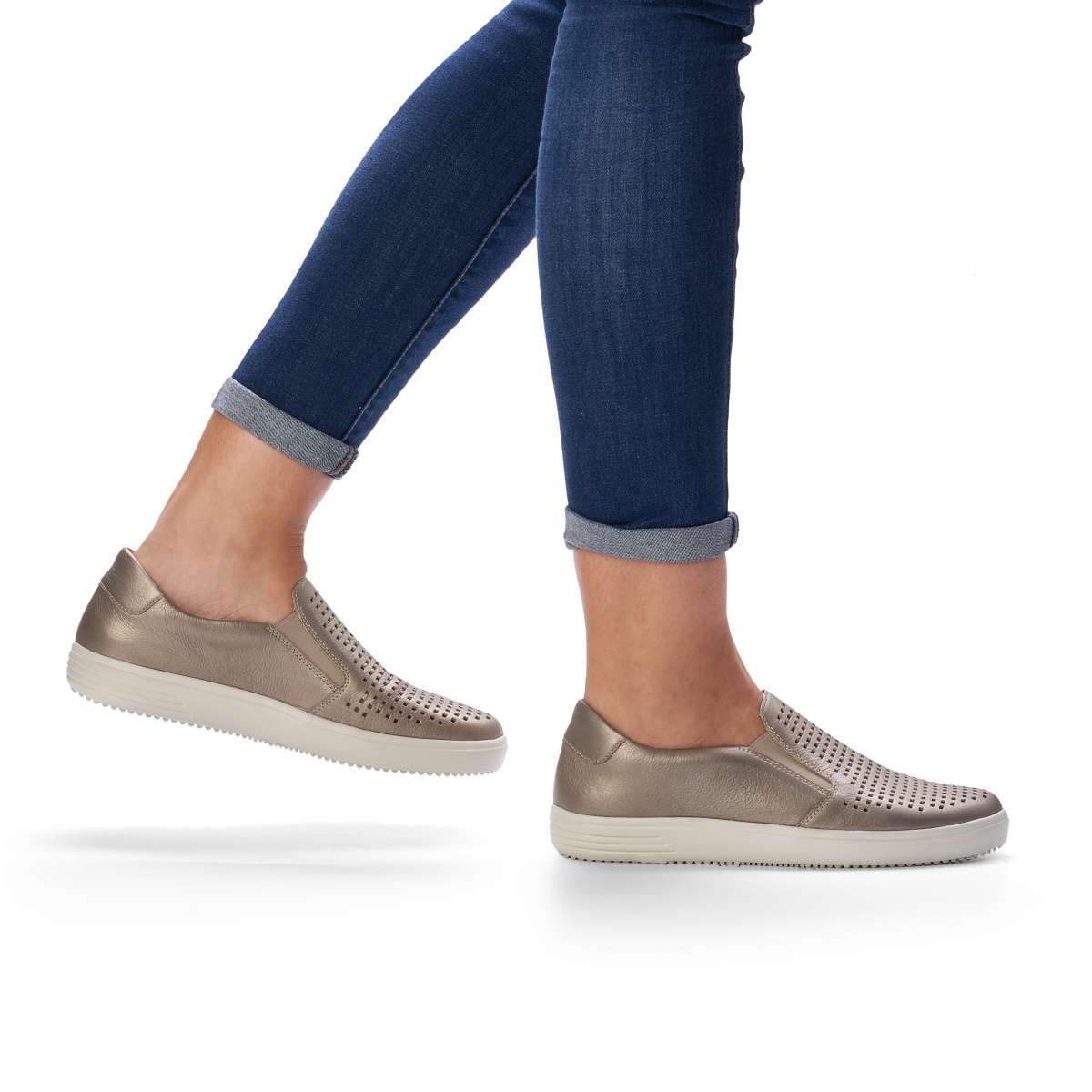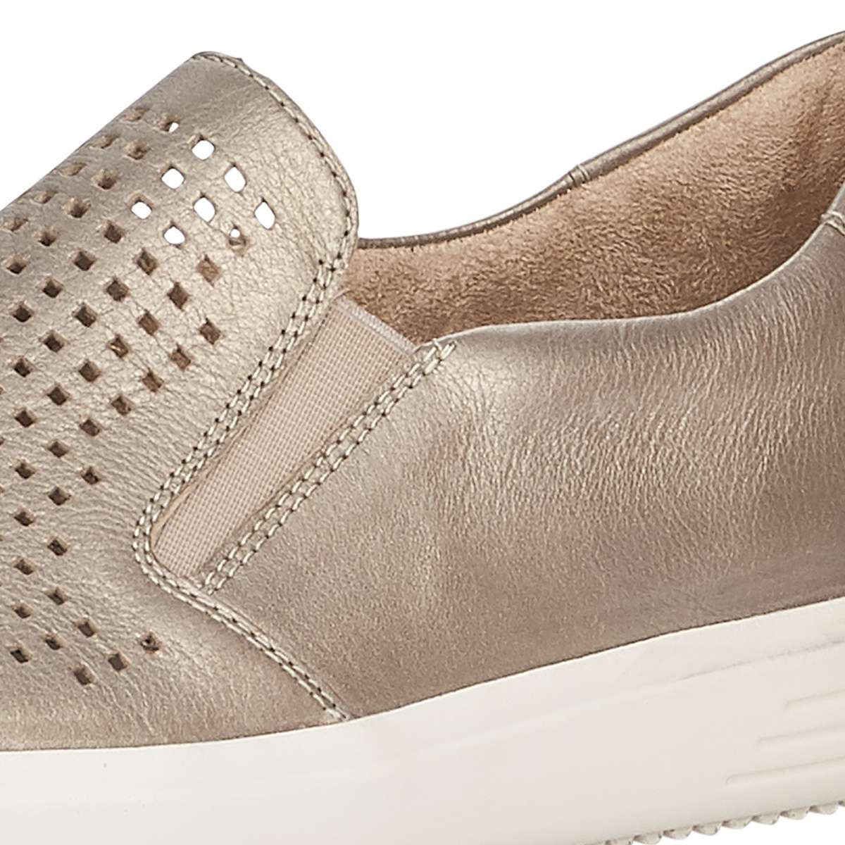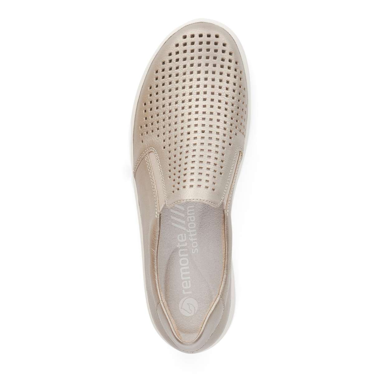 Dámské mokasíny od značky REMONTE (vyšší řada značky RIEKER) ve stylu “slip on“ s perforací svršku v krásné bronzové barvě. Boty jsou vybaveny pružnými gumičkami, díky kterým se Vám budou snadno nazouvat. Unikátní stélka z paměťové pěny zajistí celodenní komfort a podešev o výšce cca 3 cm je vyrobena z velmi kvalitního syntetického materiálu s logem značky. Ideální model na procházky jarní přírodou nebo parkem.
