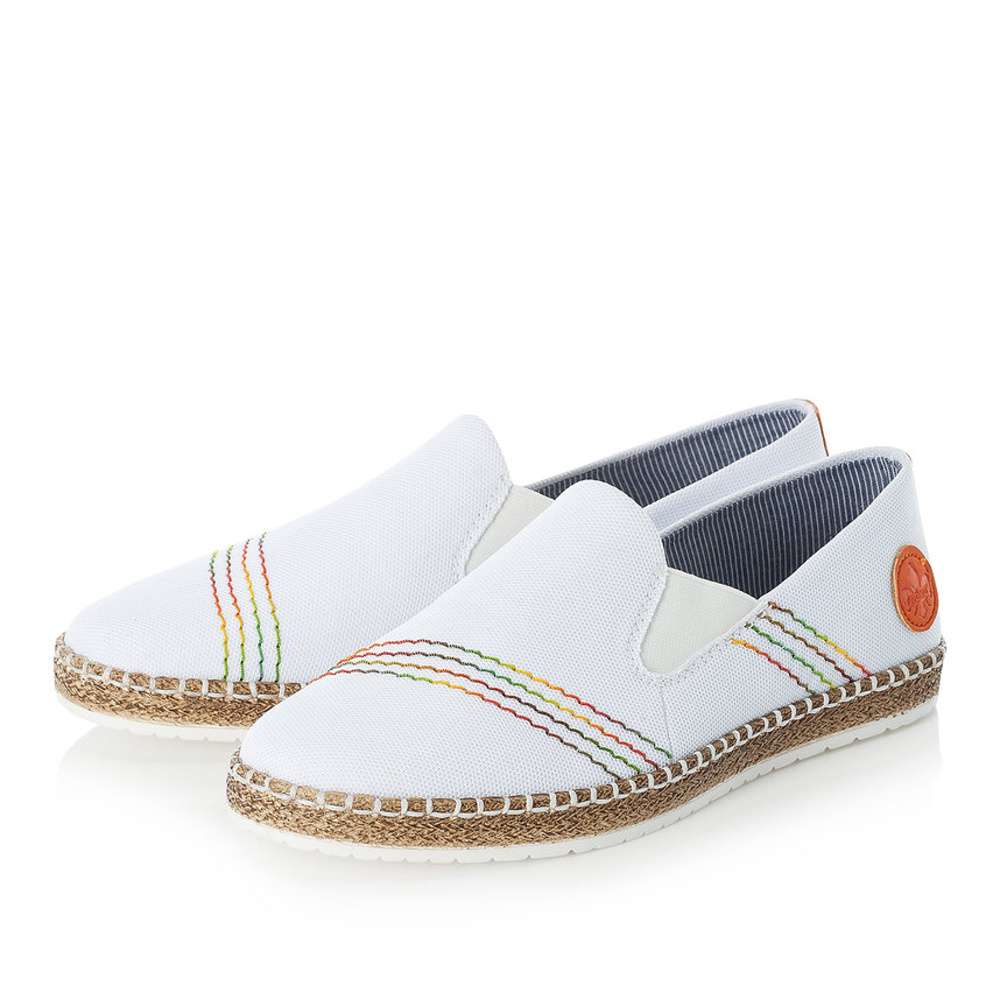Stylové dámské mokasíny v bílé barvě jsou výjimečné díky barevným výšivkám. Kontrastní lemovaná podešev dodává ten správný šmrnc. Pro snadnější obouvání jsou po stranách obuvi všité pružné gumičky, které jistě každá ráda ocení. S tímto kouskem skvěle doplníte jakékoliv Vaše outfity.
