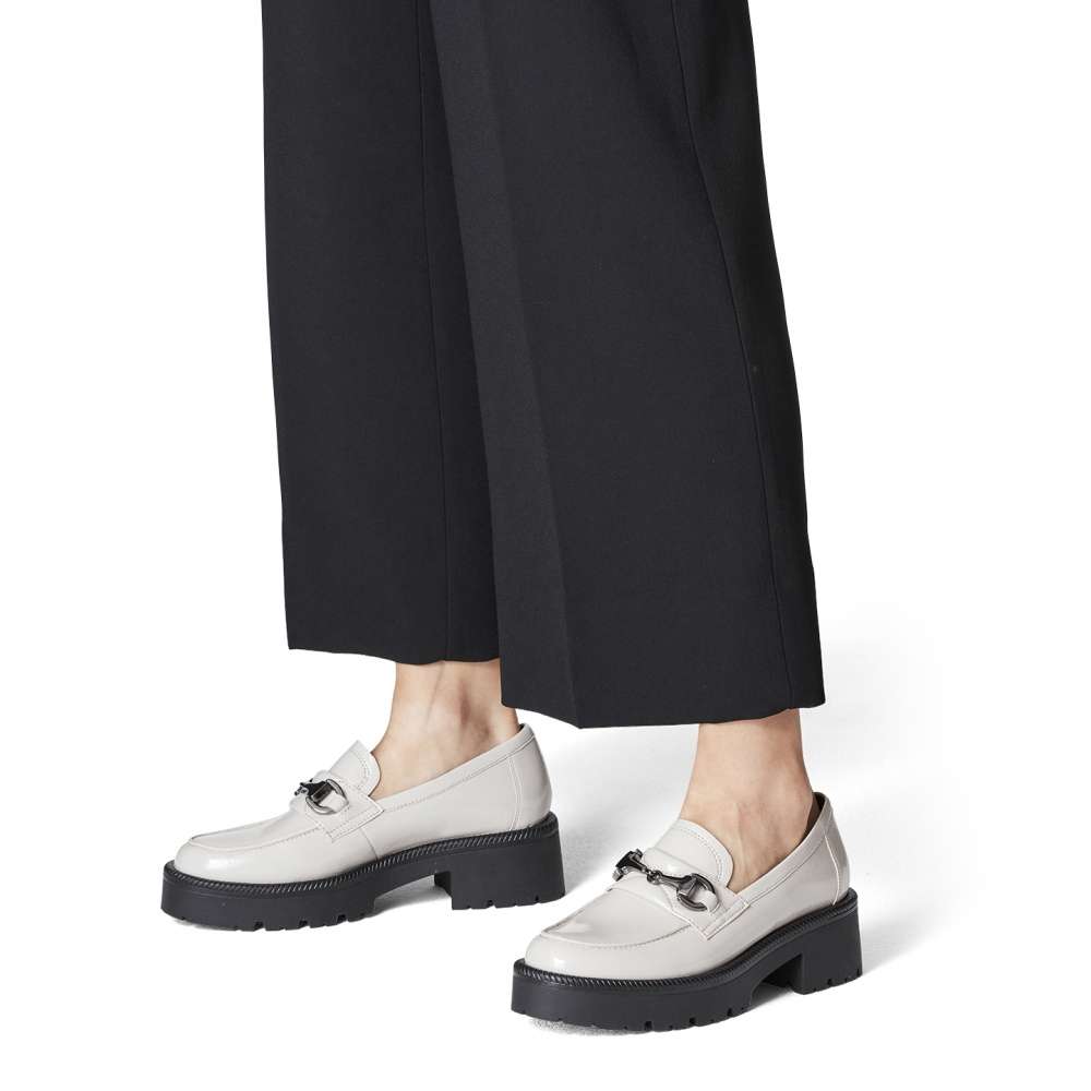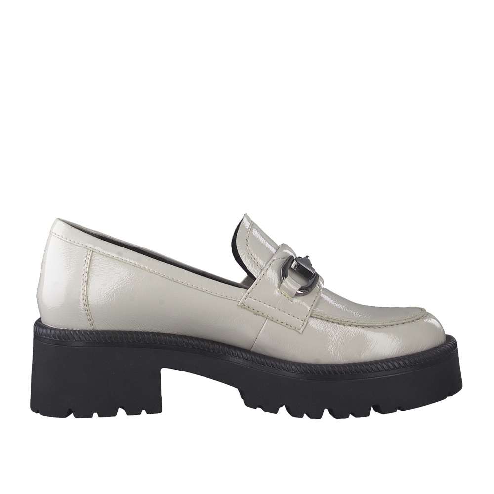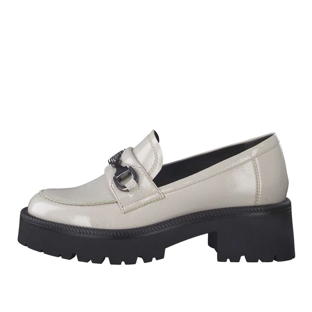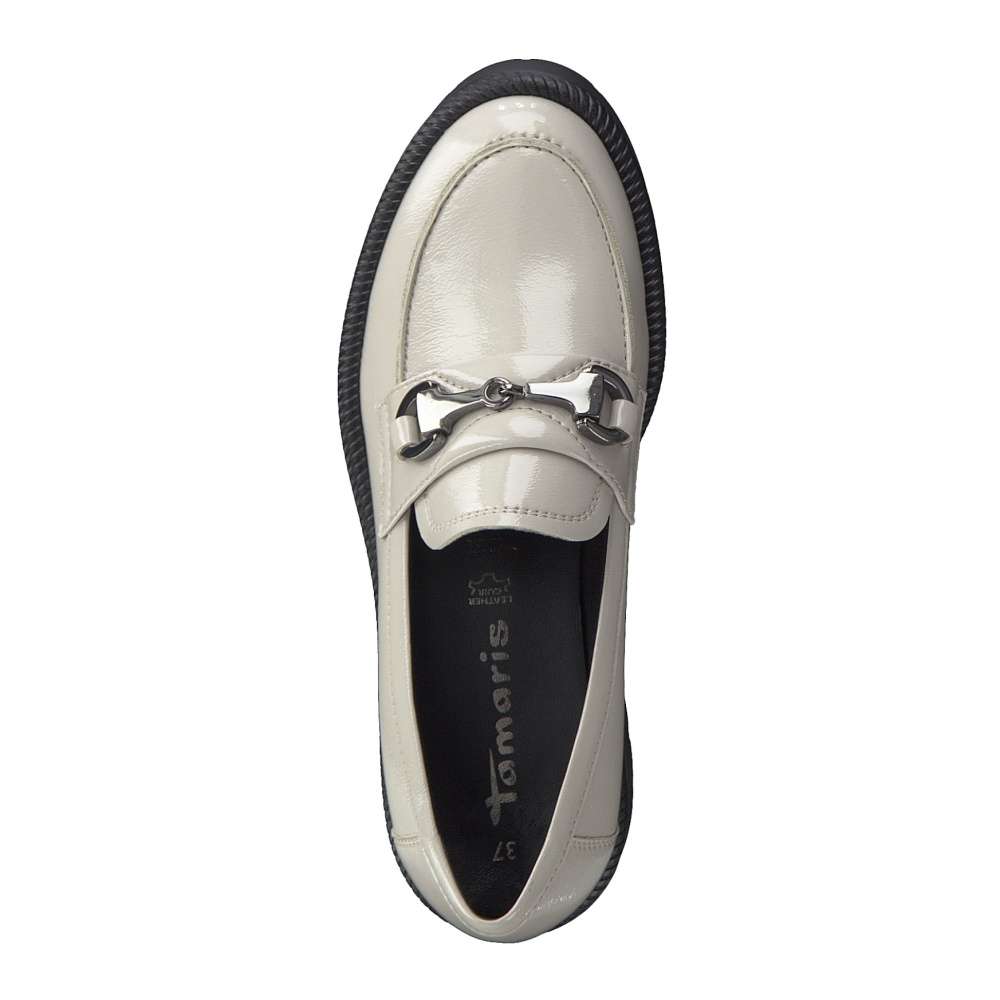 Extravagantní dámské mokasíny značky TAMARIS Vás uchvátí nevšední designovou aplikací na nártní části a jemným prošitím kolem celé boty. Kožený svršek dodá na eleganci. Kvalitní podešev, spolu s platformou o výšce 5,5 cm zajistí stabilní krok. Měkká stélka s technologií Touch-it, která se dokonale přizpůsobí tvaru Vaší nohy, Vám zajistí maximální komfort při chůzi. S tímto jedinečným kouskem oživíte nejeden outfit.