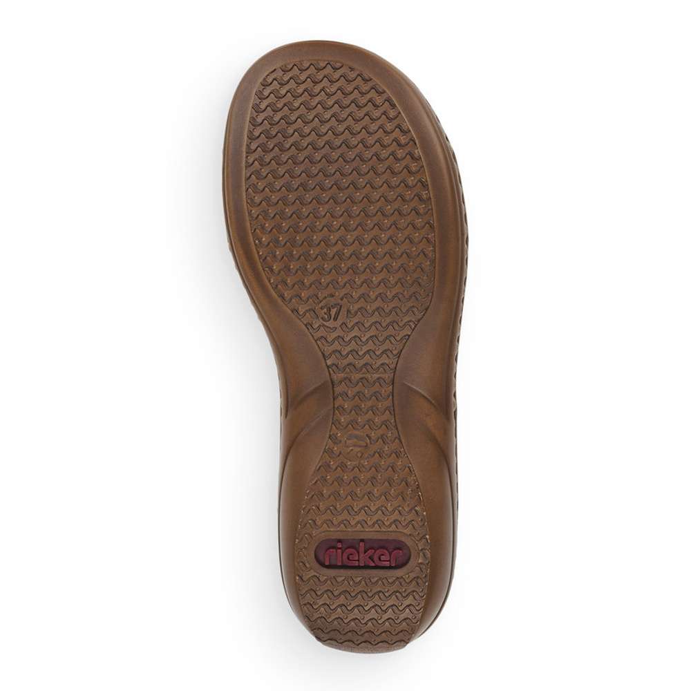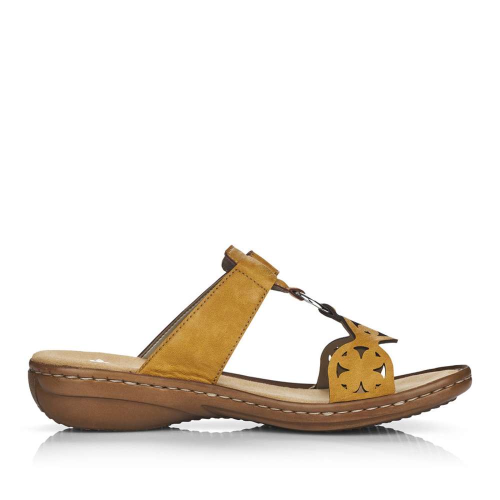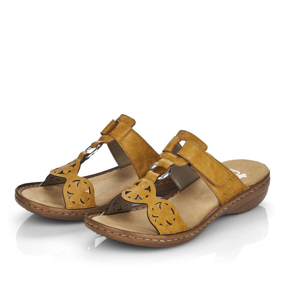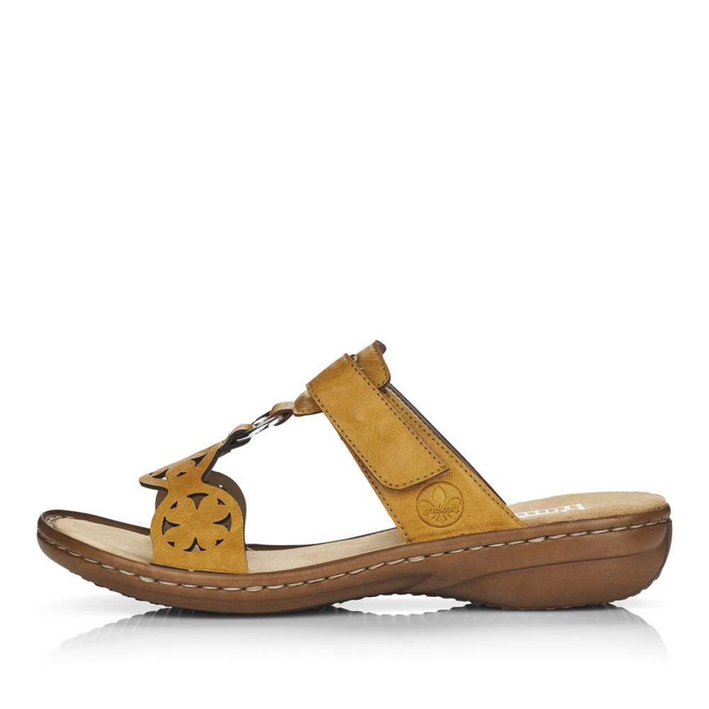Pohodlné dámské nazouváky značky RIEKER využijete ať už do práce nebo na procházku do města. Přední pásek je ozdoben perforací v podobě čtyřlístků a se zadním páskem je spojen kovovou aplikací. Nártový pásek je na suchý zip, tedy můžete si obuv nastavit přímo dle svých požadavků. Měkká stélka je vyrobena z příjemného materiálu a podešev svým provedením a výškou dolaďuje celkový vzhled k dokonalosti. Tento model nazouváků zaručeně doladí Vaše letní outfity k dokonalosti.