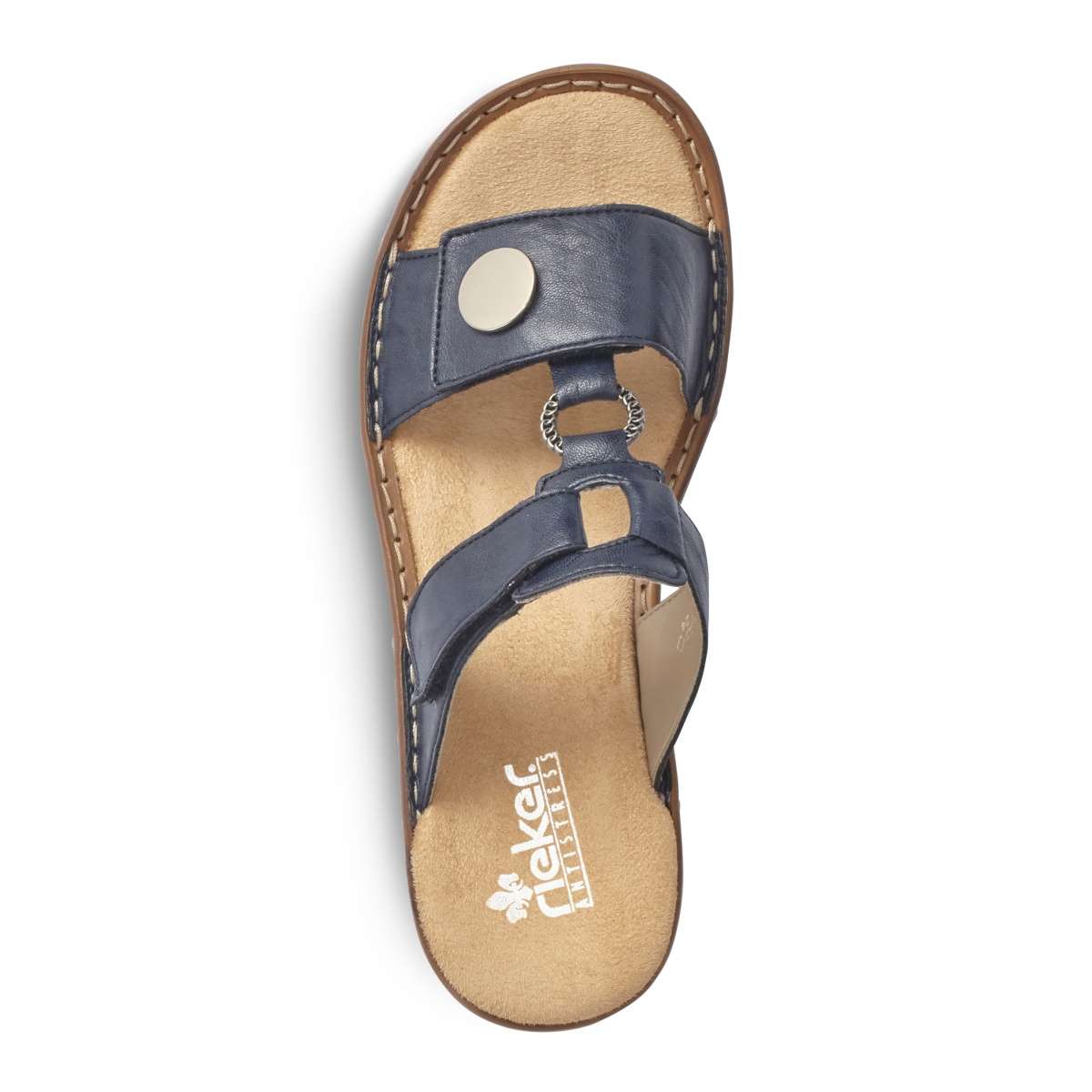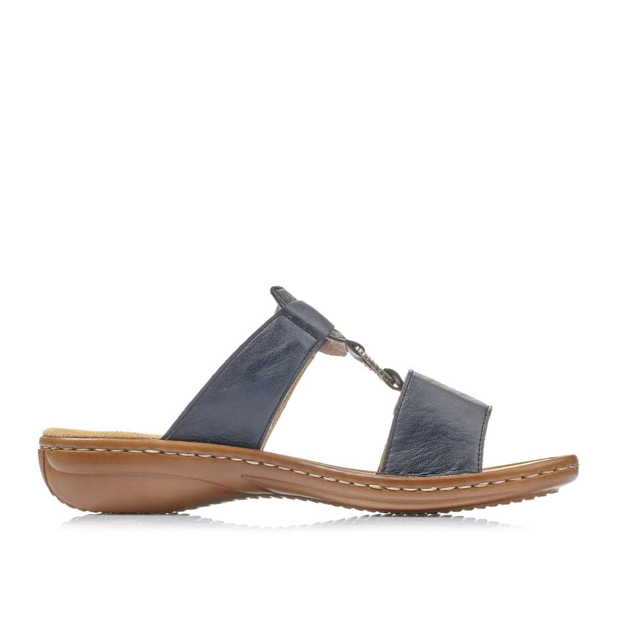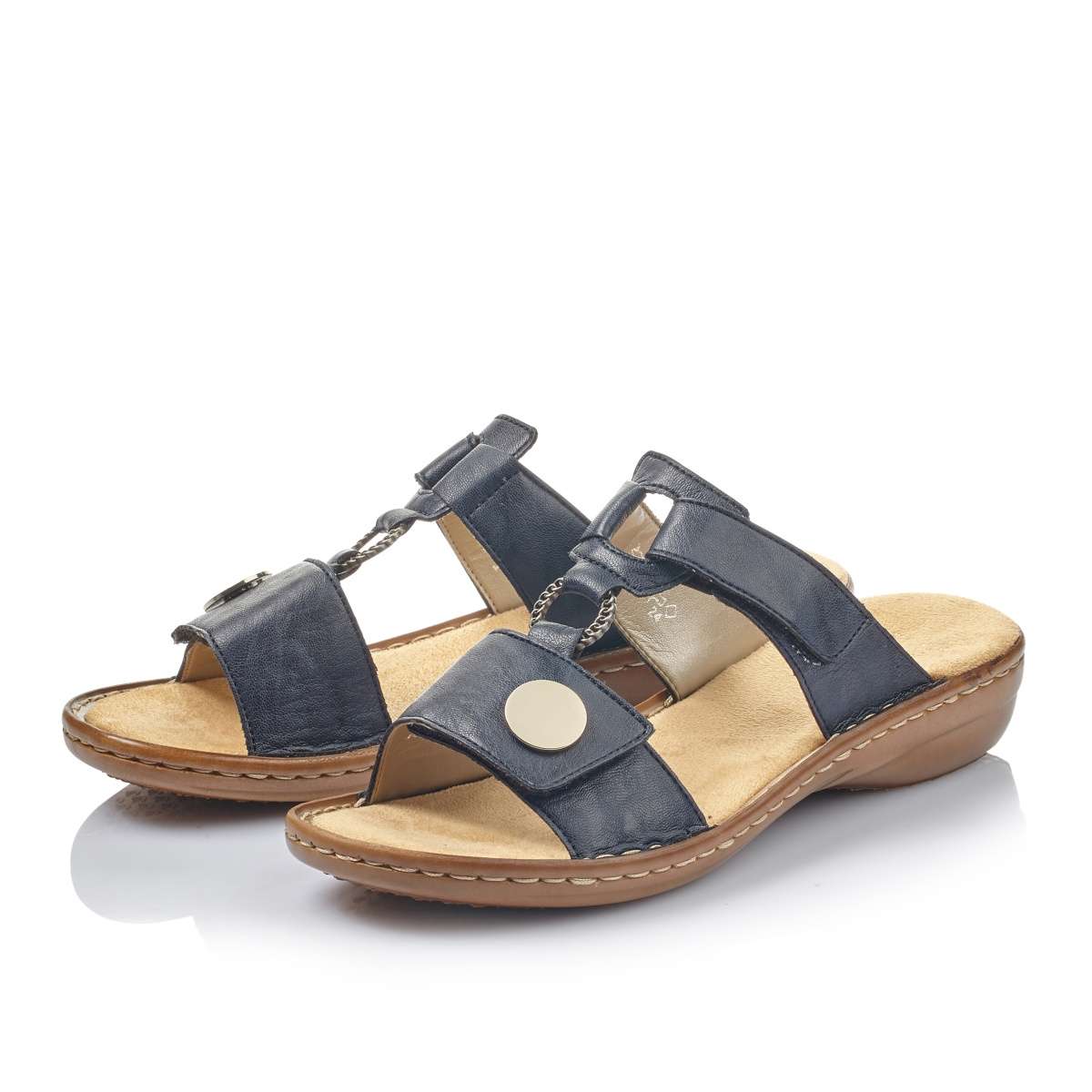 Pohodlné dámské nazouváky využijete ať už do práce nebo na procházku do města. Tmavě modrý svršek je zdoben kovovými detaily. Tento model si díky dvěma suchým zipům lehce přizpůsobíte na nohu. Technologie Antistress Vám v těchto botách zajistí komfort po celý den.