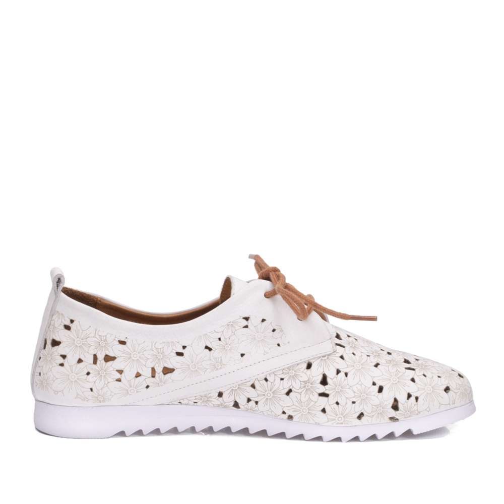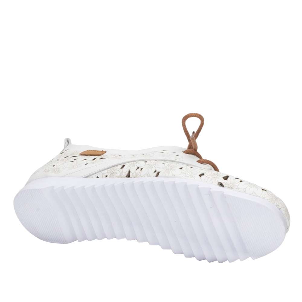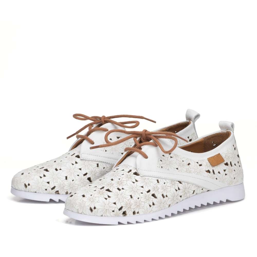 Krásné kožené polobotky značky IBERIUS, pro Vaše každodenní procházky. Svršek této botičky je perforovaný a zdobený květinami, tím zároveň dodává botě na romantickém vzhledu. Pro Vaše lepší a jednodušší nazouvání, Vám poslouží šněrování. Kožená, na došlap velmi příjemné stélka, bude každý Váš den dělat pohodový. Tato bota by neměla chybět ve Vašem botníku.