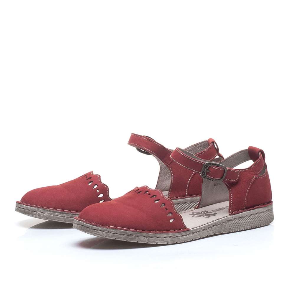 Dámská polobotka značky Josef Seibel je v přední části zdobena perforací ve tvaru kapek a zajímavým vlnkovým okrajem. Plná pata je po stranách perforovaná a obuv si dokonale přizpůsobíte díky pásku přes nárt s kovovou sponou. Celkový vzhled pak doplňuje nízká podešev a kontrastní prošívání po celém povrchu polobotek. Obuv bude skvěle vypadat jak ke kalhotám, kraťasům tak i třeba se sukní.