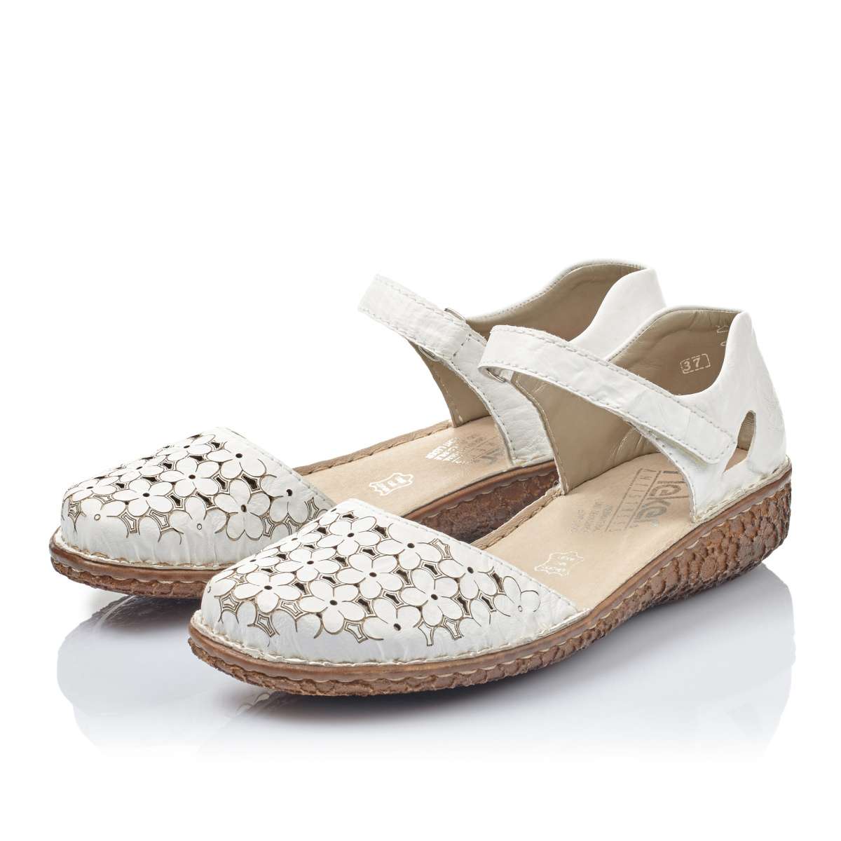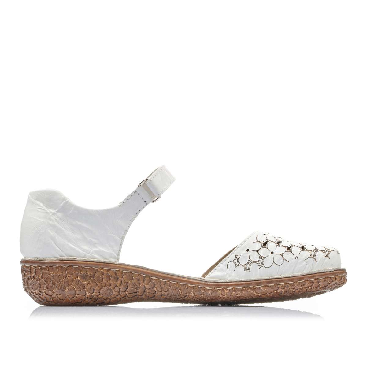 Dámské polobotky po stranách otevřené Vás zaručeně nadchnou svou zdobnou špičkou. Perforace a tlačený kytičkový vzor dělají vzhled této obuvi unikátním. Pro snadné a dokonalé přizpůsobení obuvi dle Vašich požadavků slouží pásek na suchý zip. Tyto polobotky budou skvěle vypadat jak se sukní, tak i s kalhotami.