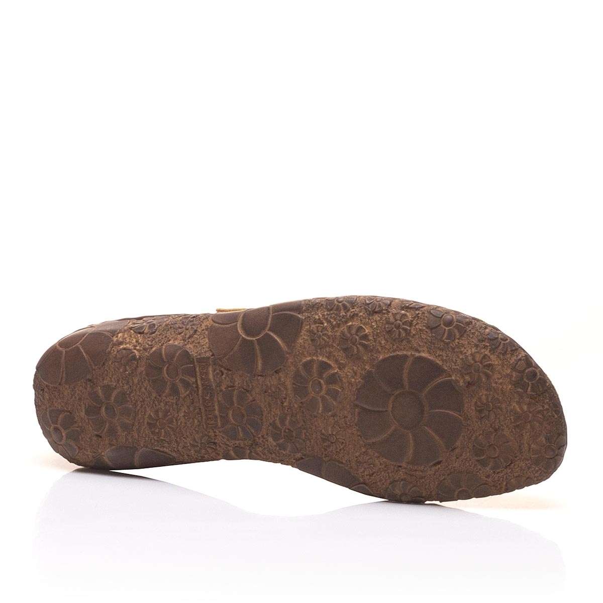 Dámská polobotka z dílny značky Josef Seibel je zdobná hned několika prvky. Hladký kožený svršek je poskládám z několika částí, které jsou k sobě spojeny kontrastním šitím. Obuv si dokonale přizpůsobíte dle svých požadavků páskem na suchý zip, který je spojen s páskem přes nárt. Celkový vzhled pak doplňuje nízká kvalitní podešev. Obuv bude skvěle vypadat jak ke kalhotám, kraťasům tak i třeba se sukní.
