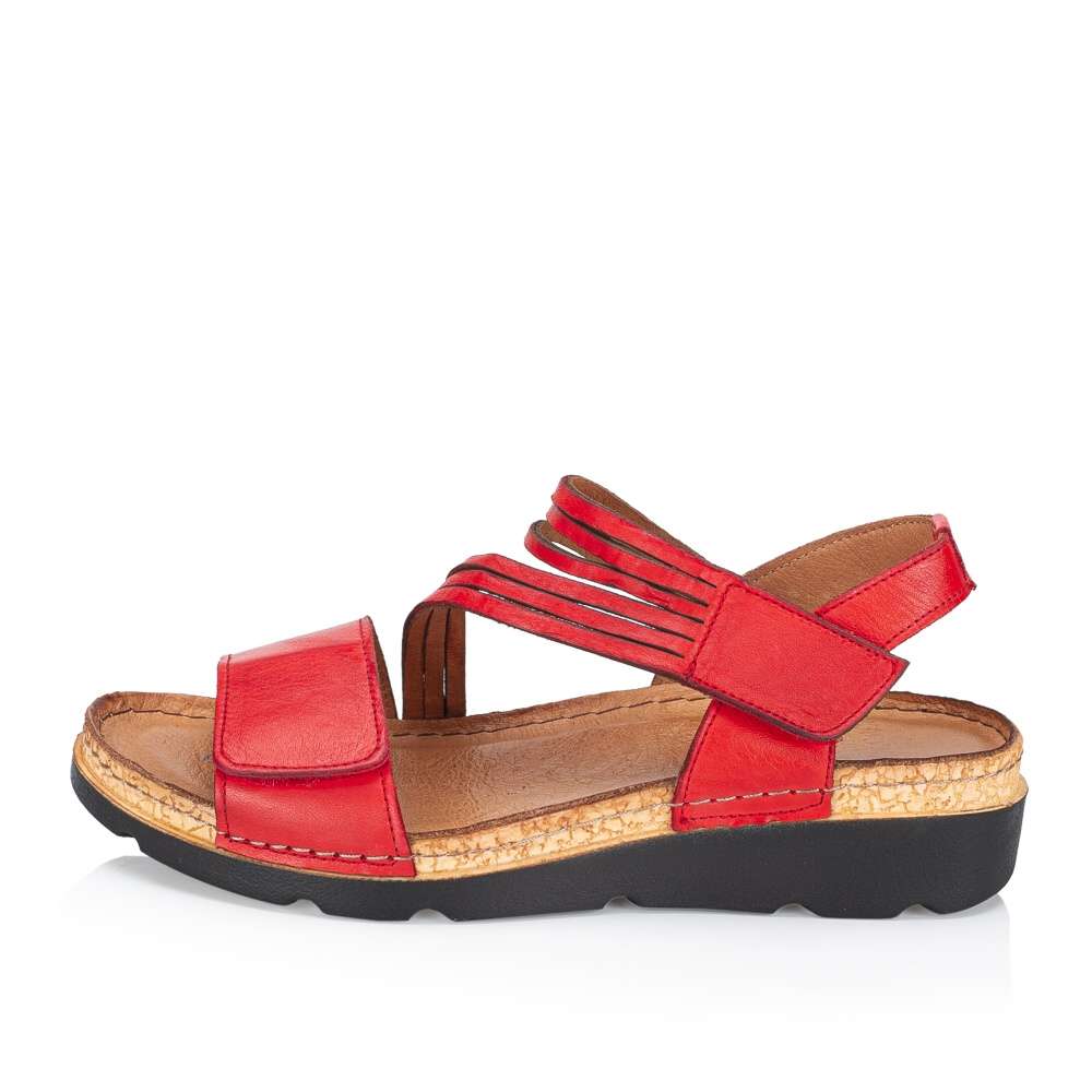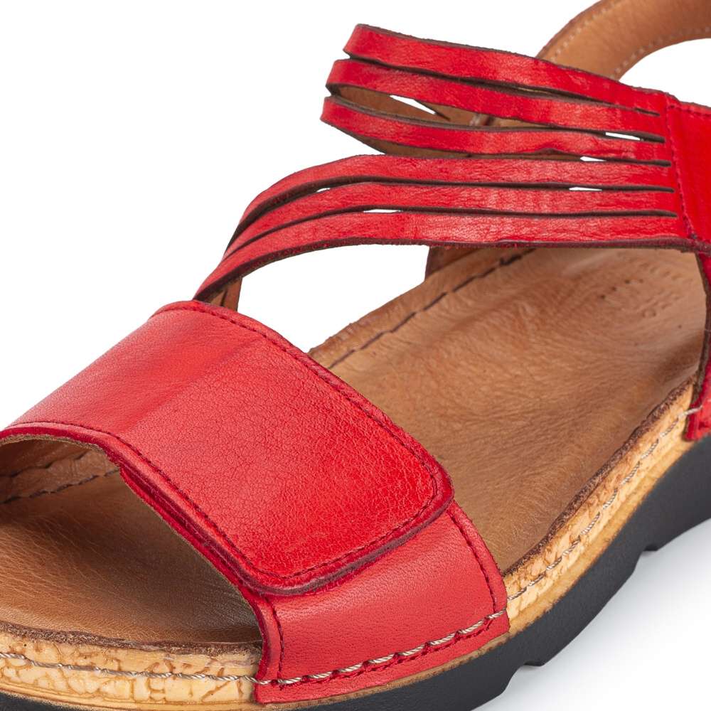 Tyto výrazné červené kožené sandály od značky IBERIUS jsou perfektním spojením stylu a pohodlí. Svrchní část je tvořena dvěma nastavitelnými pásky se suchými zipy a tenkými pásky přes nárt, které umožňují perfektní přizpůsobení a pevné uchycení nohy. Vyšší podešev zajišťuje stabilitu při chůzi a měkká kožená stélka poskytuje dokonalý komfort po celý den. Tyto sandály jsou ideální volbou pro ty, kteří chtějí vyjádřit svůj odvážný a stylový styl, ať už jdou do města, na procházku nebo na večerní setkání s přáteli. Jsou to skvělý doplněk do letního šatníku pro každou příležitost.