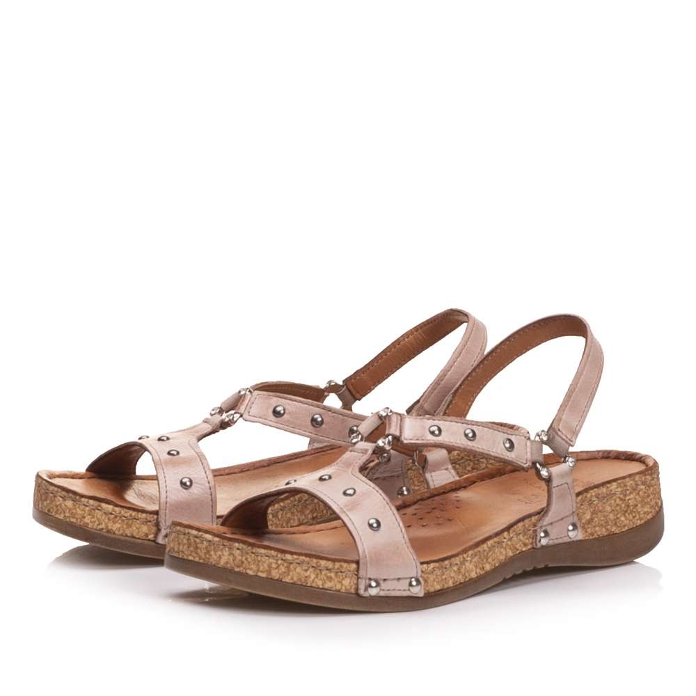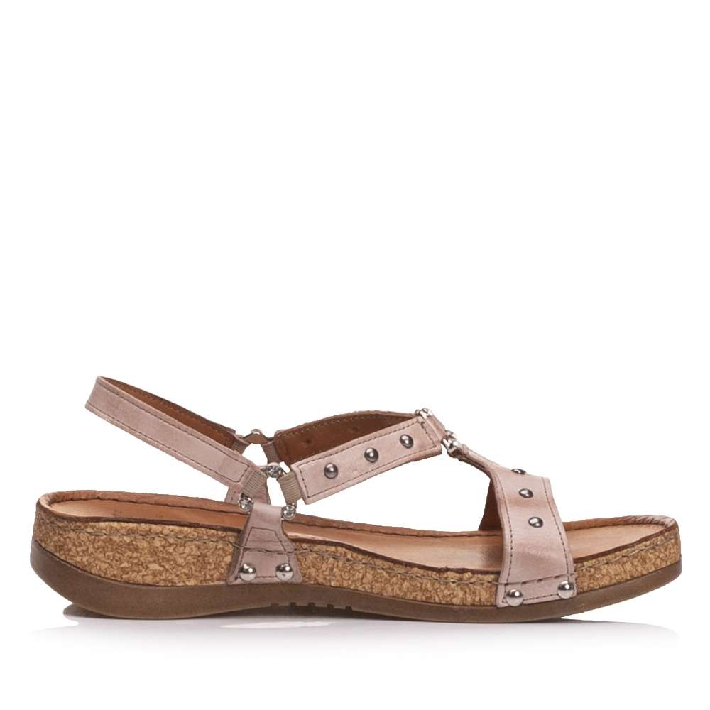 Zajímavé dámské kožené sandály značky IBERIUS budou tou správnou volbou. Kožený svršek je složen z několika pásků ozdobených stříbrnými aplikacemi. Pásky jsou spojeny pomocí ozdobných sponek a jsou na nich přišity i pružné gumičky pro snadné nazouvání. Stélka vyrobená z pravé kůže je pro každý Váš krok příjemně měkká a korková podešev doladí celkový vzhled k dokonalosti. Tento model je vhodný jak k pracovním povinnostem, tak k volnočasovým procházkám městem.