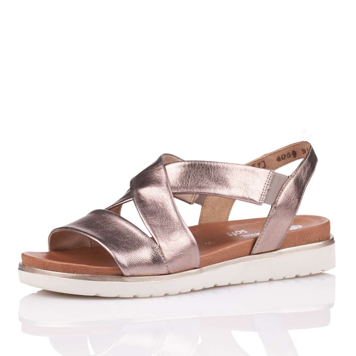Dámské sandály šité z pravé kůže v bronzové barvě jsou zdobené křížením předních pásků. Pásky přes nárt mají na obou stranách vsazené pružné gumičky pro snadné obutí. Tento model unosíte na procházku městem nebo na koupaliště.