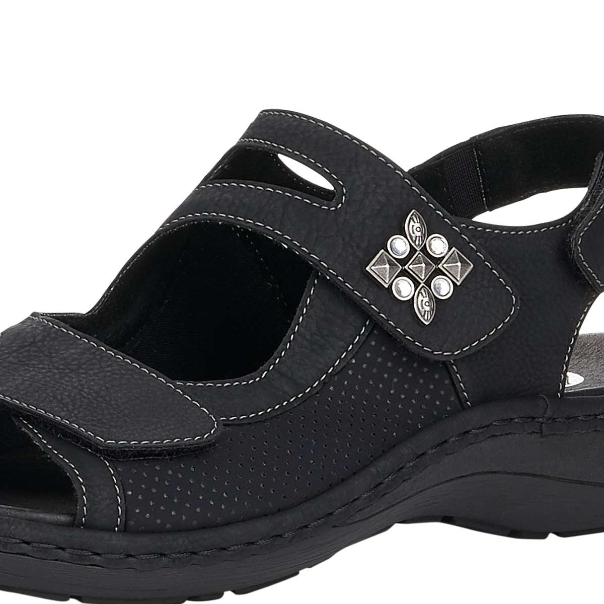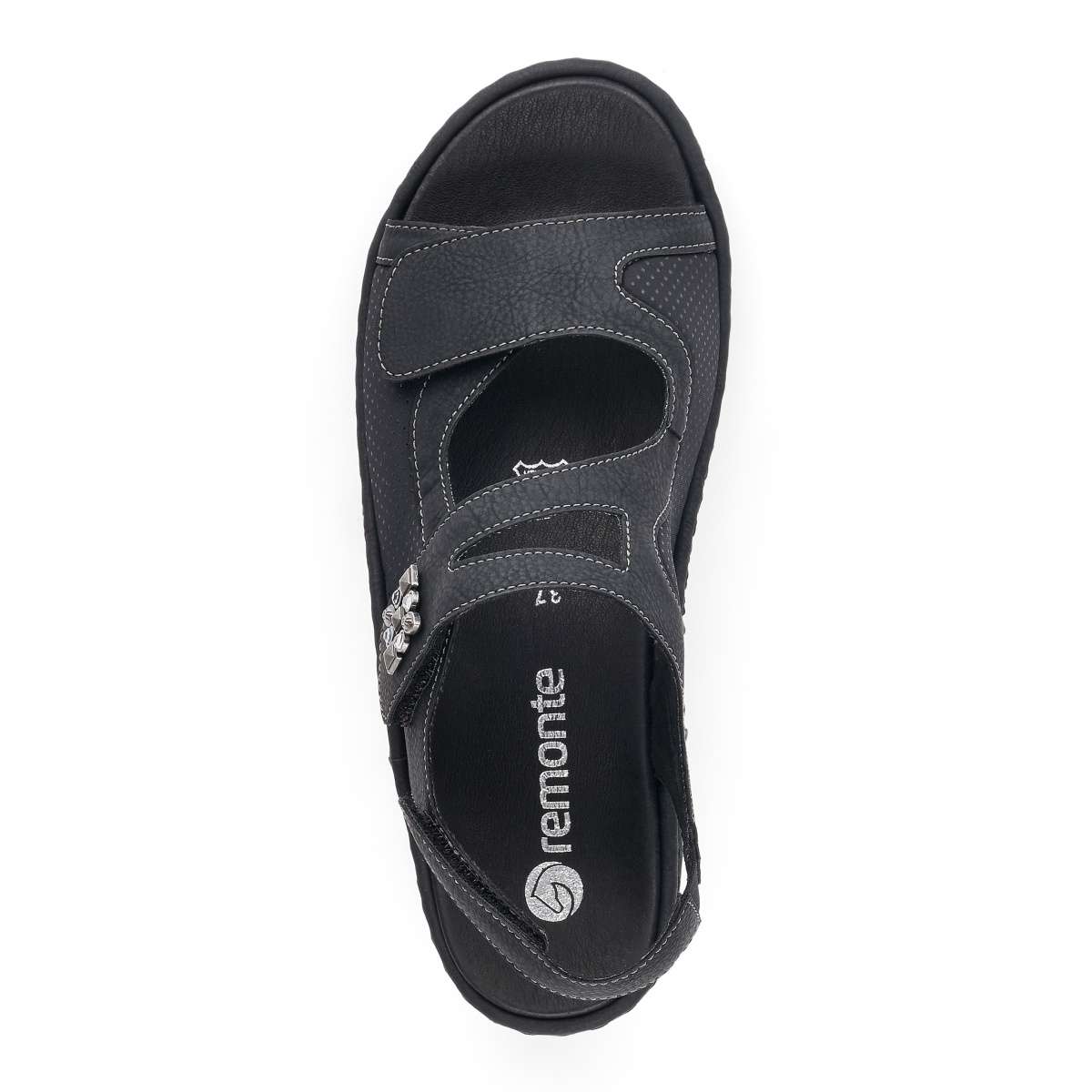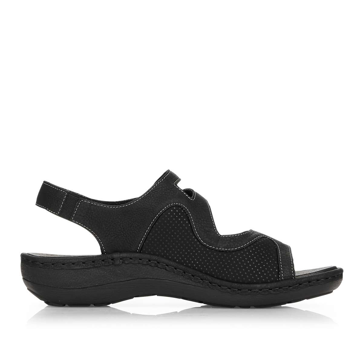 Pohodlné a zároveň krásné dámské sandály od značky Remonte (vyšší řada značky Rieker) jsou výrazné především díky zdobení v bočních částech. Tři pásky na suchý zip Vám zaručí, že se obuv dokonale přizpůsobí Vašemu chodidlu, navíc patní pásek má všitou gumičku, proto je dostatečně pružný. Tento model oceníte ke každodennímu nošení jak do práce, tak i na procházky městem. Stélka je vyjímatelná a příjemně měkká, zajistí Vám maximální pohodlí po celý den. Podešev s decentním vzorem je v nejvyšším bodě vysoká cca 1,5 cm a postará se o Vaše pohodlí na každém kroku.