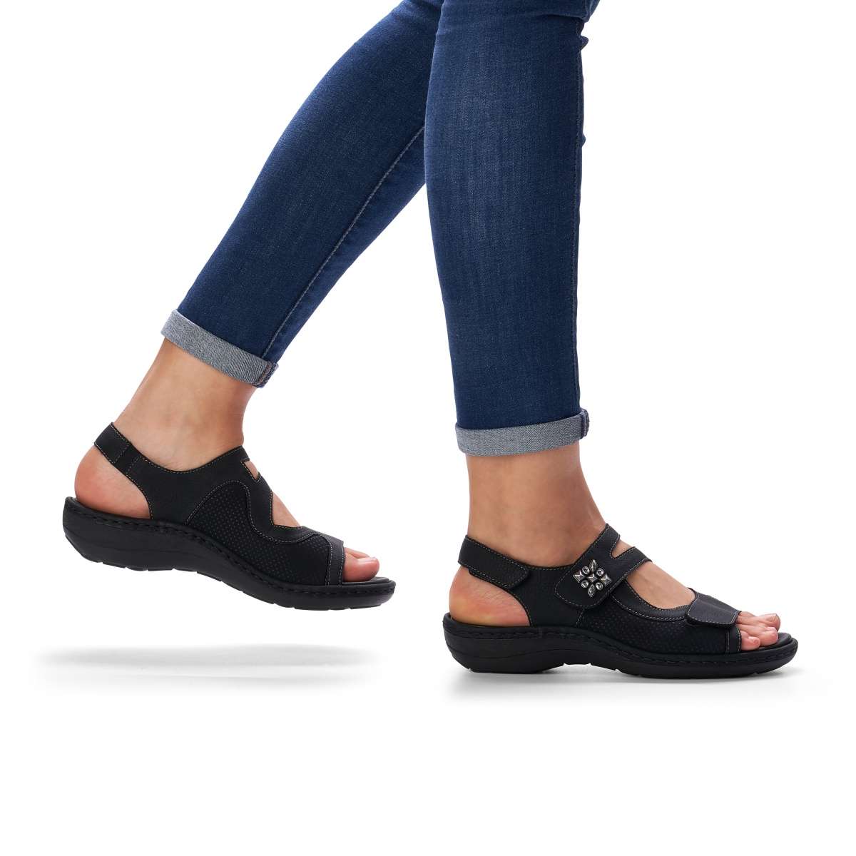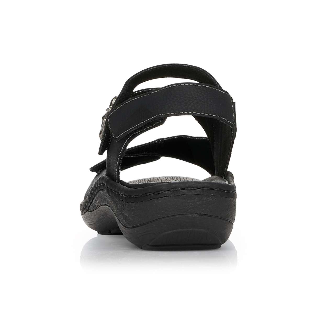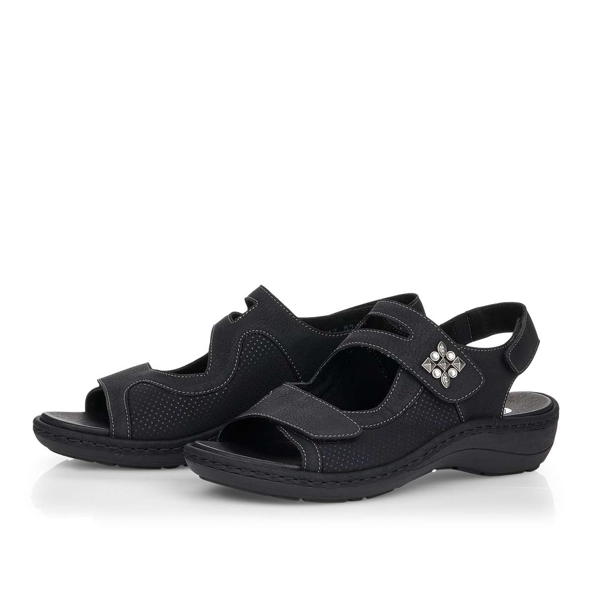 Pohodlné a zároveň krásné dámské sandály od značky Remonte (vyšší řada značky Rieker) jsou výrazné především díky zdobení v bočních částech. Tři pásky na suchý zip Vám zaručí, že se obuv dokonale přizpůsobí Vašemu chodidlu, navíc patní pásek má všitou gumičku, proto je dostatečně pružný. Tento model oceníte ke každodennímu nošení jak do práce, tak i na procházky městem. Stélka je vyjímatelná a příjemně měkká, zajistí Vám maximální pohodlí po celý den. Podešev s decentním vzorem je v nejvyšším bodě vysoká cca 1,5 cm a postará se o Vaše pohodlí na každém kroku.