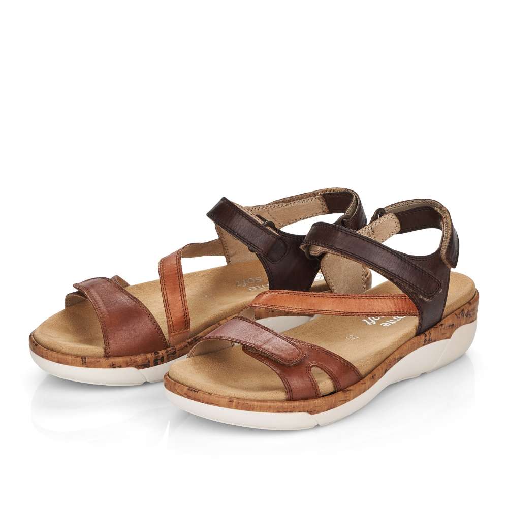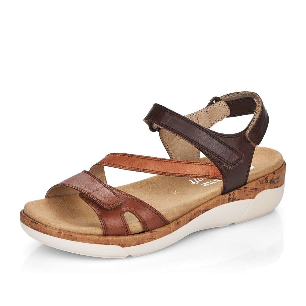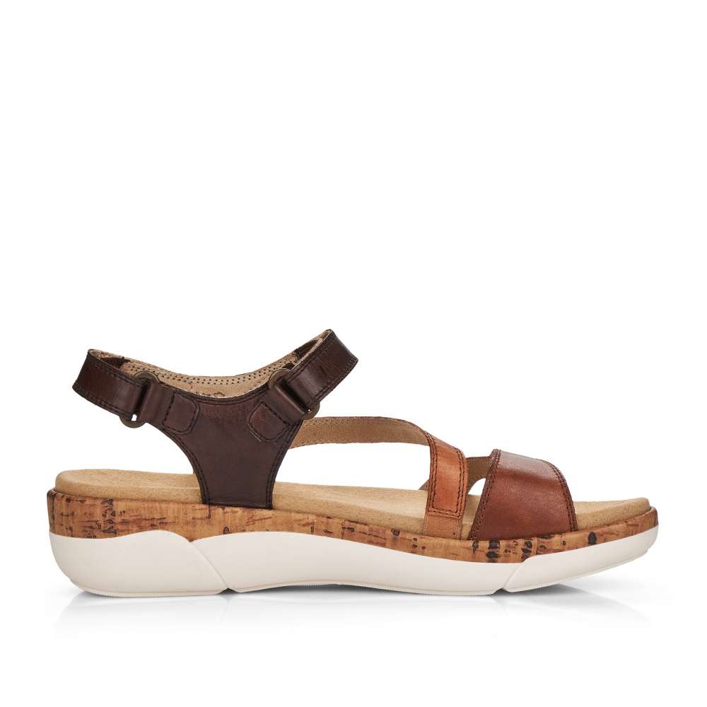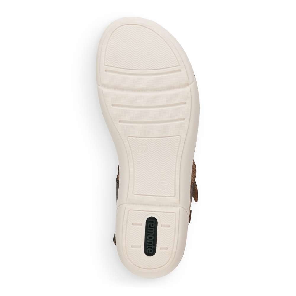 Obuv REMONTE – jedná se o vyšší řadu značky RIEKER, tato obuv se vyznačuje vynikající kombinací svrchních materiálů. Tento model sandálků oceníte při celodenním nošení, díky jejich jednoduchému vzhledu. Pásky z pravé hladké kůže jsou jemně prošity a prakticky poskládány tak, aby dobře podrželi Vaši nohu na každém kroku. Přizpůsobit obuv si můžete snadno díky páskům se zapínáním na suchý zip. Stélka je vyrobena z unikátní paměťové pěny, která změkčuje každý Váš došlap, a navíc je vyjímatelná. Kvalitní syntetická podešev svým vzhledem dolaďuje obuv k dokonalosti. Tyto sandálky budou skvěle vypadat s letními šaty či sukněmi.