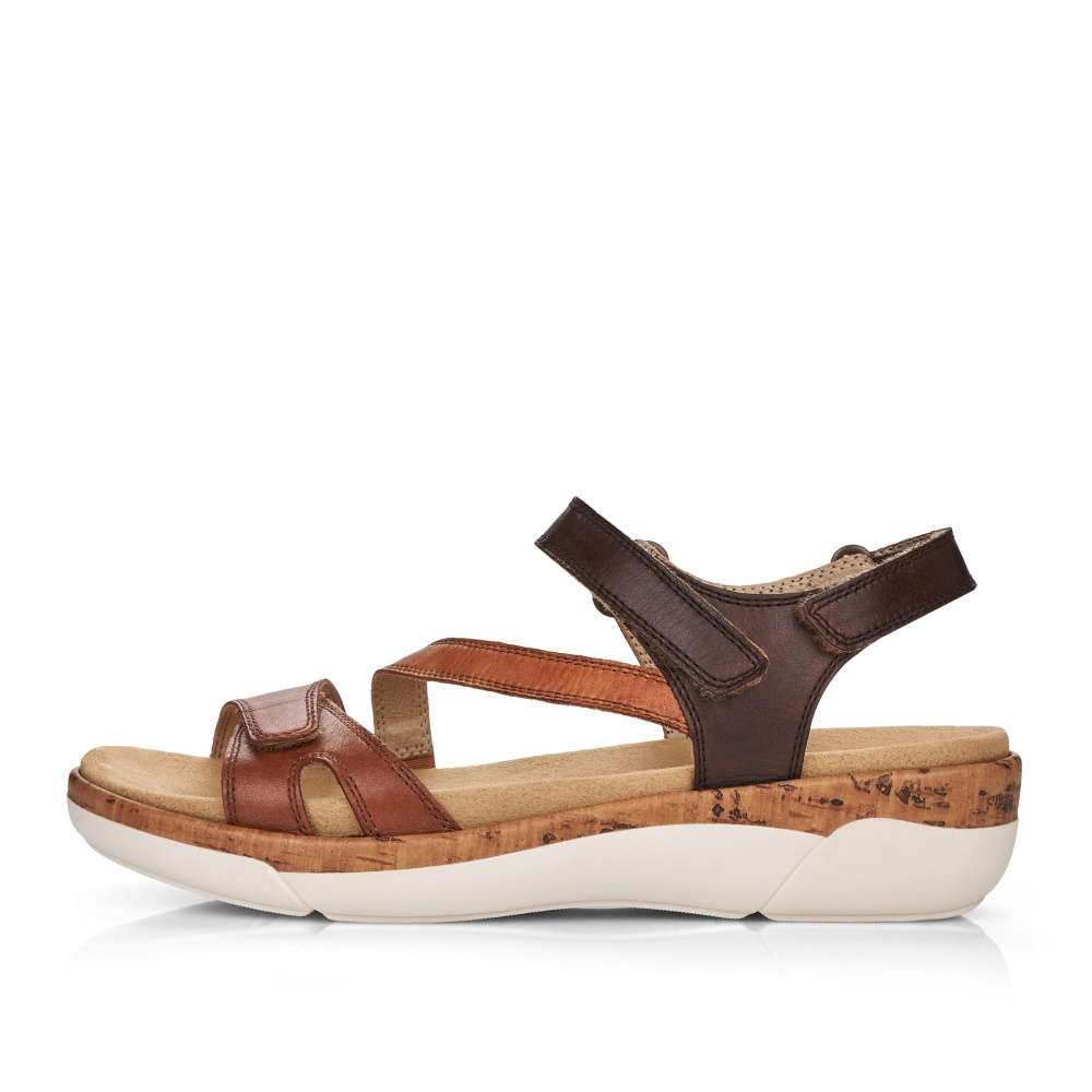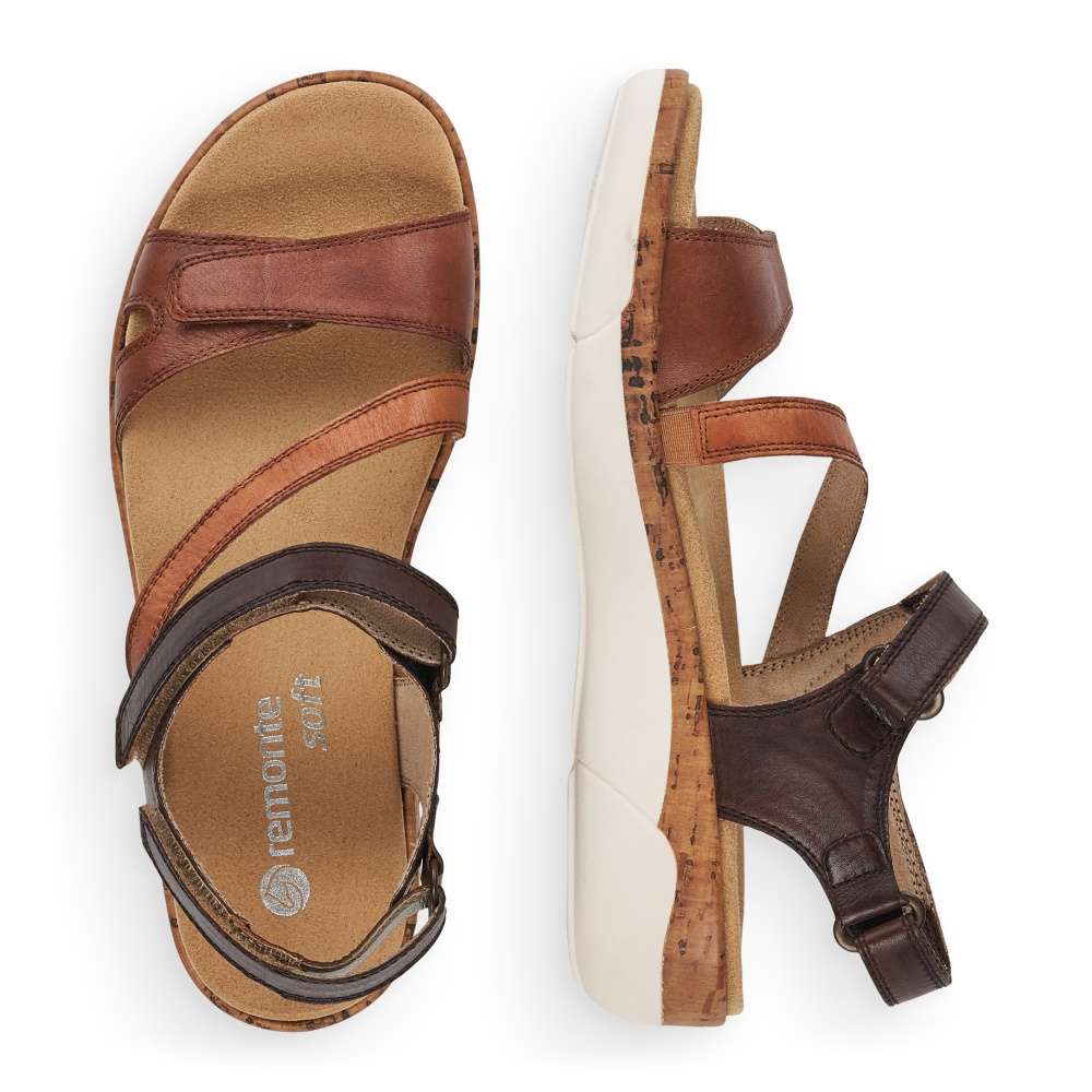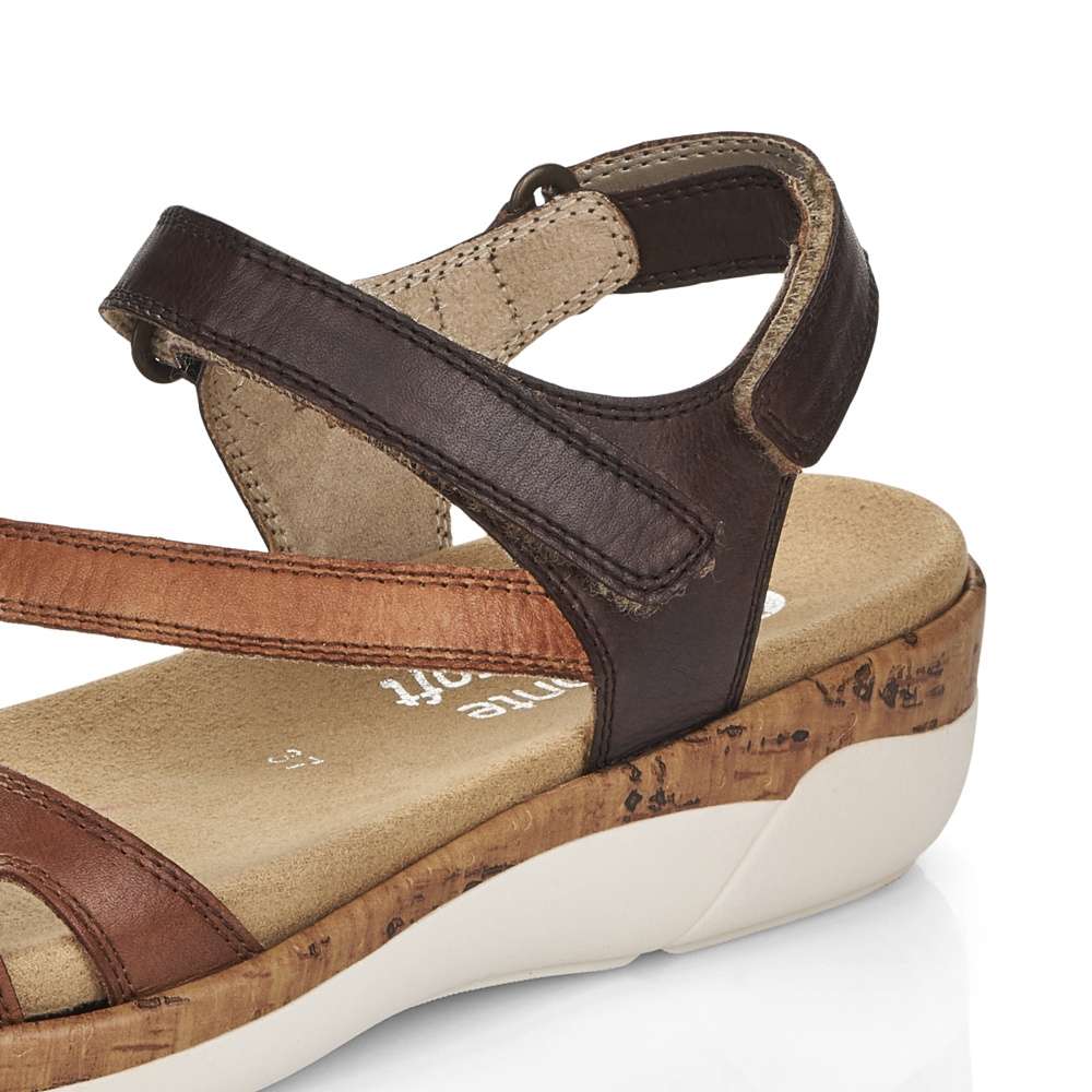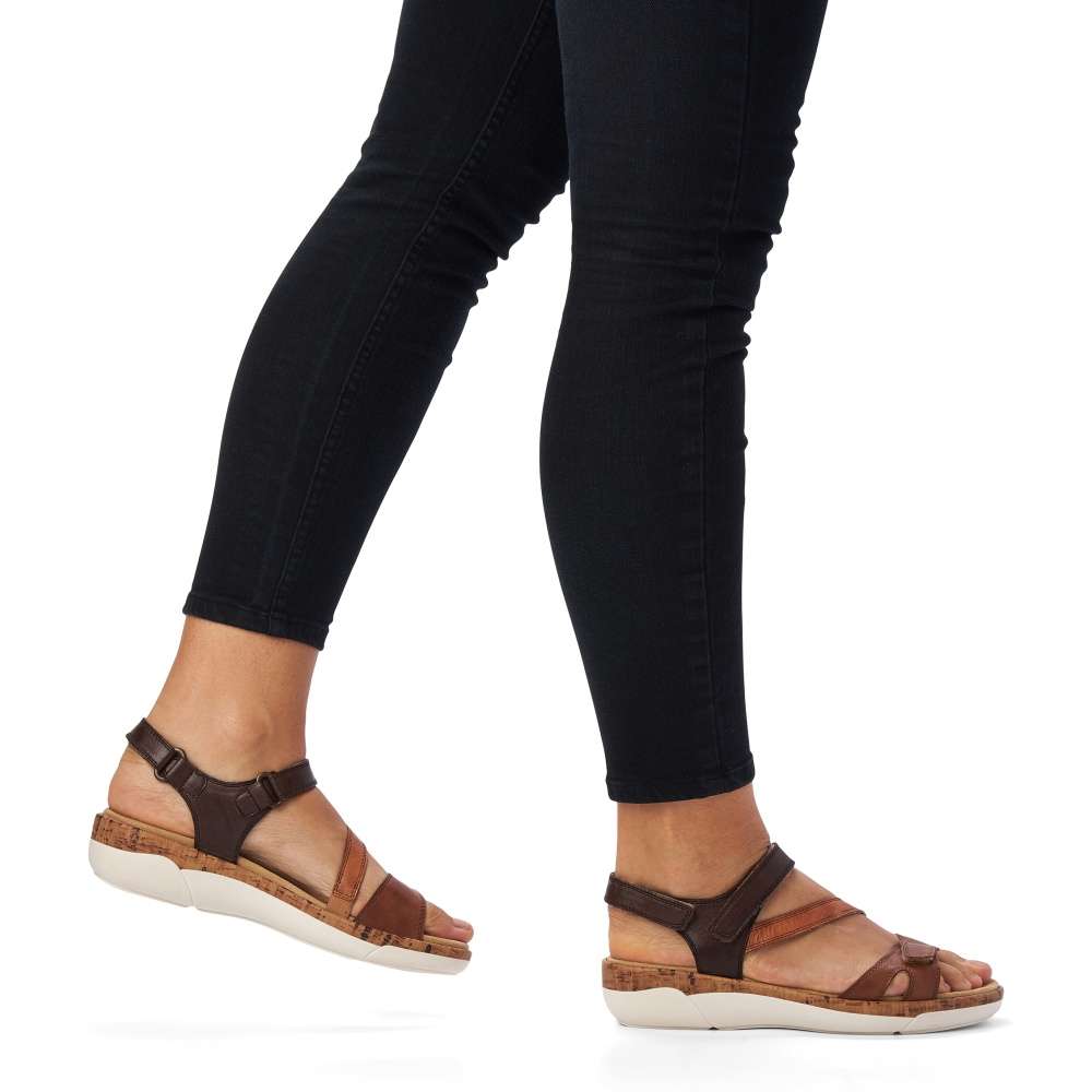 Obuv REMONTE – jedná se o vyšší řadu značky RIEKER, tato obuv se vyznačuje vynikající kombinací svrchních materiálů. Tento model sandálků oceníte při celodenním nošení, díky jejich jednoduchému vzhledu. Pásky z pravé hladké kůže jsou jemně prošity a prakticky poskládány tak, aby dobře podrželi Vaši nohu na každém kroku. Přizpůsobit obuv si můžete snadno díky páskům se zapínáním na suchý zip. Stélka je vyrobena z unikátní paměťové pěny, která změkčuje každý Váš došlap, a navíc je vyjímatelná. Kvalitní syntetická podešev svým vzhledem dolaďuje obuv k dokonalosti. Tyto sandálky budou skvěle vypadat s letními šaty či sukněmi.