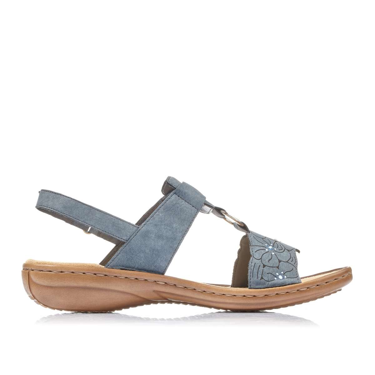 Krásné modré sandálky Rieker s páskami spojenými kovovým kroužkem, který dodává botě ten správný šmrnc. Zapínají se páskami na suchý zip, díky kterým si je utáhnete přesně podle Vašich představ. Měkká stélka zajistí celodenní komfort a podešev o výšce cca 3,5 cm je vyrobena z velmi kvalitního syntetického materiálu. S tímto nápaditým modelem budete za každé situace stylová.