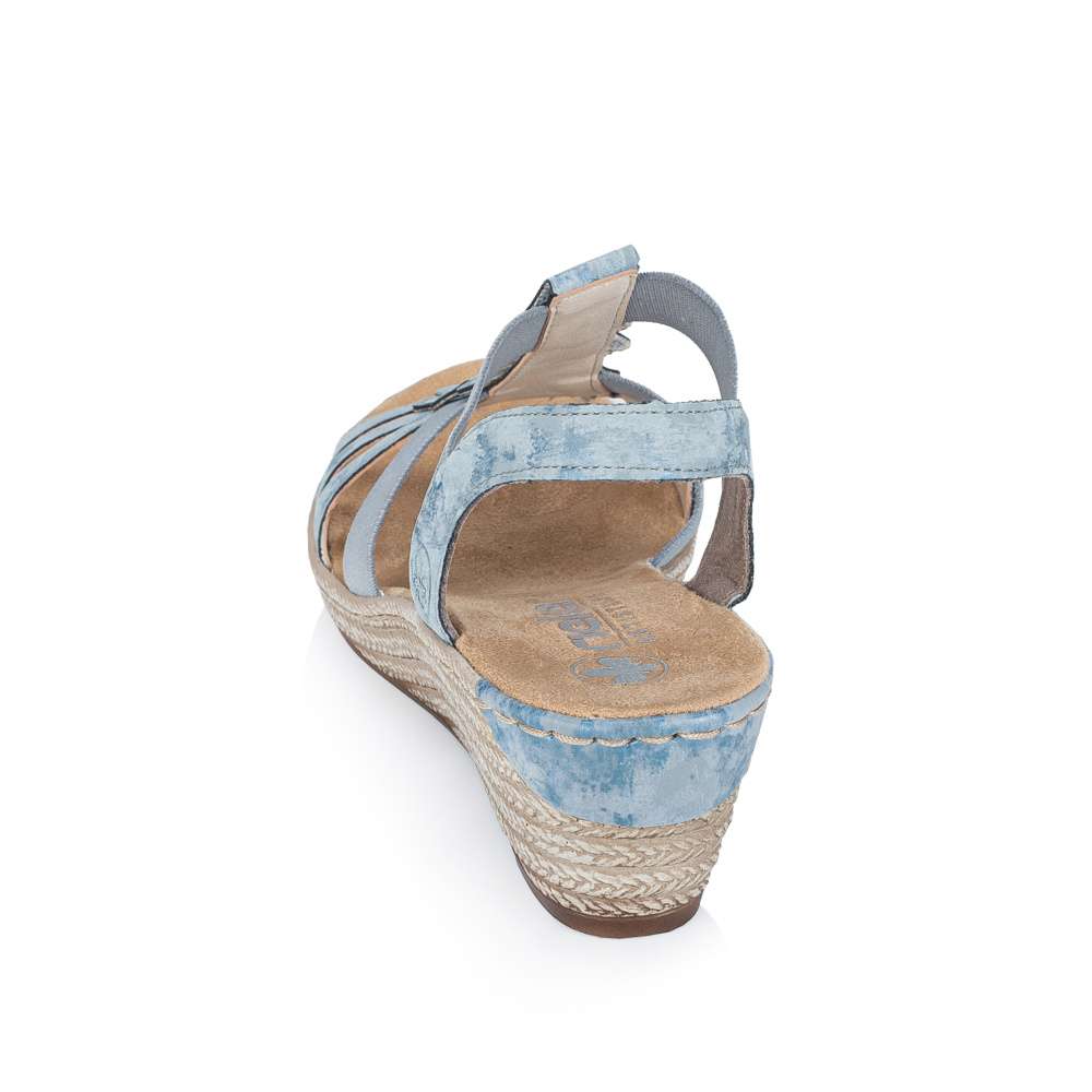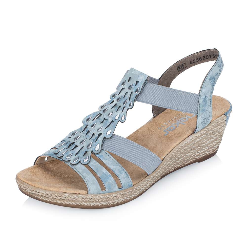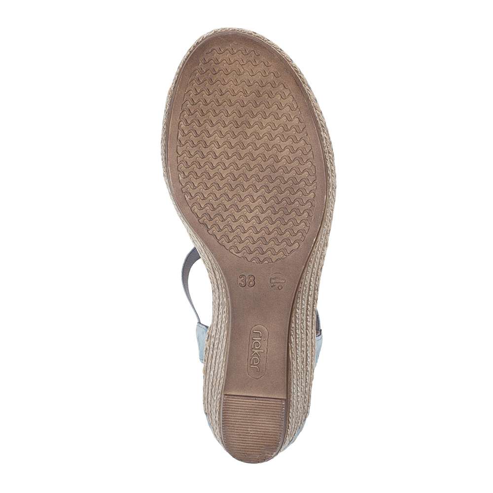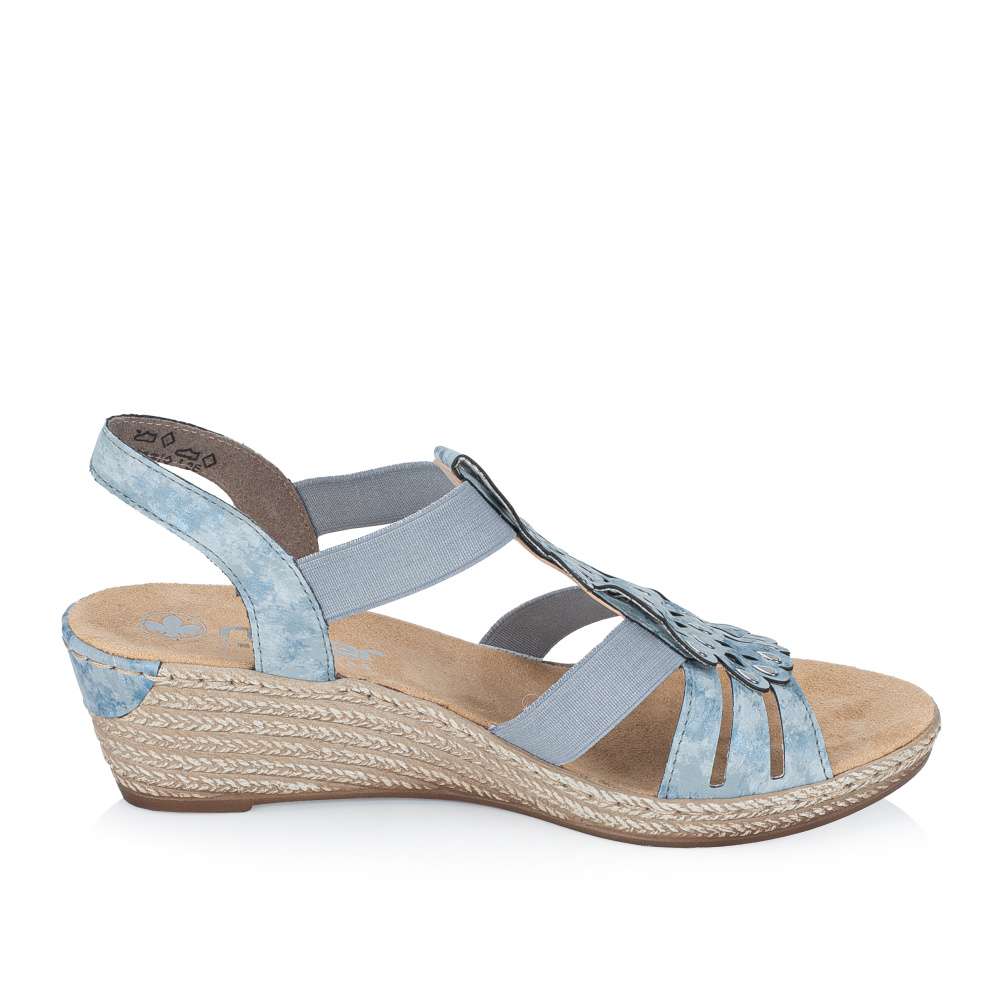 Tento výjimečný model sandálů značky RIEKER je ztělesněním ženského půvabu. Svršek je působivě poskládaný z pevných a pružných pásků doplněných jemnými odlesky, přičemž středový nártový pásek je zdoben jemnými stříbrnými detaily ve tvaru kapek, které podtrhují ženskost celkového vzhledu. Dva pružné boční řemínky zajišťují pohodlné a rychlé obouvání, zároveň se dokonale přizpůsobí tvaru chodidla a poskytují pocit jistoty při každém kroku. Měkká stélka z příjemného textilního materiálu a podešev s technologií tlumení nárazů zaručují maximální komfort každým krokem. Tento model je ideální volbou pro ženy, které hledají spojení noblesního vzhledu, pohodlí a kvality pro každodenní nošení i výjimečné příležitosti.