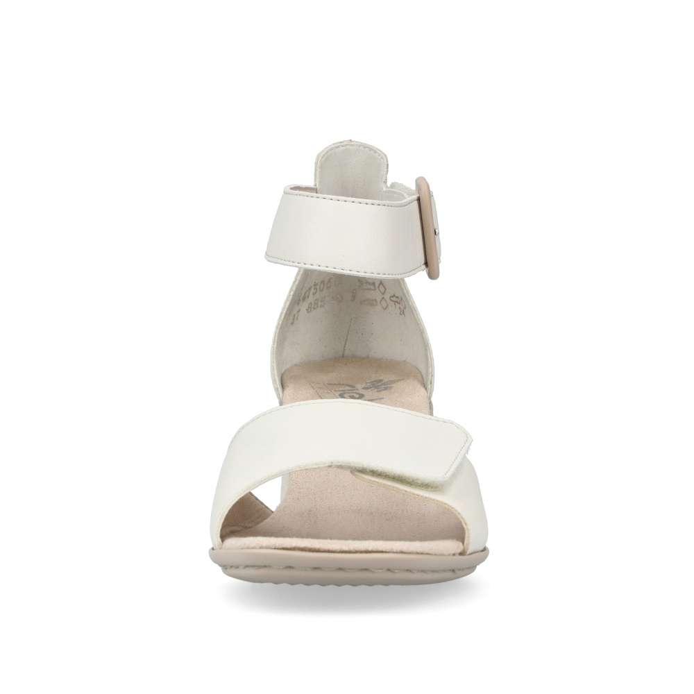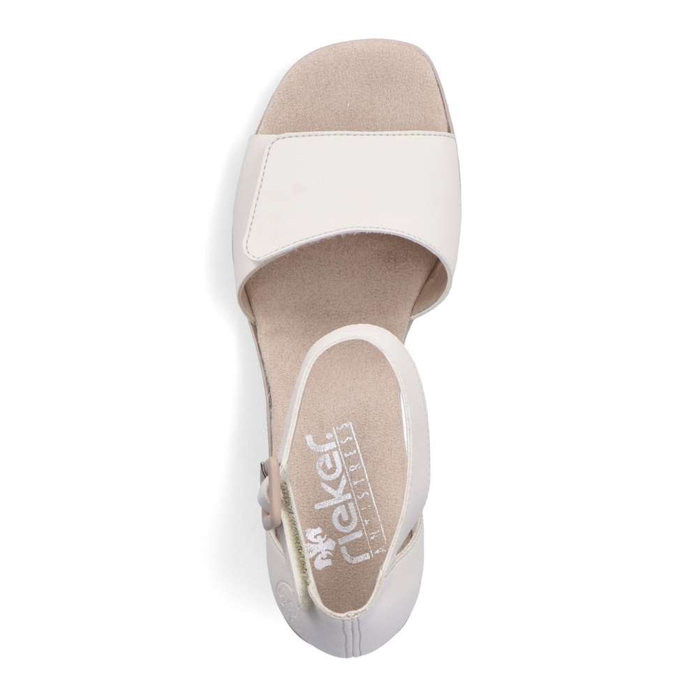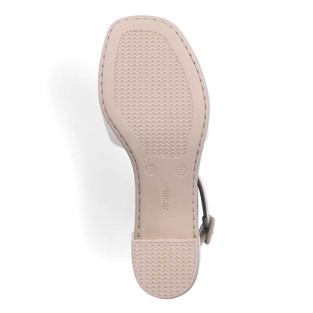 Elegantní dámské sandály značky RIEKER potěší každou z Vás svým šarmem a jednoduchostí. Širší pásky jsou pro snadné nastavení opatřeny suchým zipem, můžete si je upravit dle svých požadavků. Příjemně měkká stélka zajistí pohodlí a podešev s podpatkem doladí celkový vzhled obuvi k dokonalosti. Tento skvělý model bude vypadat nádherně s každou sukní i kalhotami při procházce či pochůzkách městem.