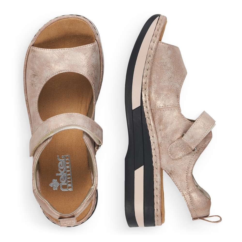 Tyto velmi zajímavé a originální sandálky Vás zaujmou na první pohled. Široké pásky se zapínáním na suchý zip Vám zaručí pohodlné nošení. Díky poutku v patní části si jednoduše pomůžete při obouvaní. Antistresová měkká stélka zajišťuje komfort při chůzi. Podešev zvýrazněná prošitím a proužky v barvě sandálku krásně dotváří styl těchto sandálků. Rozzářený den budete mít v těchto sandálkách.