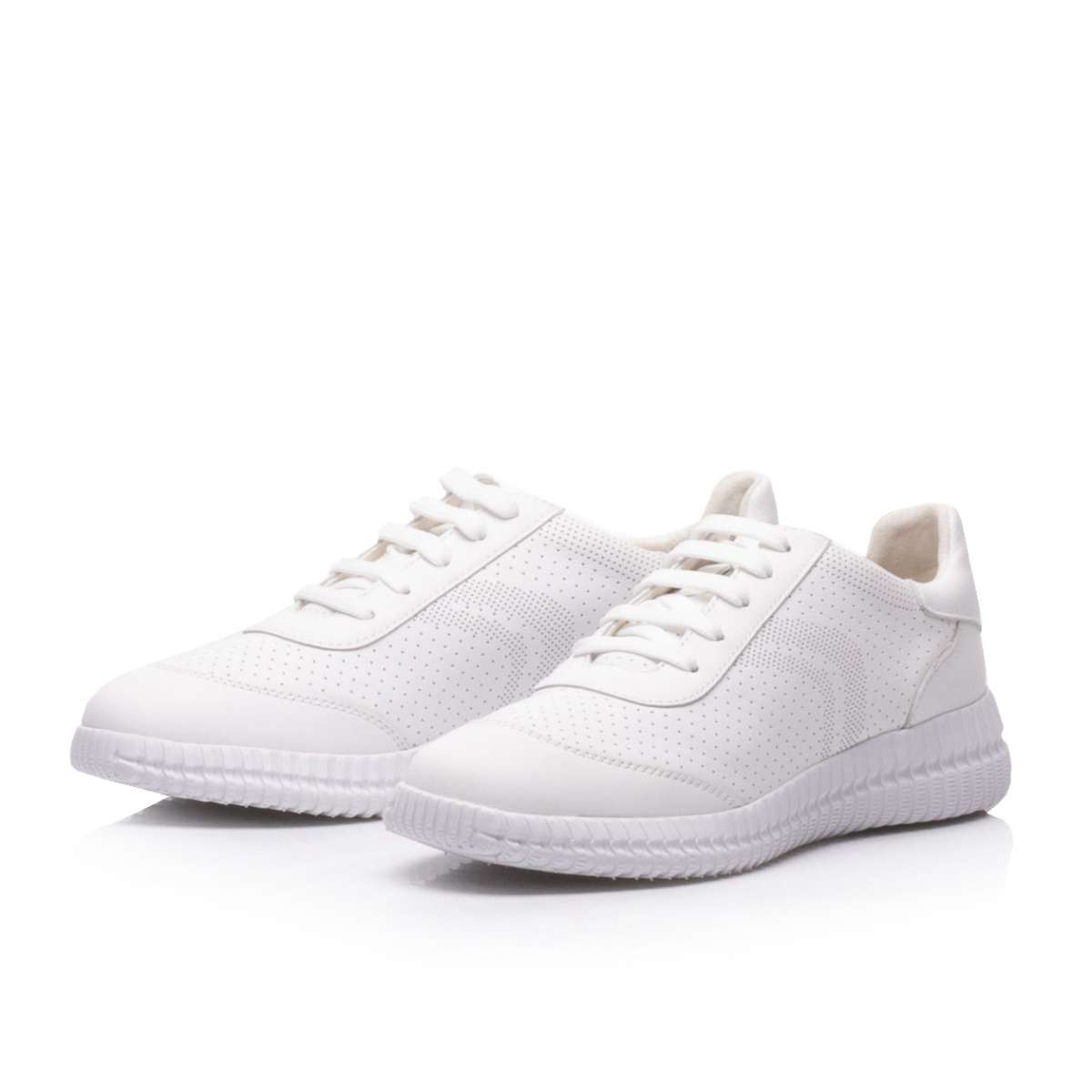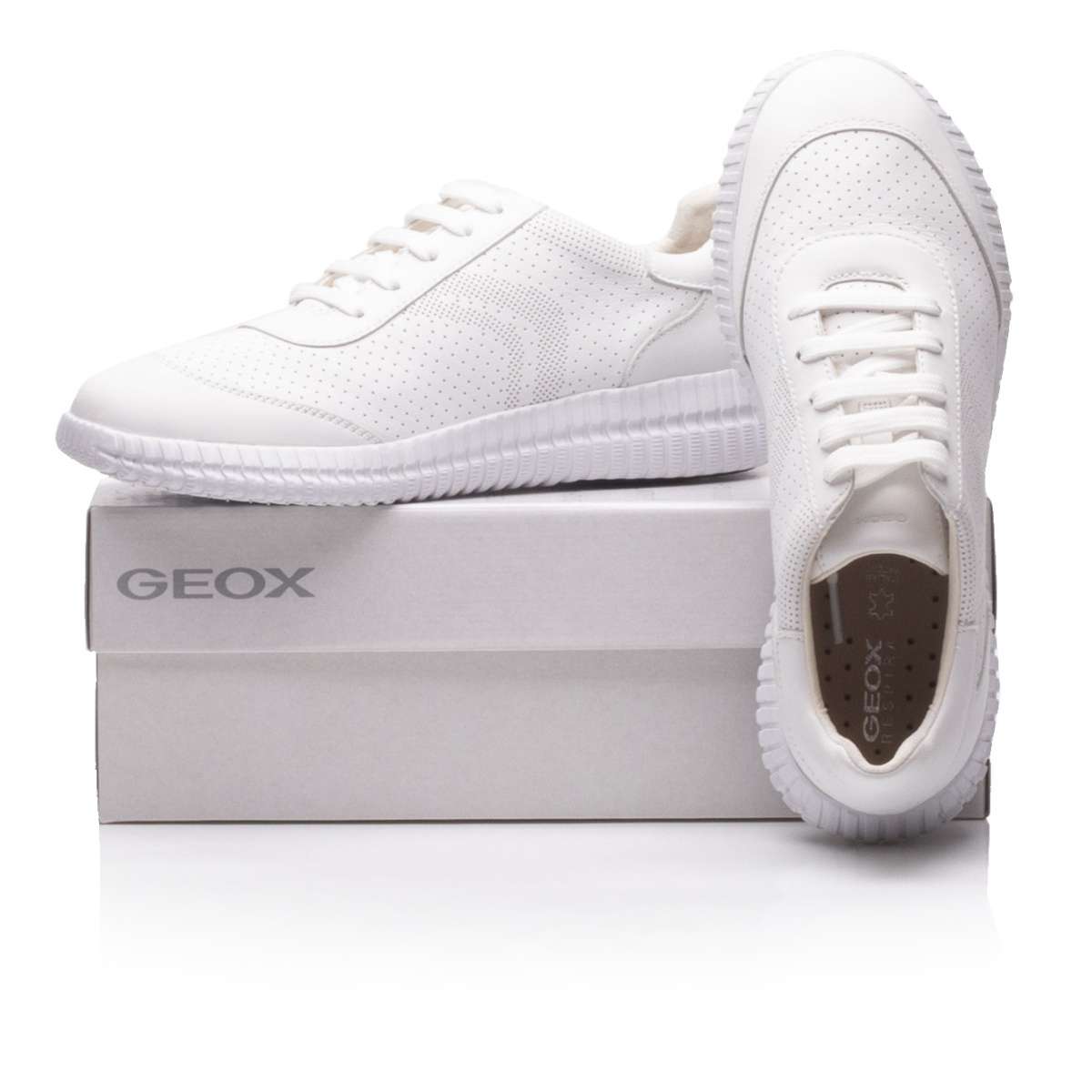 Dámské tenisky bílé barvy od značky Geox jsou částečně perforované, stylovým kouskem dělá tyto boty zajímavá podešev a dvojité prošití. Tkaničky na šněrování slouží k zajištění bot proti vyzutí, proto Vám krásně padnou přímo na Vaše chodidlo. Podešev zaručí maximální pohodlí, prodyšnost a voděodolnost. Pro ženy, které mají rády sportovní styl a pohodlí, jsou jako stvořené.