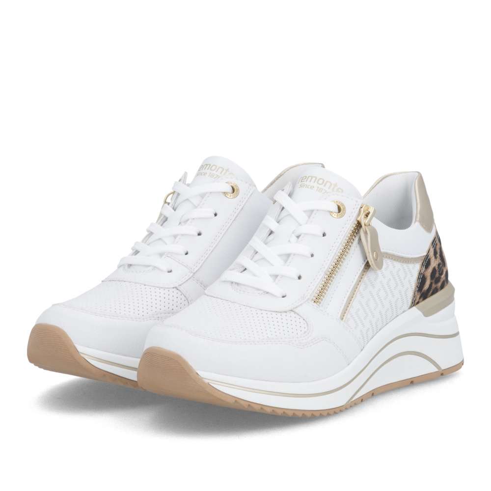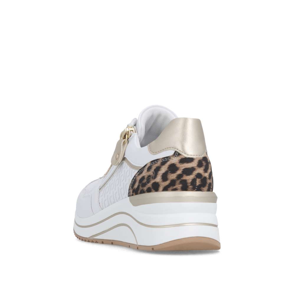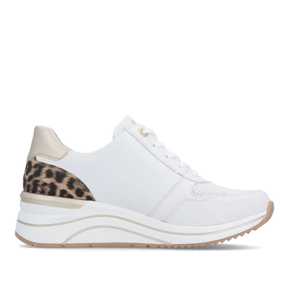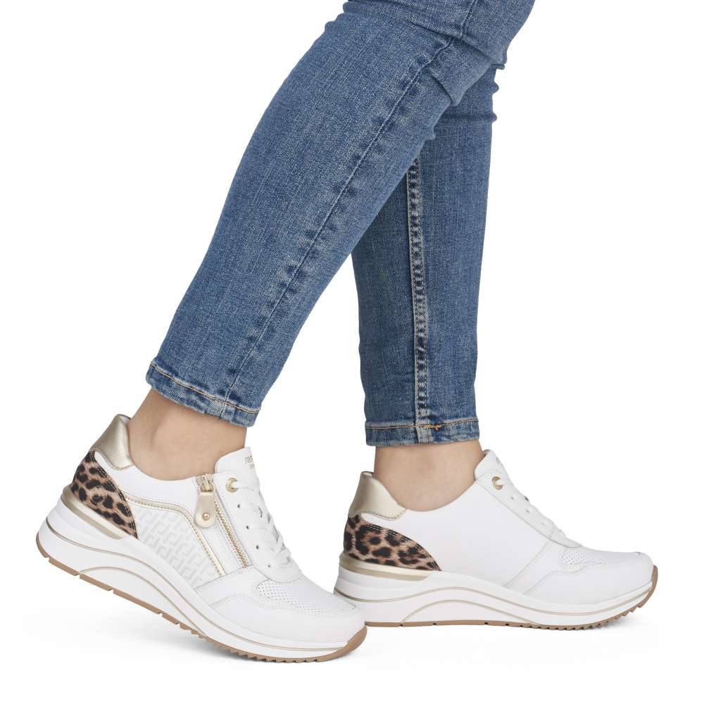 Obuv REMONTE představuje prémiovou řadu značky RIEKER, která se vyznačuje vysokou kvalitou použitých materiálů a precizním zpracováním. Tyto dámské tenisky představují dokonalou kombinaci moderního designu a pohodlí, která z nich činí nepřehlédnutelný kousek ve vašem šatníku. Jejich svršek je vytvořen z kombinace materiálů s různými texturami a kontrastními prvky, detaily jako odlesky materiálu či zvířecí motiv v oblasti paty dodávají botám jedinečný vzhled. Praktičnost je stejně důležitá jako styl. Šněrování spolu se zipem umístěným na nártu umožňuje snadné a rychlé nazutí bot, zároveň přesné přizpůsobení jejich tvaru vaší noze. Vyjímatelná stélka poskytuje maximální pohodlí – je měkká, tvarovaná a podporuje správné držení chodidla. Vyšší podešev spojuje moderní design s praktickými vlastnostmi, poskytuje stabilitu a zároveň doplňuje celkový vizuální dojem tenisek. Díky tomu jsou tyto tenisky ideální volbou pro ženy, které nechtějí dělat kompromisy mezi komfortem a módním vzhledem.