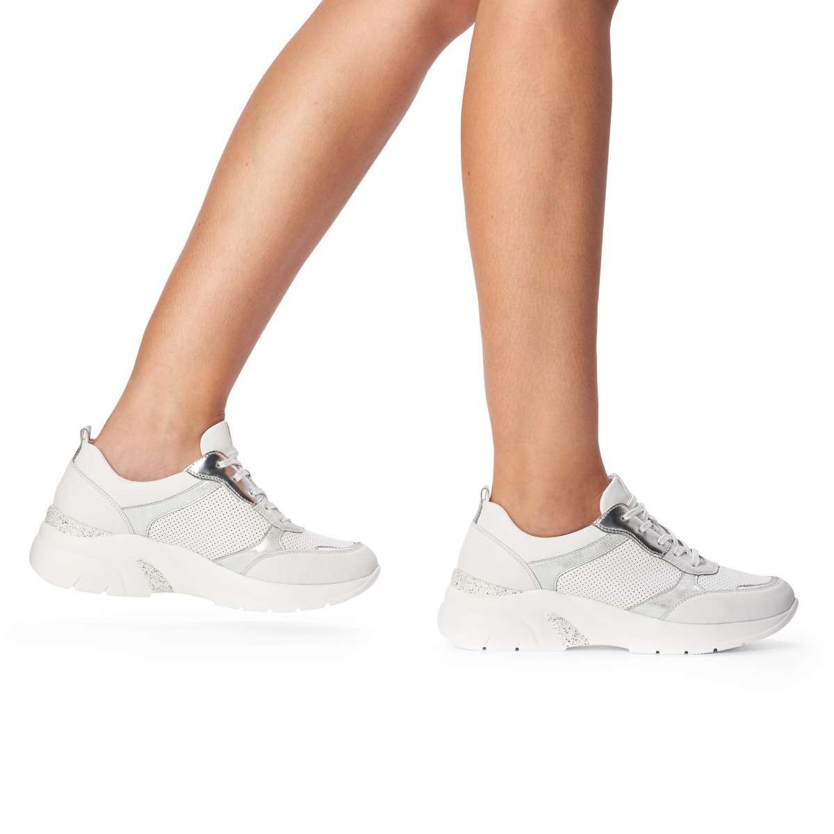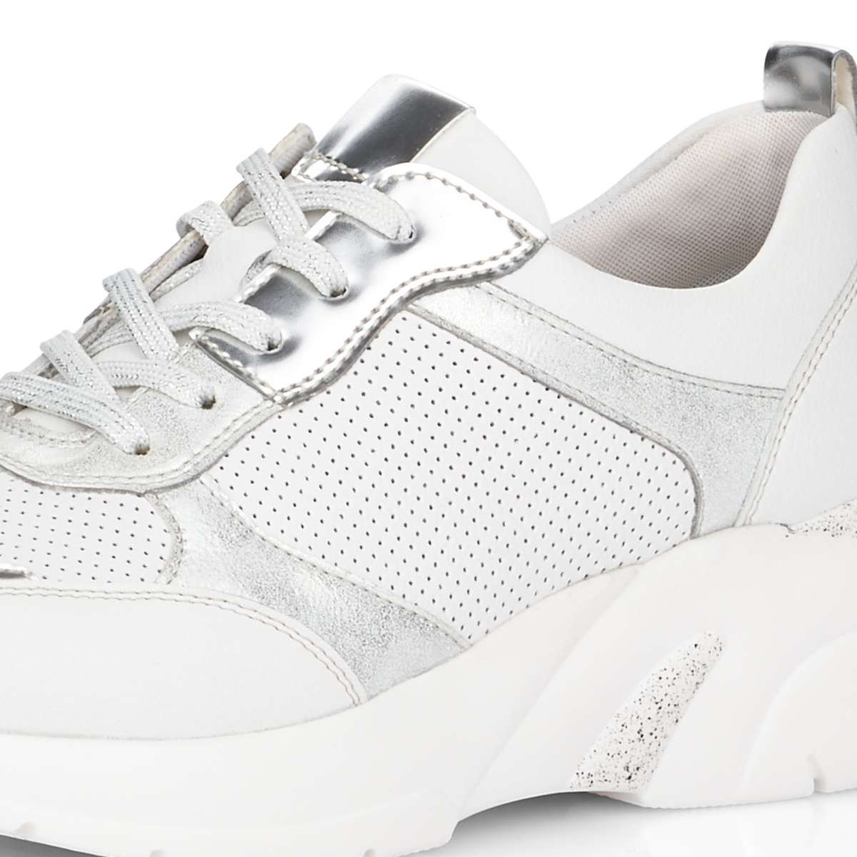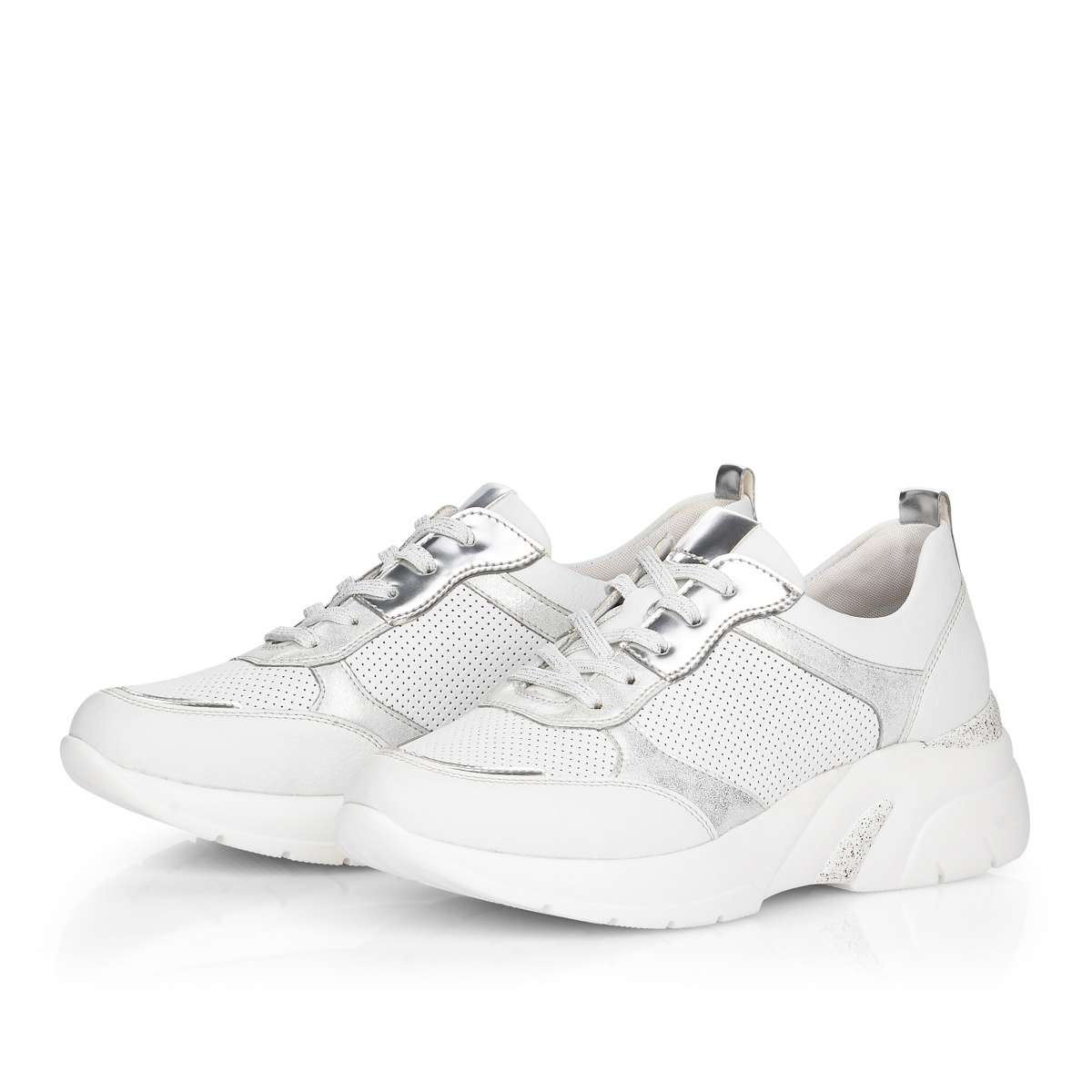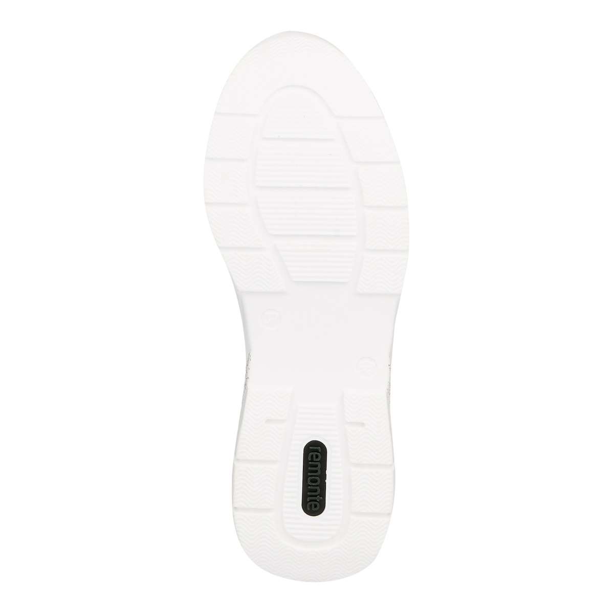 Dámské tenisky značky REMONTE (vyšší řada značky Rieker) s ozdobnou perforací by měla mít každá žena v botníku. Ke snadnému obouvání slouží šněrování, kterým si obuv upravíte přímo na nohu. Tato obuv je vybavena vyjímatelnou stélkou, která je vyrobena z unikátní paměťové pěny, a proto se maximálně přizpůsobí tvaru Vašeho chodidla. Pevná podešev je vysoká cca 6 cm a dodá Vám příjemný pocit při každém kroku. Tento model má mnoho využití, můžete si je vzít na procházku s přáteli nebo do práce.