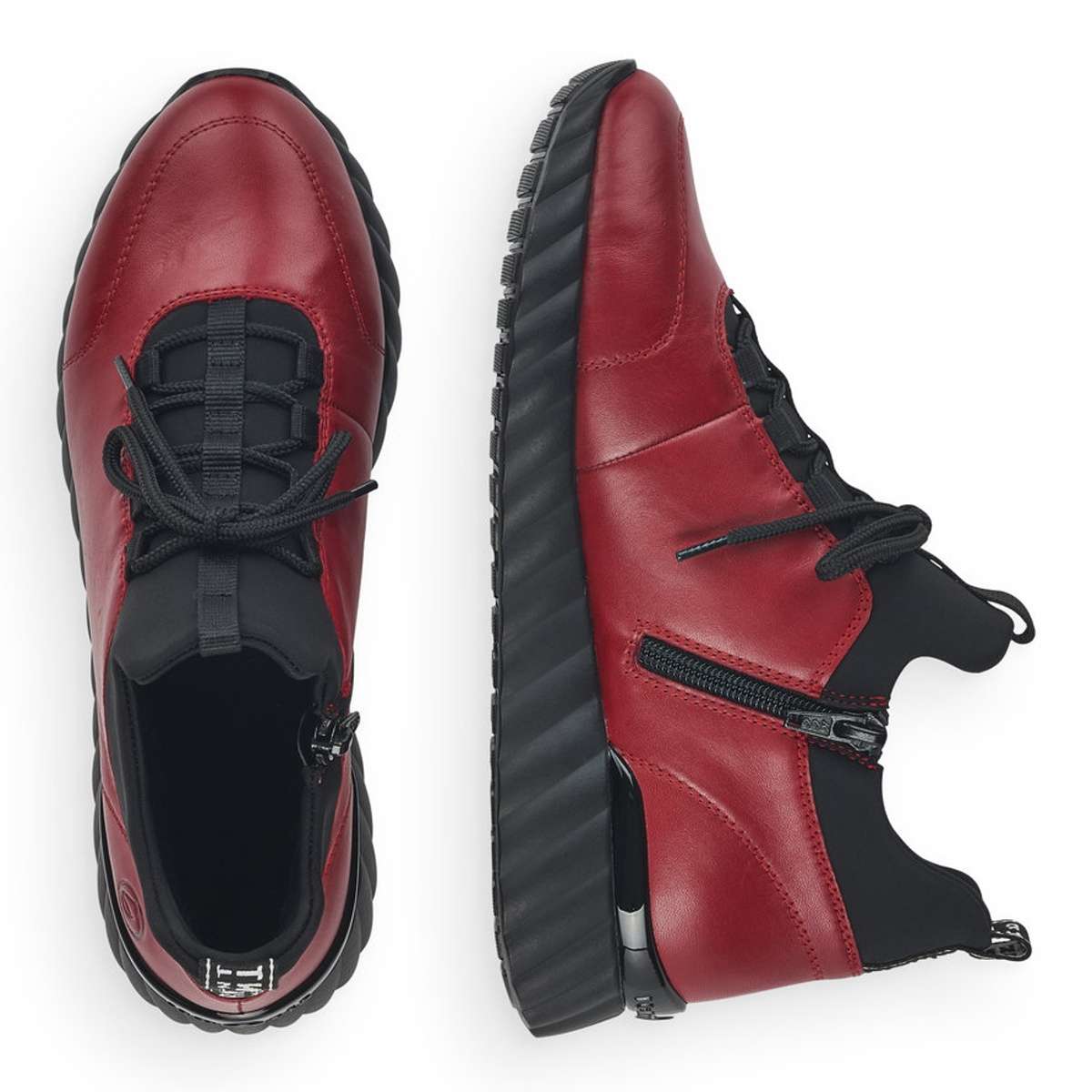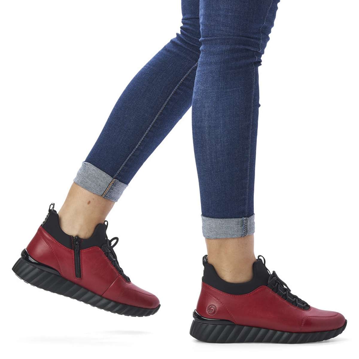 Obuv REMONTE – jedná se o vyšší řadu značky RIEKER, tato obuv se vyznačuje vynikající kombinací svrchních materiálů. Tato dámská černo-červená teniska je vyrobena z kvalitní kůže, která s Vámi bude každý den. Kožešinová podšívka je příjemná a velmi teplá, proto se nemusíte bát, že by Vám byla zima i v těch největších mrazech. Měkká vyjímatelná stélka je vyrobena z paměťové pěny, která se přizpůsobí Vašemu chodidlu a bude s Vámi na každém kroku. Podešev je stylová, lehká a flexibilní, čímž Vám zajistí pohodlné nošení po celý den. Tento model je vhodný jak na procházky do parku, tak i na pracovní záležitosti. Záleží jen na Vás, kam svoje nové společnice vezmete.